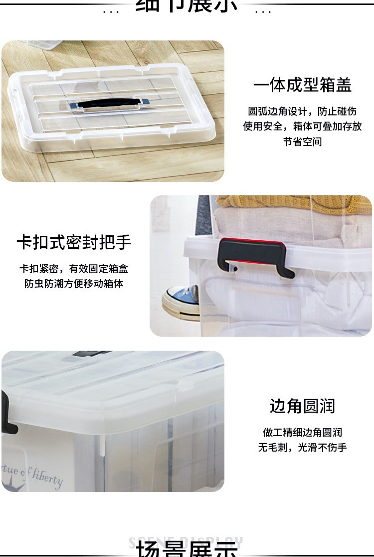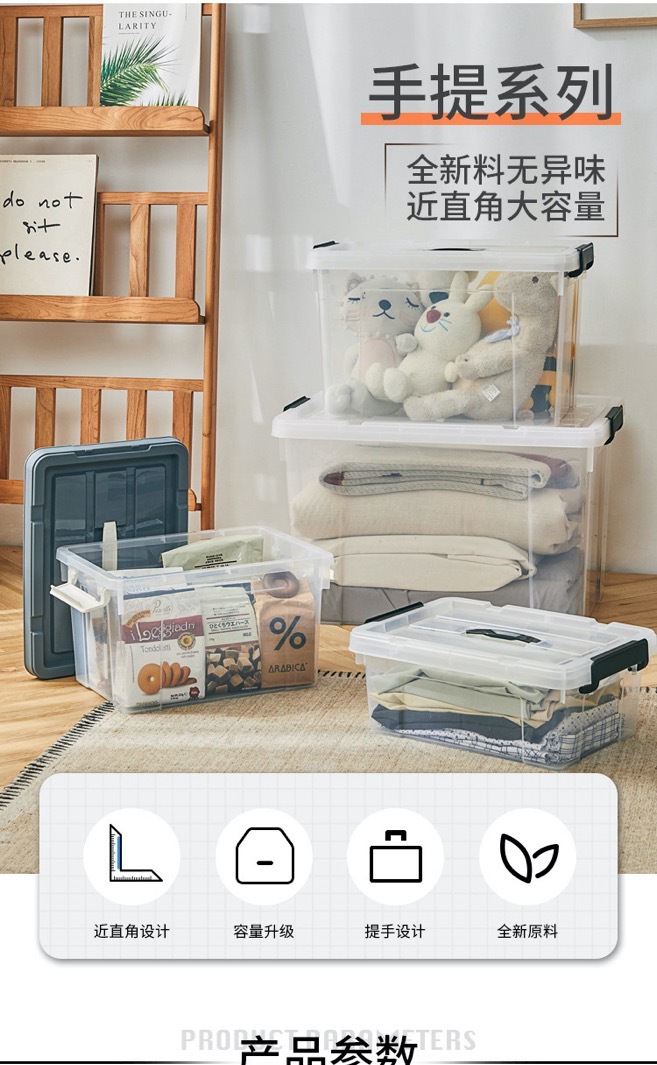 초대형 투명 저장 상자 가정용 의류 장난감 주최자 두꺼운 플라스틱 보관 상자 핸들러 저장 상자