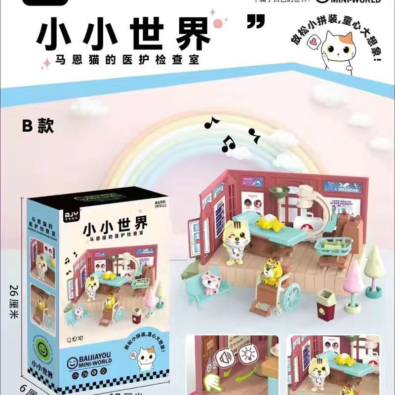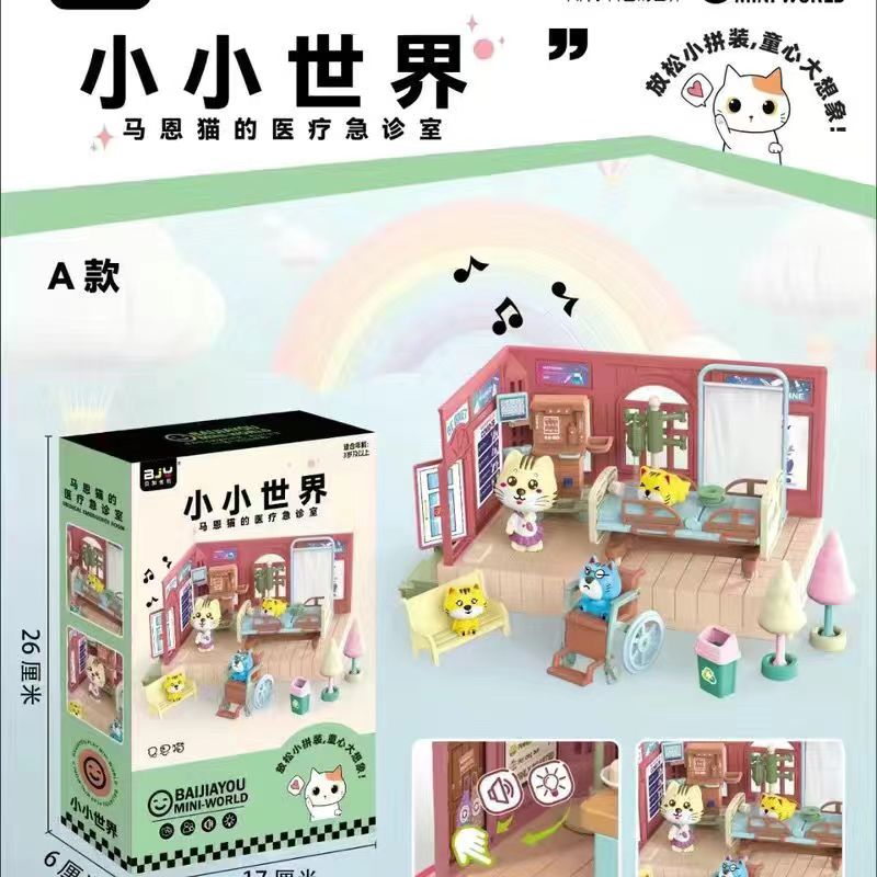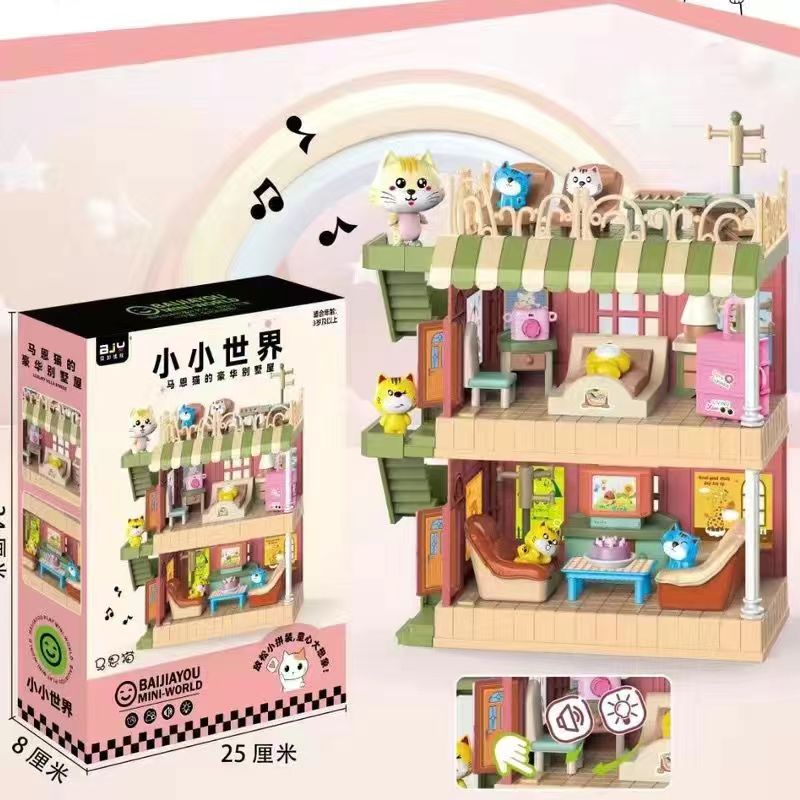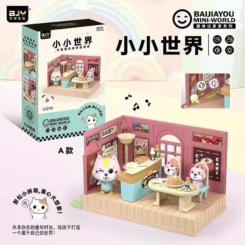 새로운 작은 세계 의료 우유 차 가게 거실 소녀 건물 블록 생일 선물 장식품 Diy 조립 생일 선물