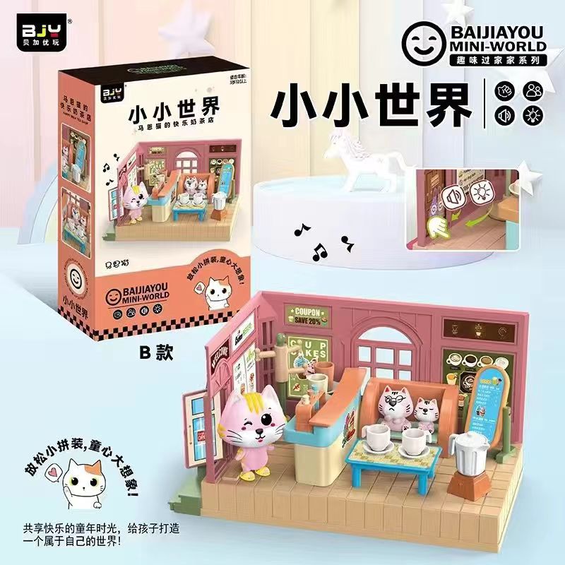 새로운 작은 세계 의료 우유 차 가게 거실 소녀 건물 블록 생일 선물 장식품 Diy 조립 생일 선물스토어 가기