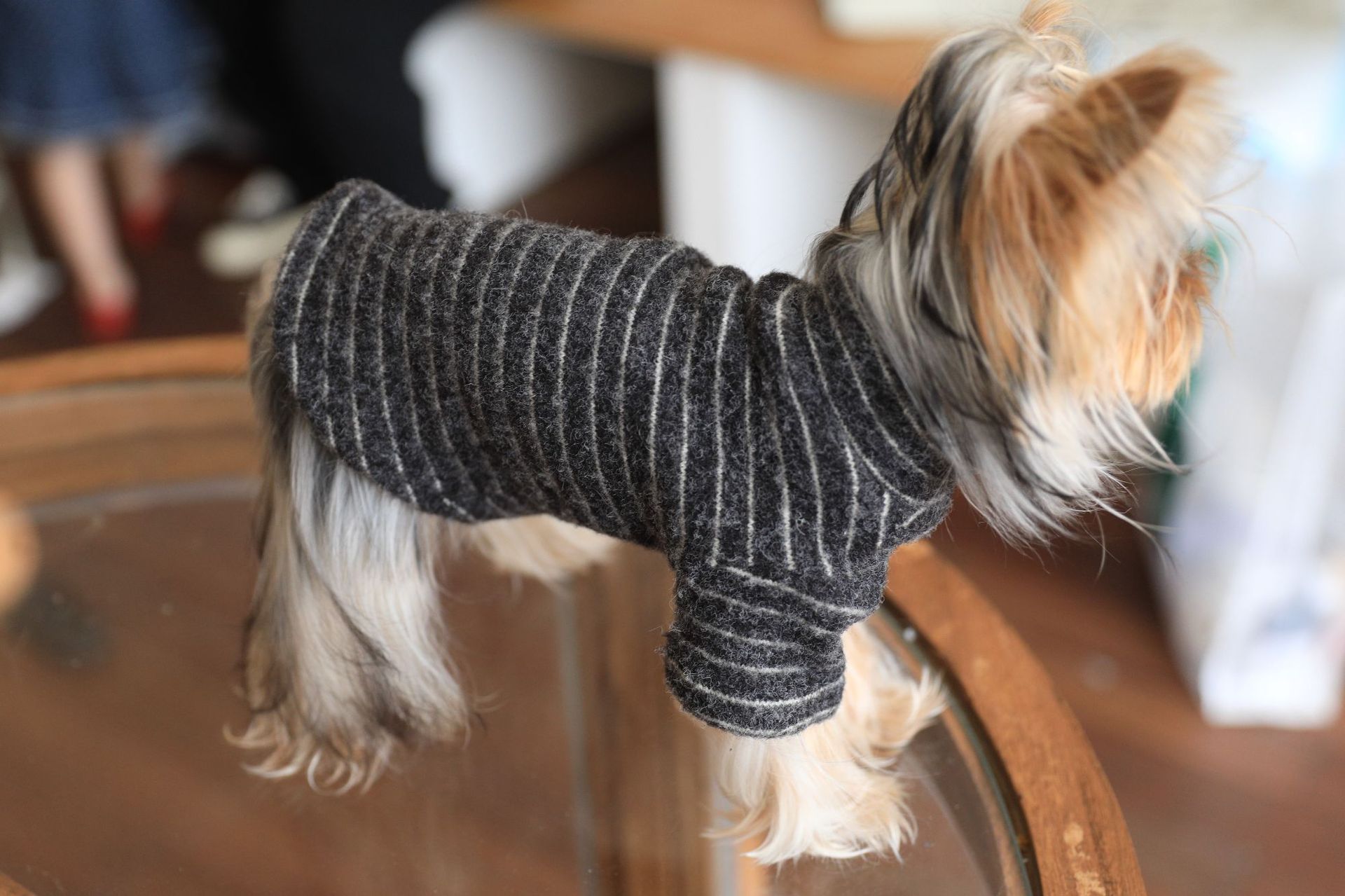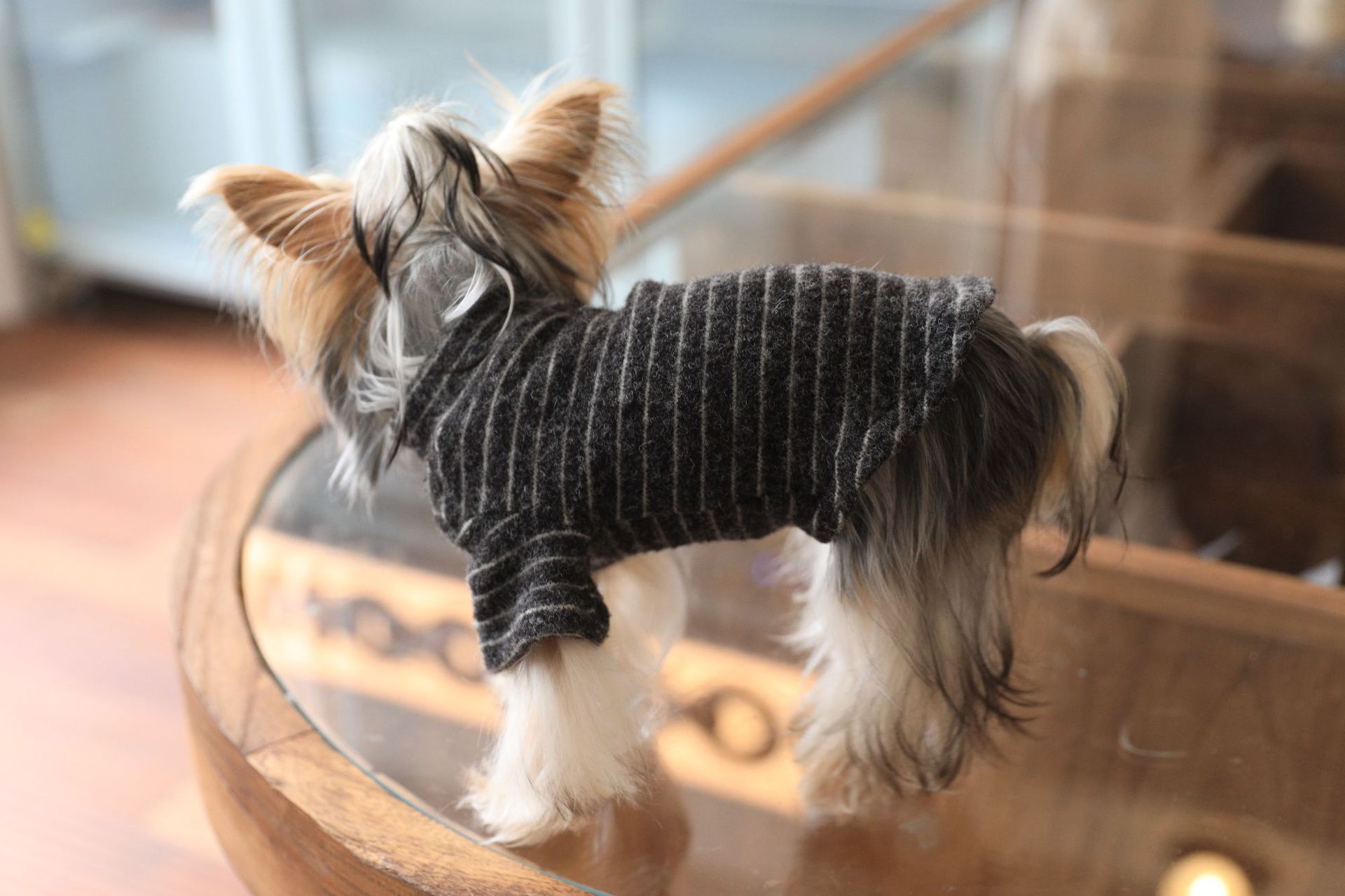 면 부드러운 두꺼운 검은 줄무늬 티셔츠 고양이 Bixian 요크셔 개 애완 동물 옷