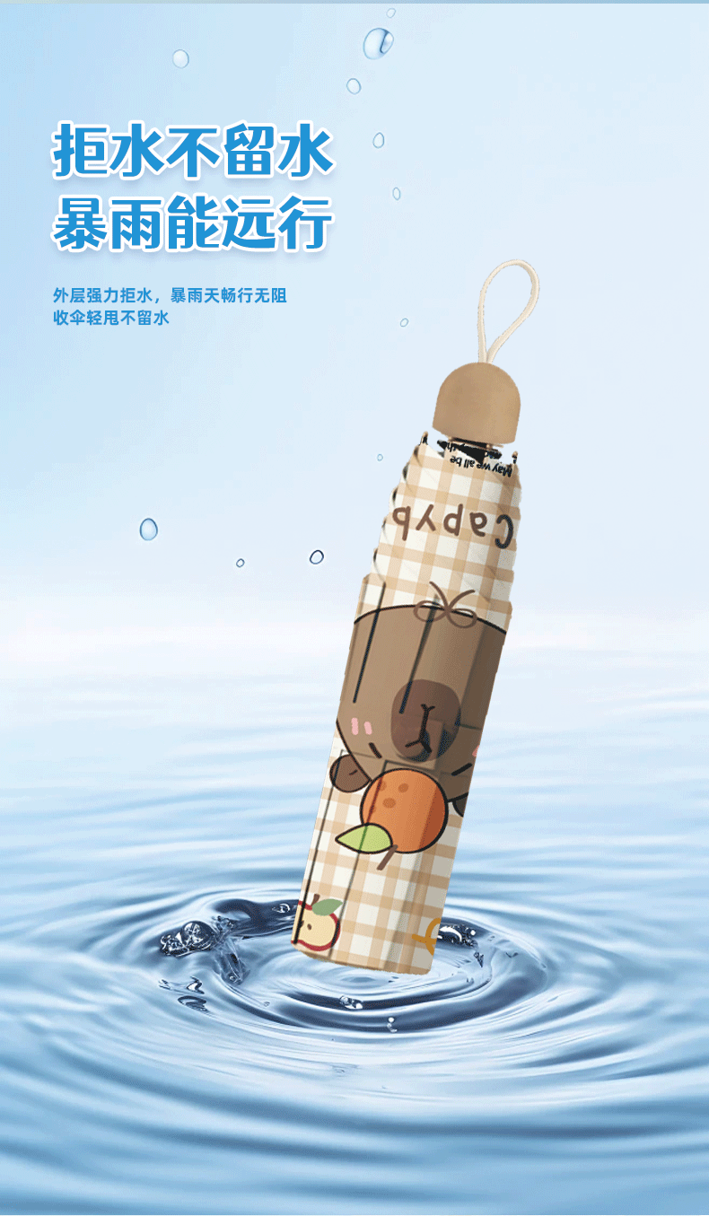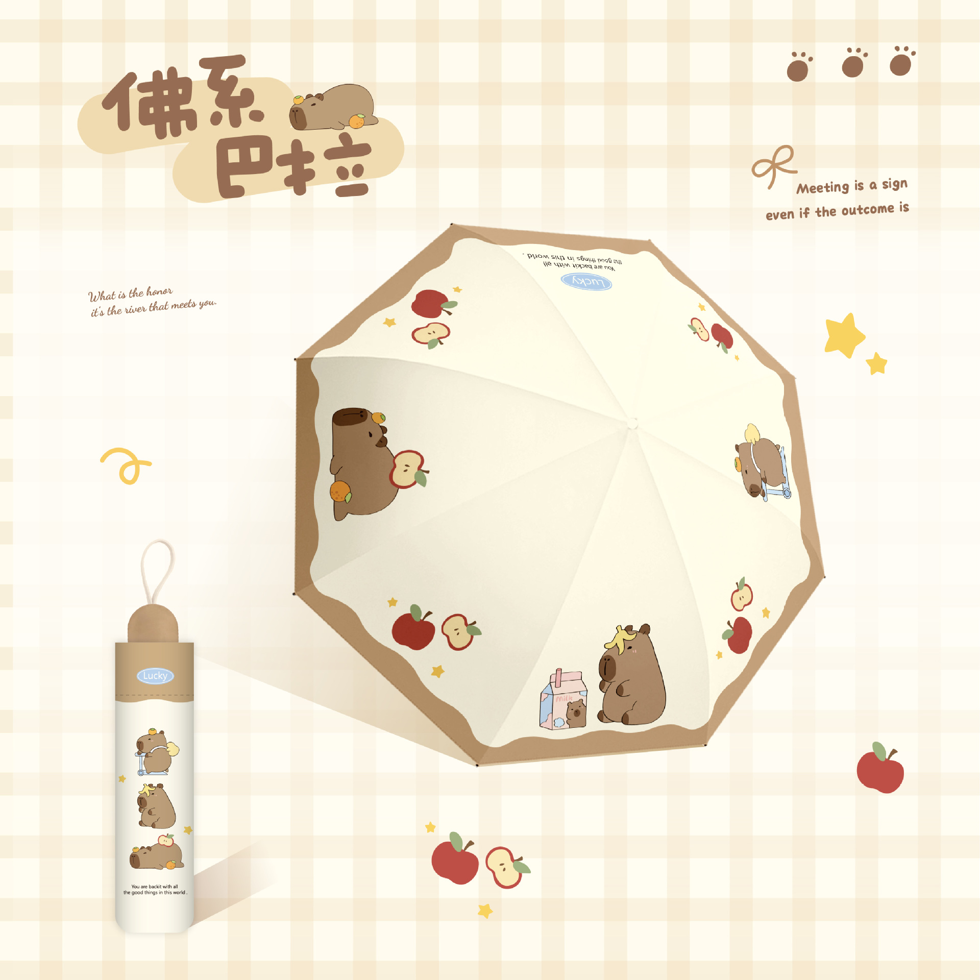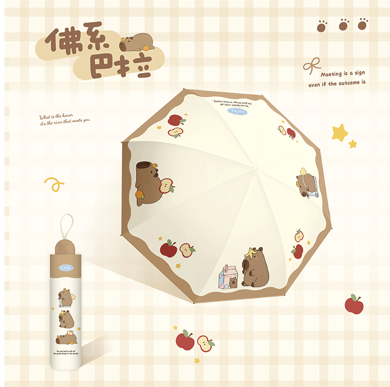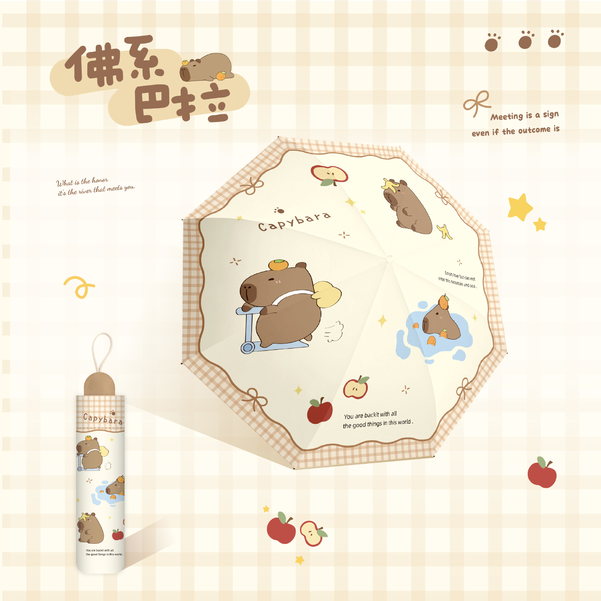 Zhiyu Kapibala 태양 우산 맑고 비오는 우산 검은 고무 소형 휴대용 선 스크린 우산 UV 보호 햇살스토어 가기