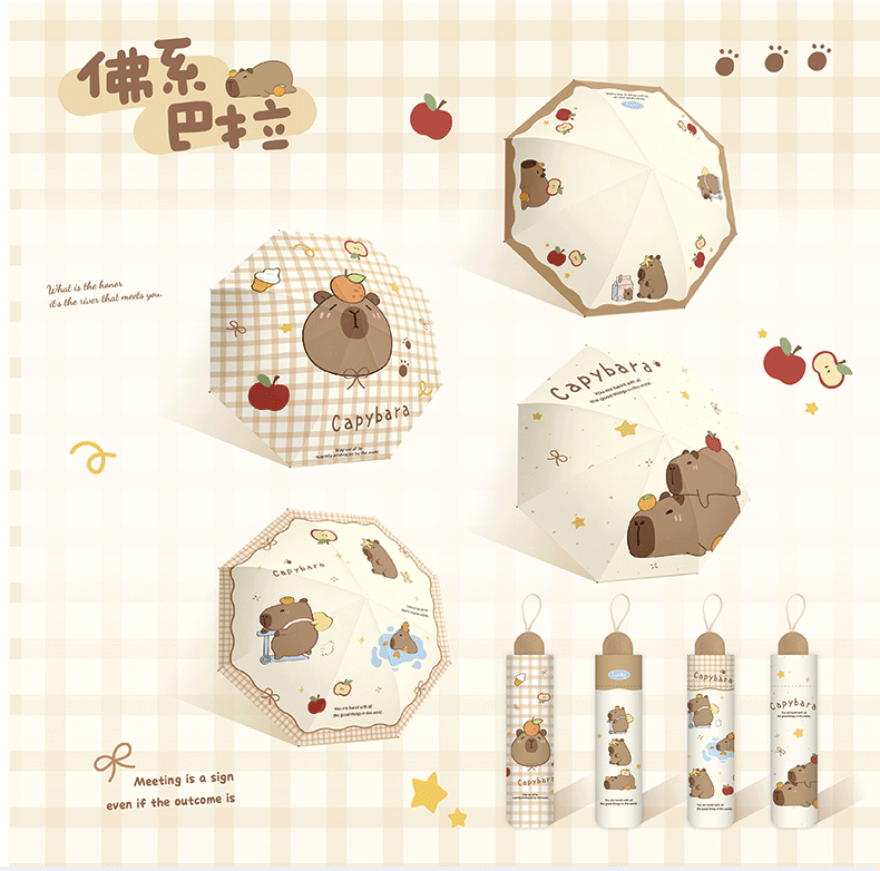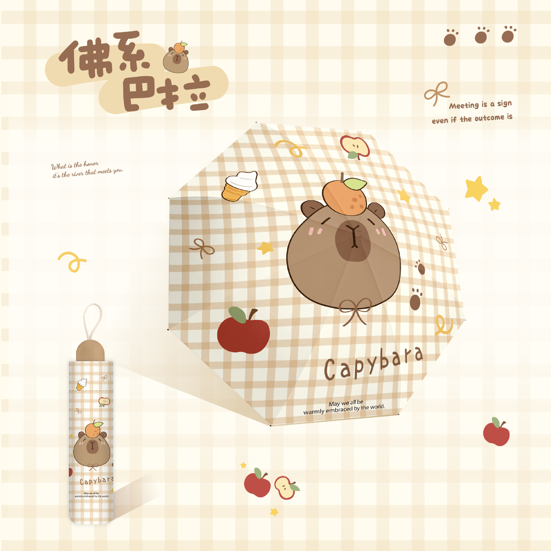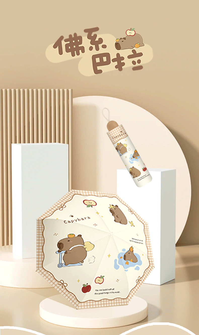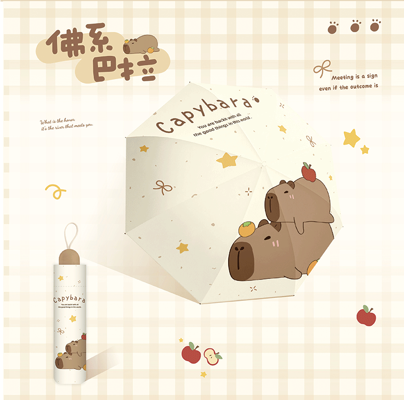 Zhiyu Kapibala 태양 우산 맑고 비오는 우산 검은 고무 소형 휴대용 선 스크린 우산 UV 보호 햇살스토어 가기