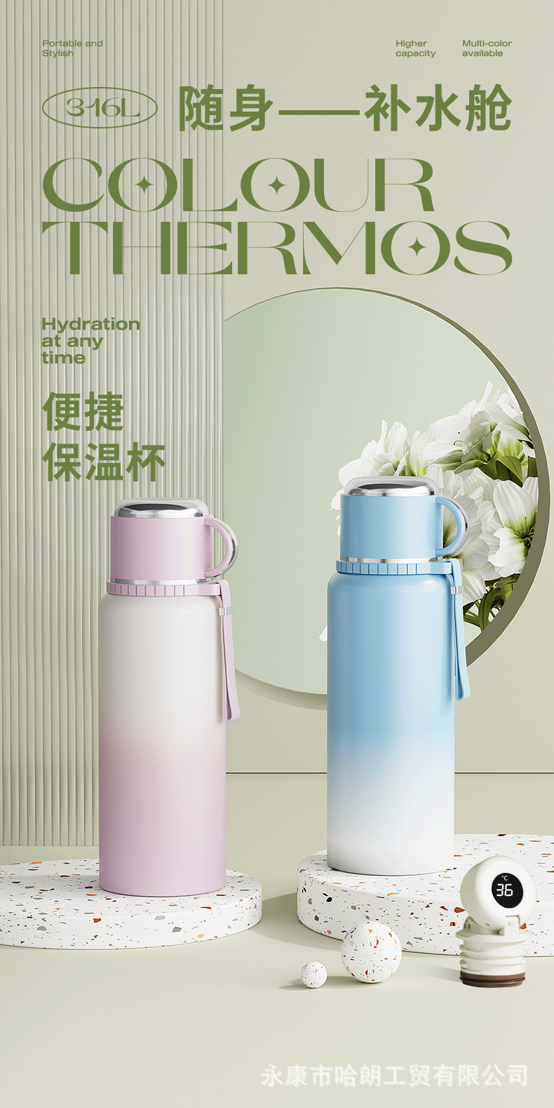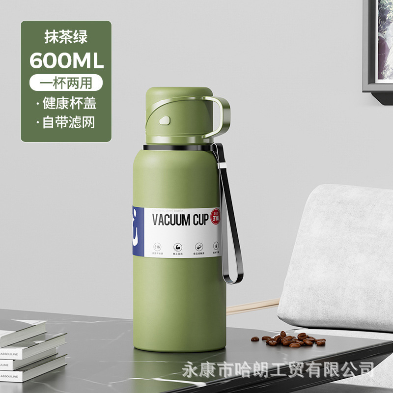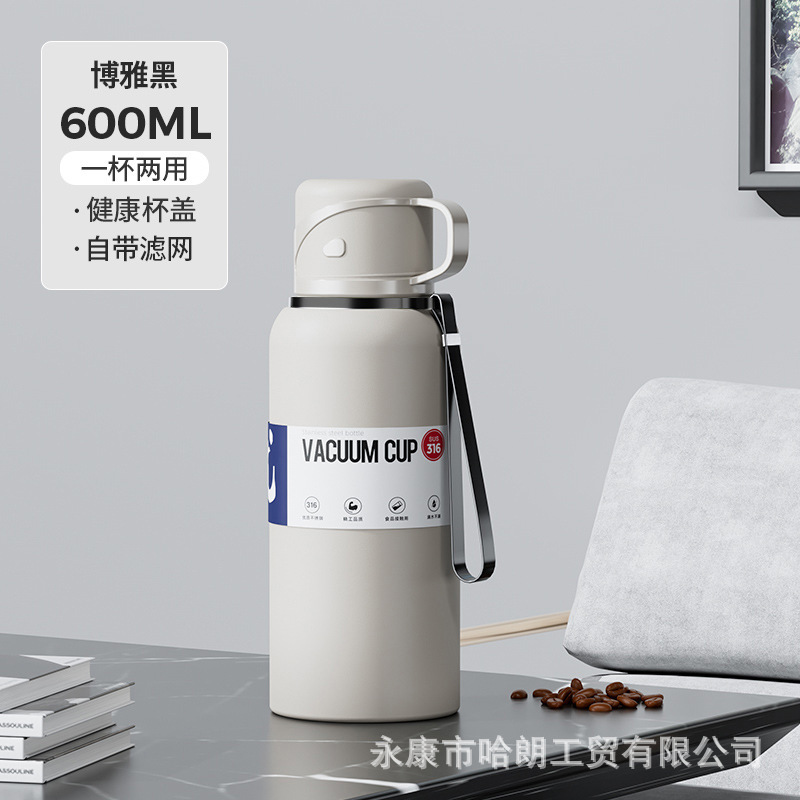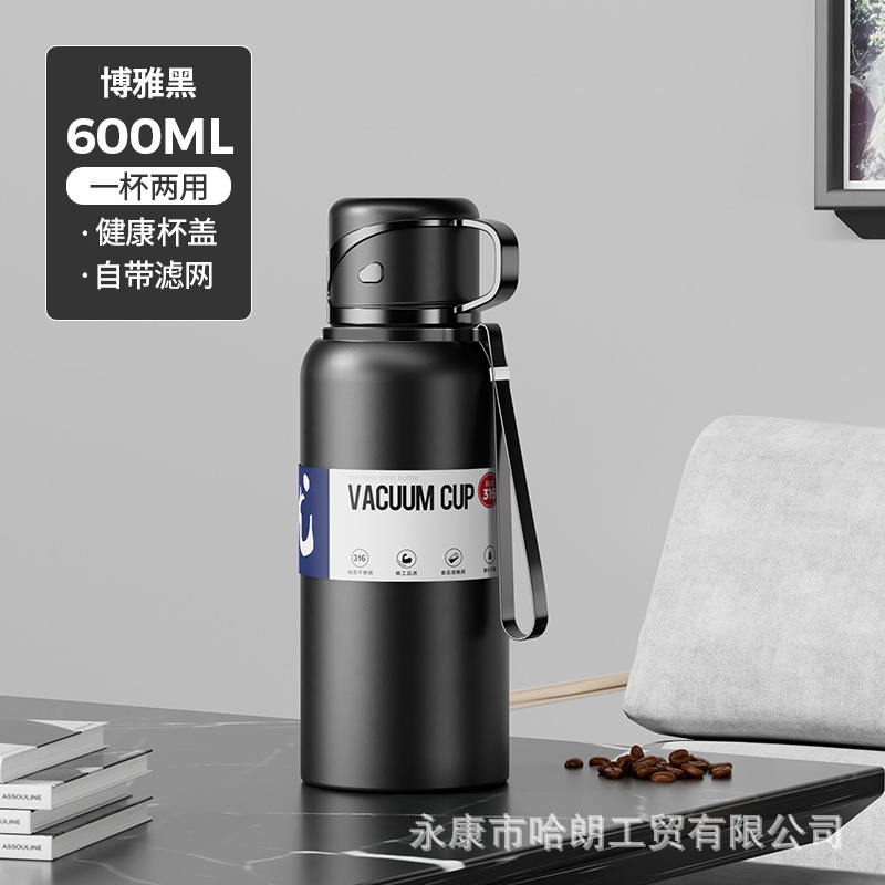316 스테인레스 스틸 대용량 보온병 컵 더블 뚜껑 남녀 야외 주전자 차 분리 버블 컵 도매 맞춤형