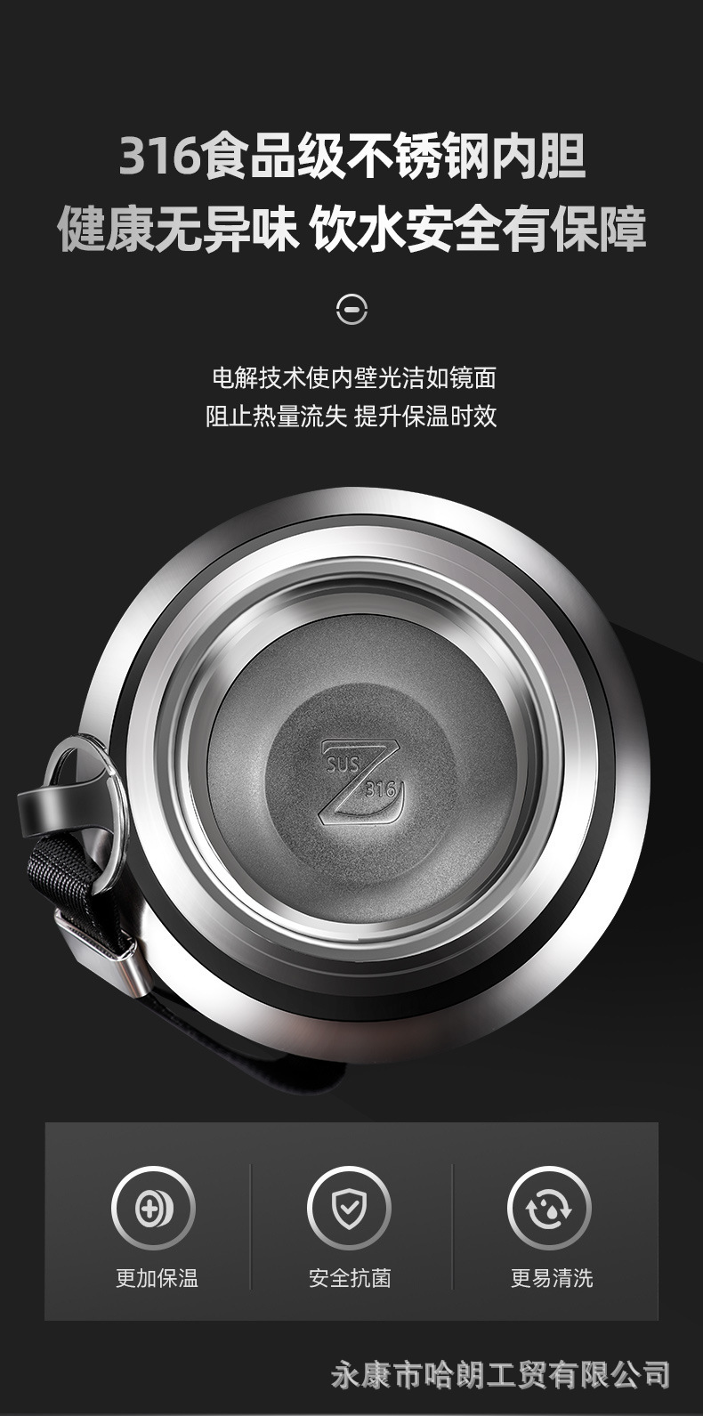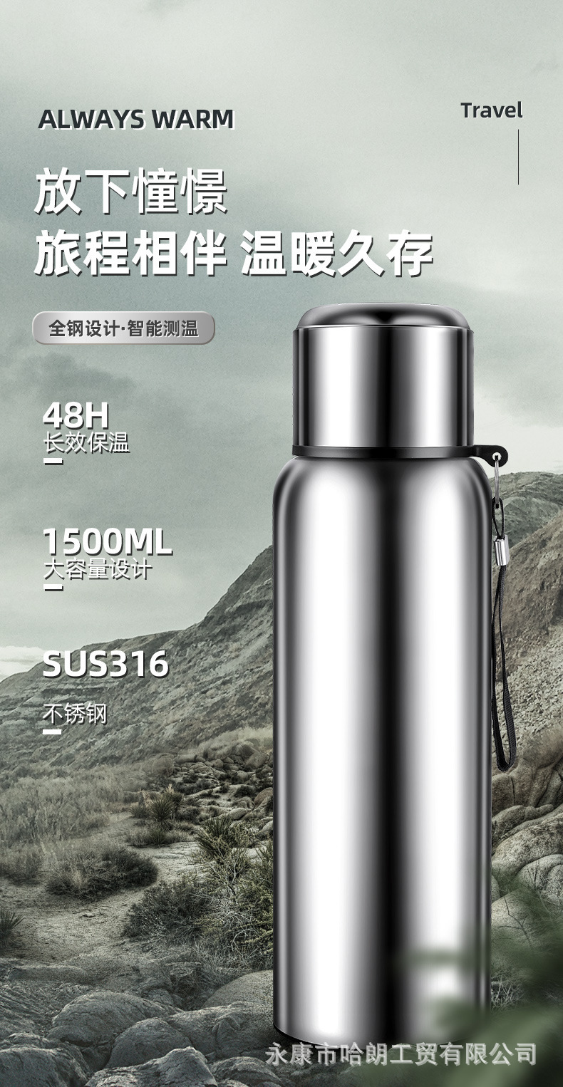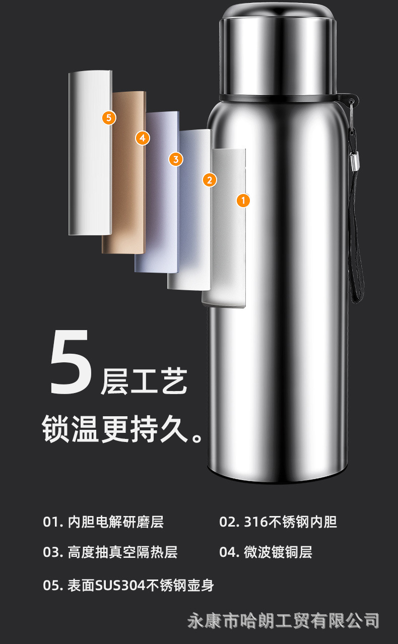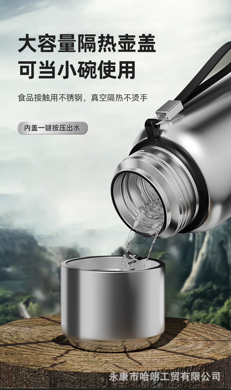 316 스테인레스 스틸 대용량 보온병 컵 더블 뚜껑 남녀 야외 주전자 차 분리 버블 컵 도매 맞춤형스토어 가기