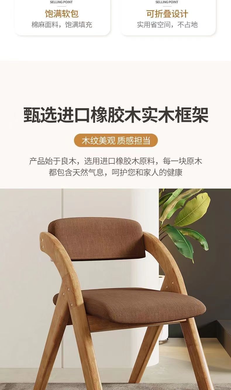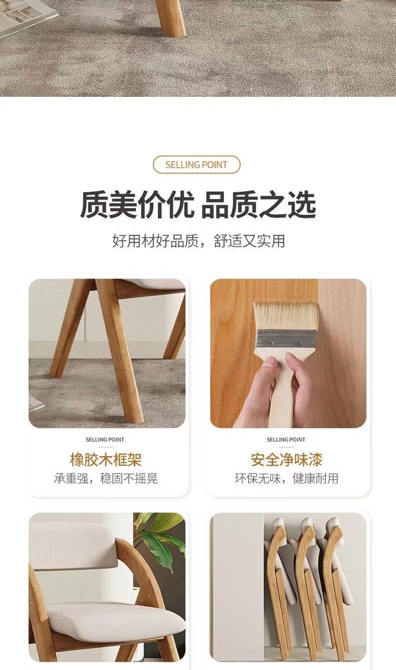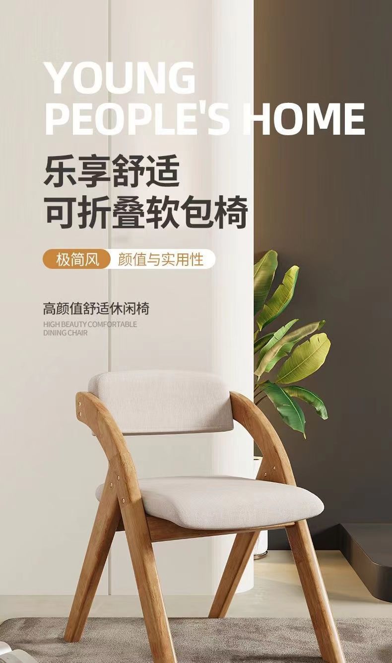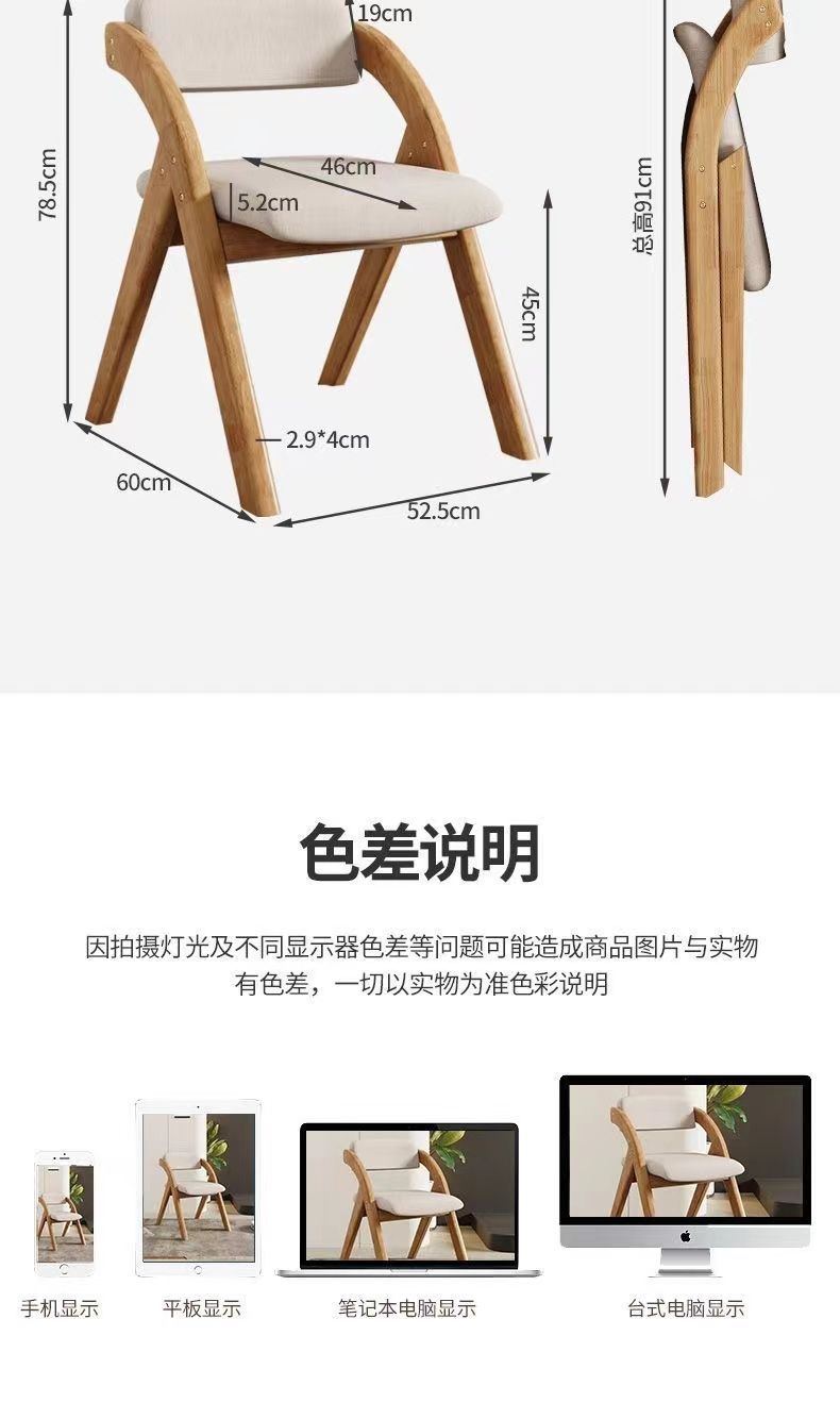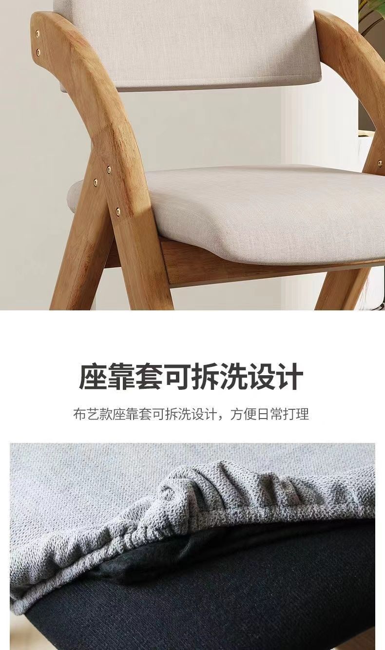 북유럽 스타일 솔리드 우드 폴딩 의자-고무 우드 다이닝 의자-회의 사무실 의자-간단한 접이식 등받이 의자-모래