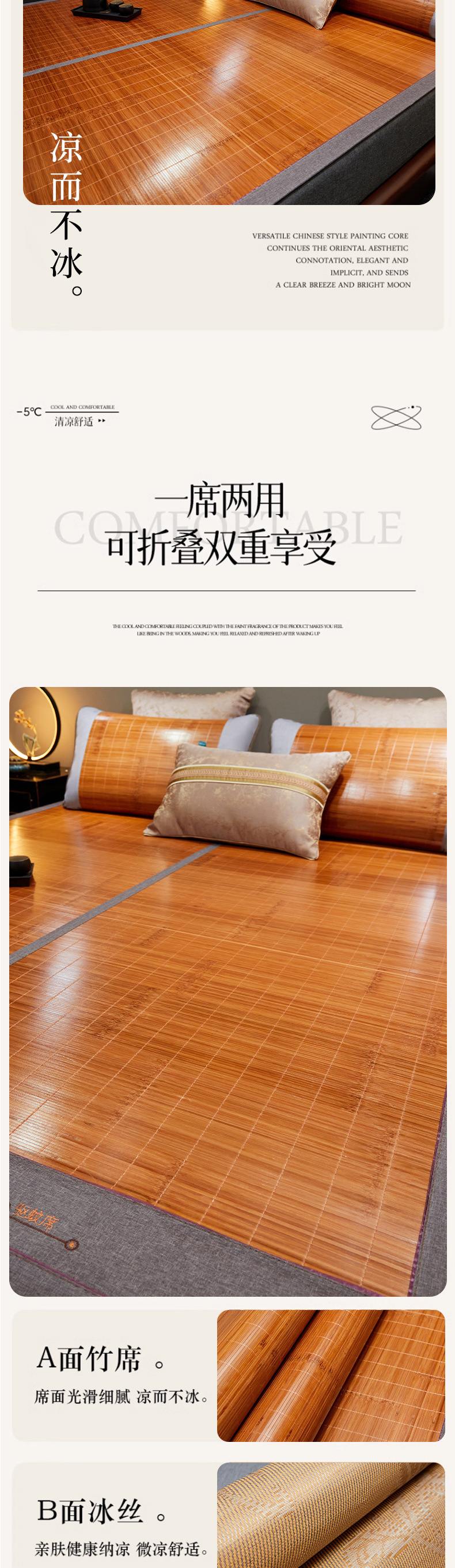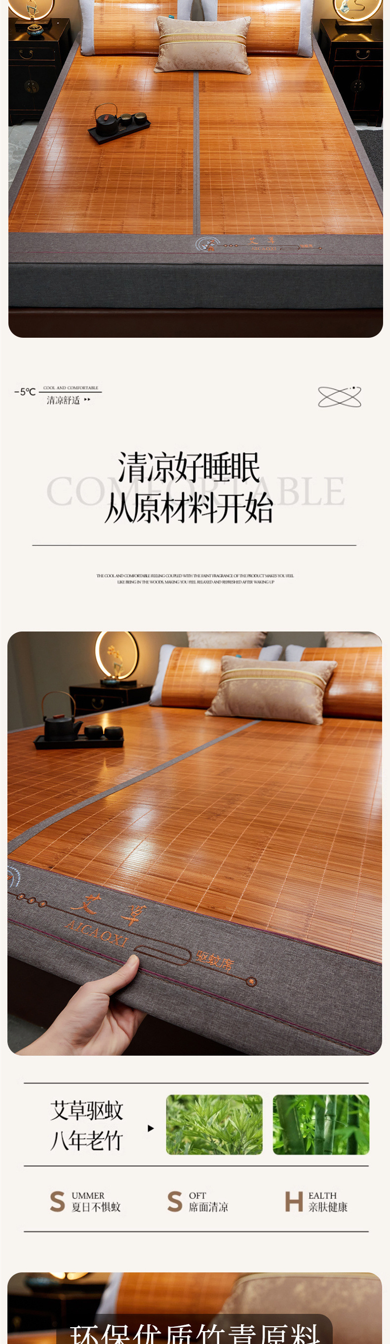 하이 엔드 수 놓은 쑥 양면 대나무 매트 3 종 아이스 실크 매트 여름 학생 기숙사 여름