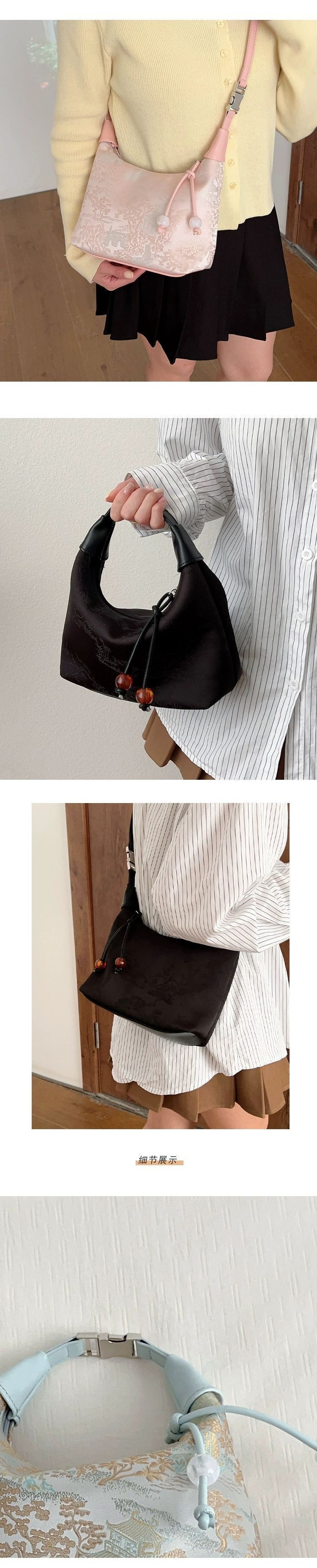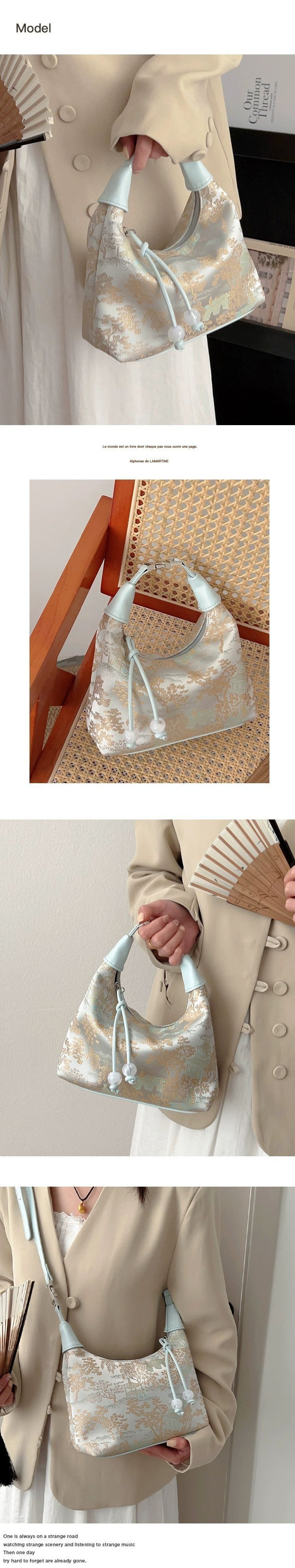궈펑 실크 수놓은 청삼백 여성 2024 년 새 여름 크로스바디 만두 가방 골동품 새 중국 핸드백스토어 가기