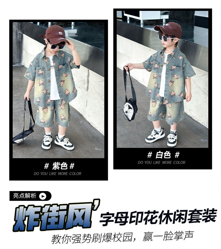 네자 옷 소년 반팔 세트 여름 25 새로운 어린이 서양식 데님 여름 아기 소년을위한 2 피스 유행 세트