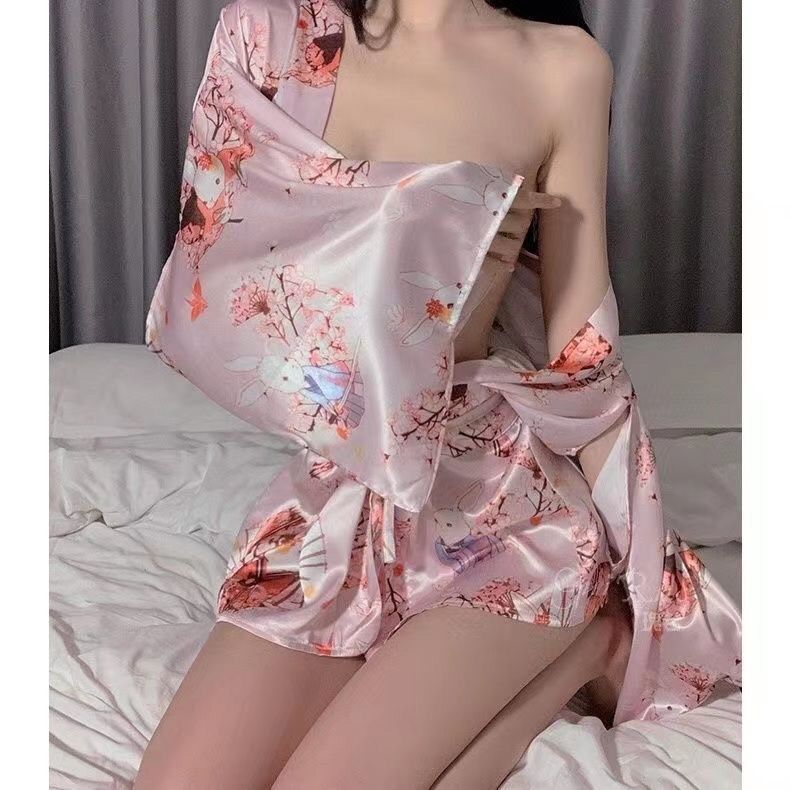 통통녀 소닉 사쿠라 나이트가운 여자 새 섹시 아이스 실크 나이트가운 여자 300 진 일본 기모노 목욕 가운 홈 옷