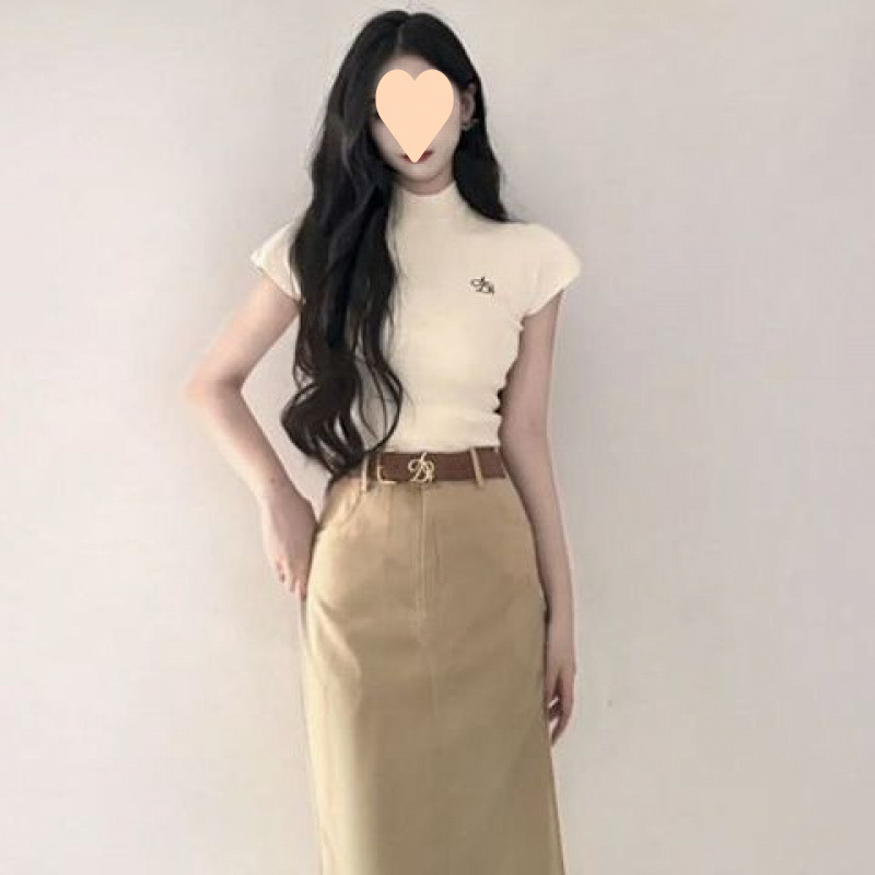 순수한 욕망 스타일 둥근 목 어깨 셔츠 탑 세트 여성 여름 슬림핏 높은 허리 스커트 슬리밍 롱 스커트 투피스 세트스토어 가기