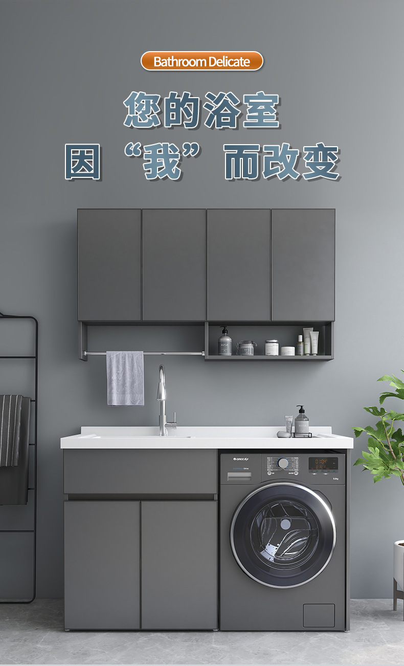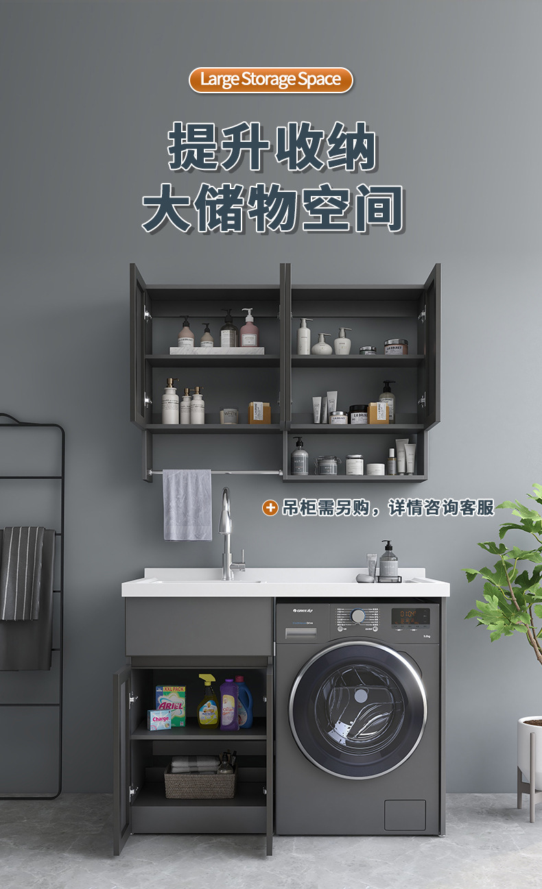 공간 알루미늄 발코니 세탁기 캐비닛 조합 드럼 세탁기 테이블 탑 세탁기 캐비닛 통합 세탁기 캐비닛스토어 가기