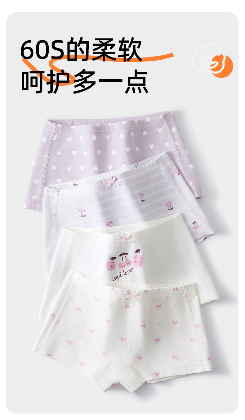 2025 새로운 유형 A 아기 면화 소녀 속옷 평면 각도 어린이 4 각 반바지 소녀 아기의 머리스토어 가기