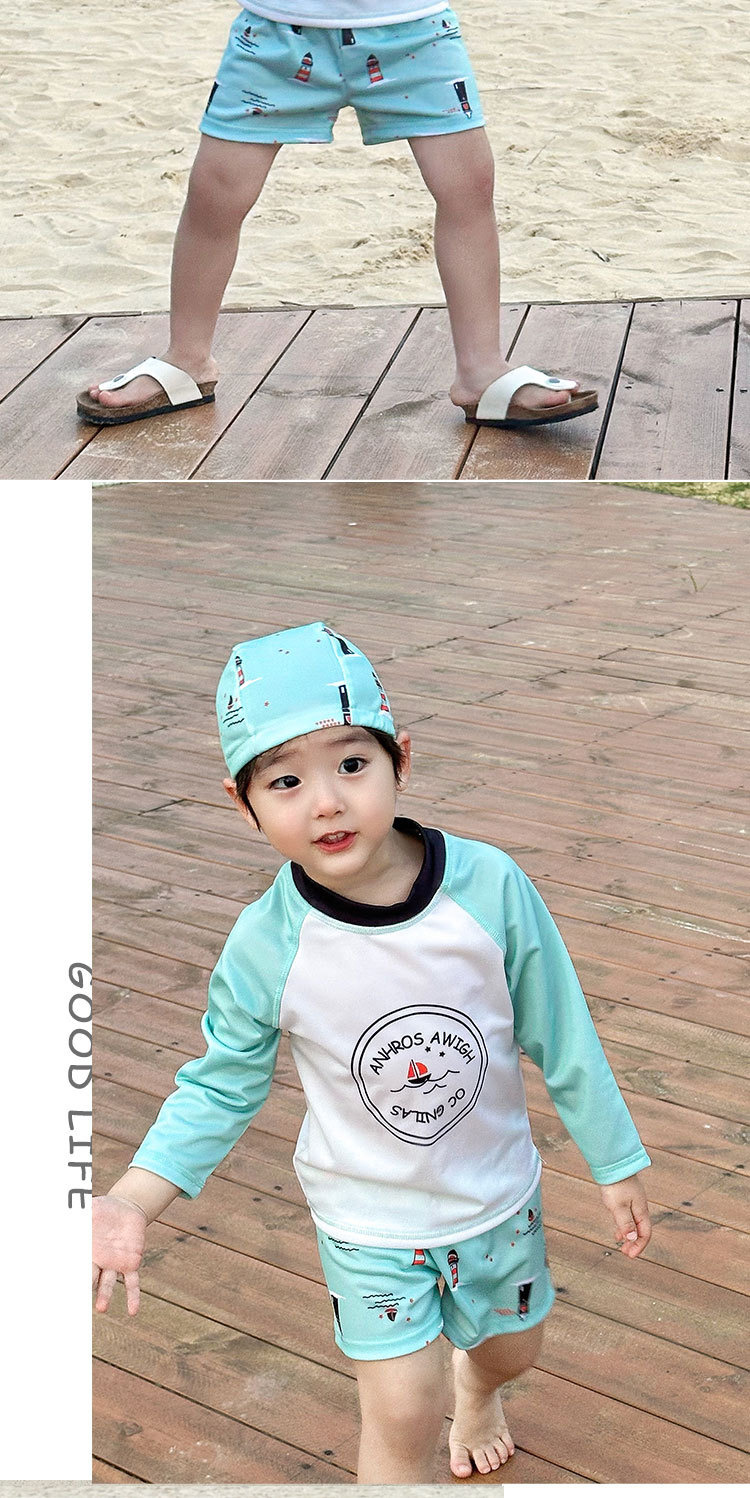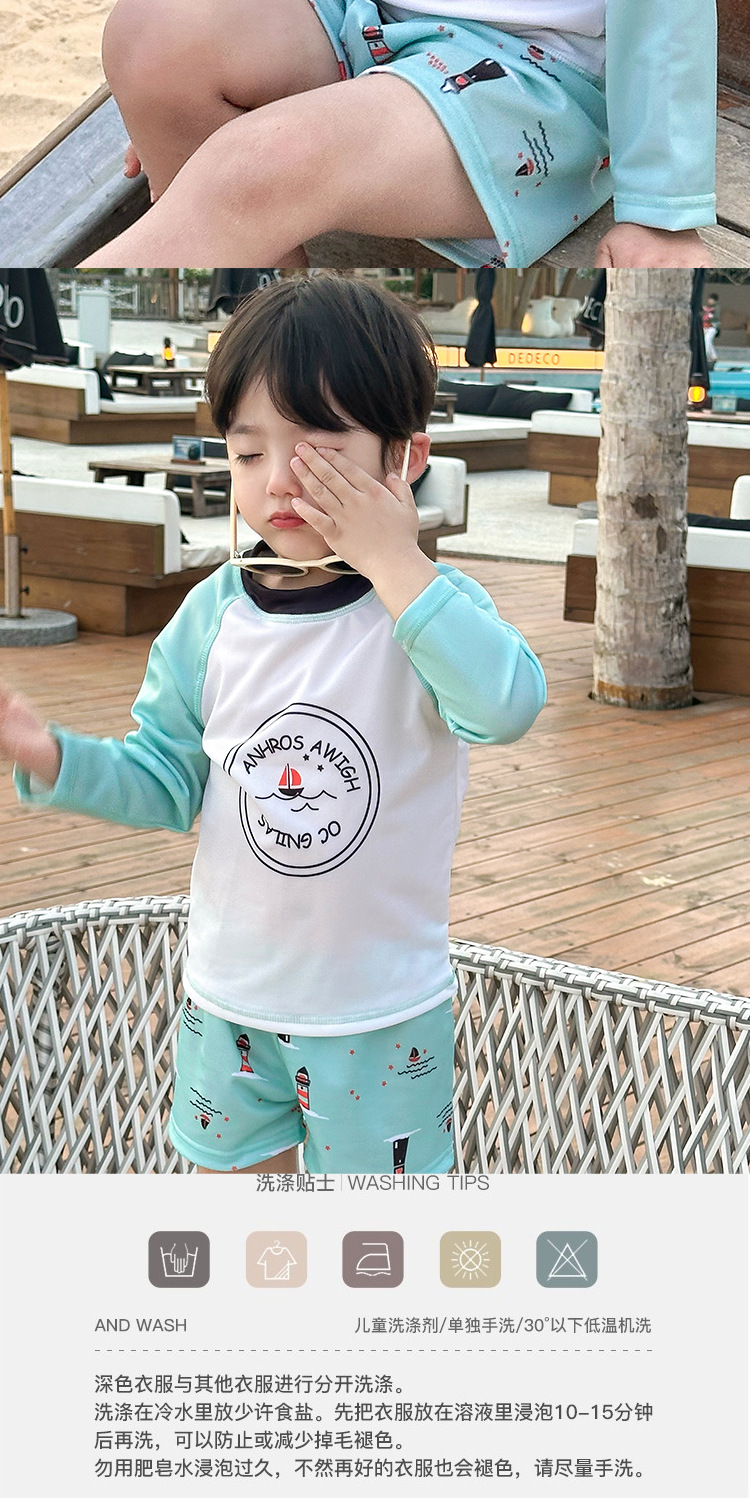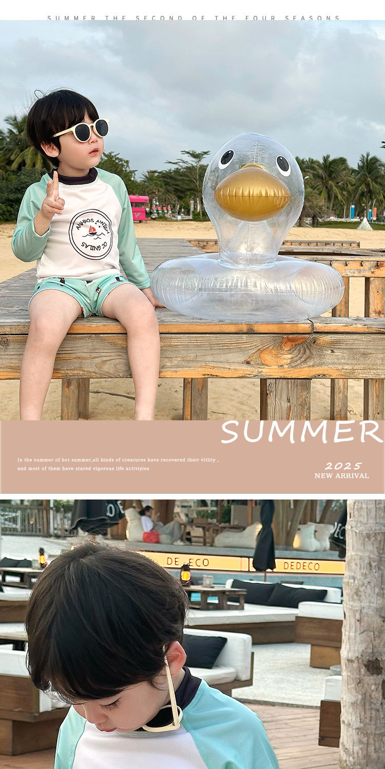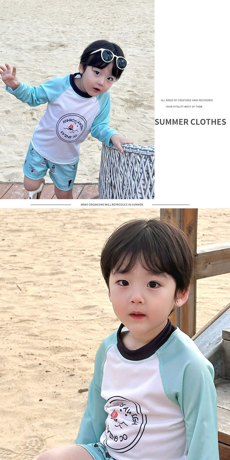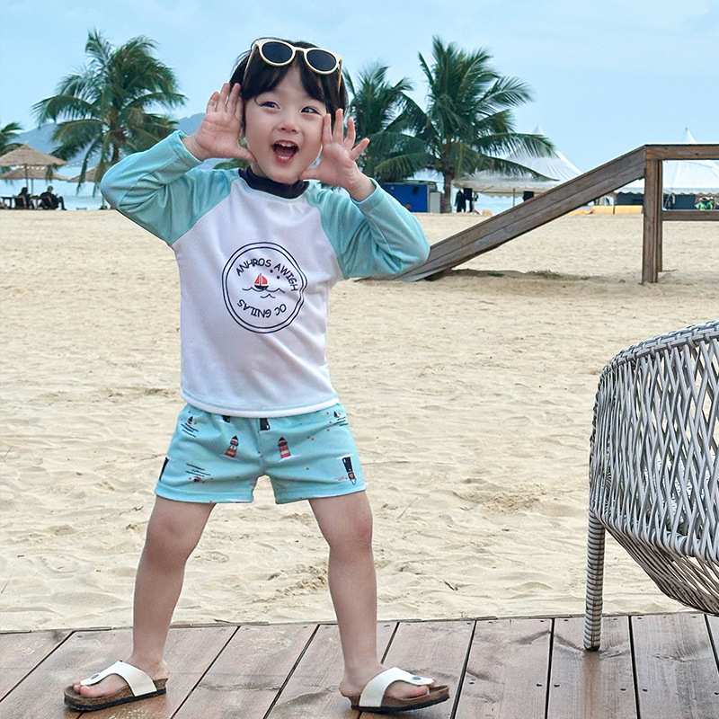 여름 2025 새로운 어린이 분할 수영복 소년과 소녀 긴 소매 태양 보호 수영복 세트 간단한 온천 휴일 수영복스토어 가기