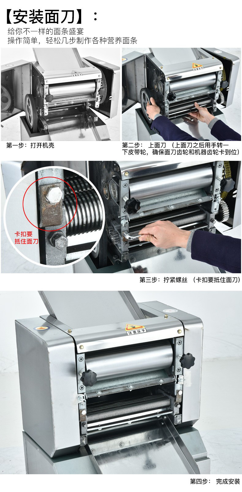 프레스 기계 상업 국수 기계 찐 박제 빵 스테인레스 스틸 대형 반죽 압연 기계 2200W 반죽 및 절단 기계스토어 가기