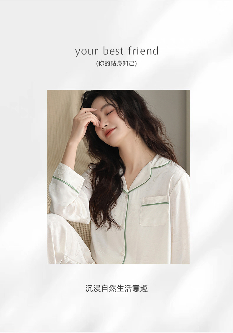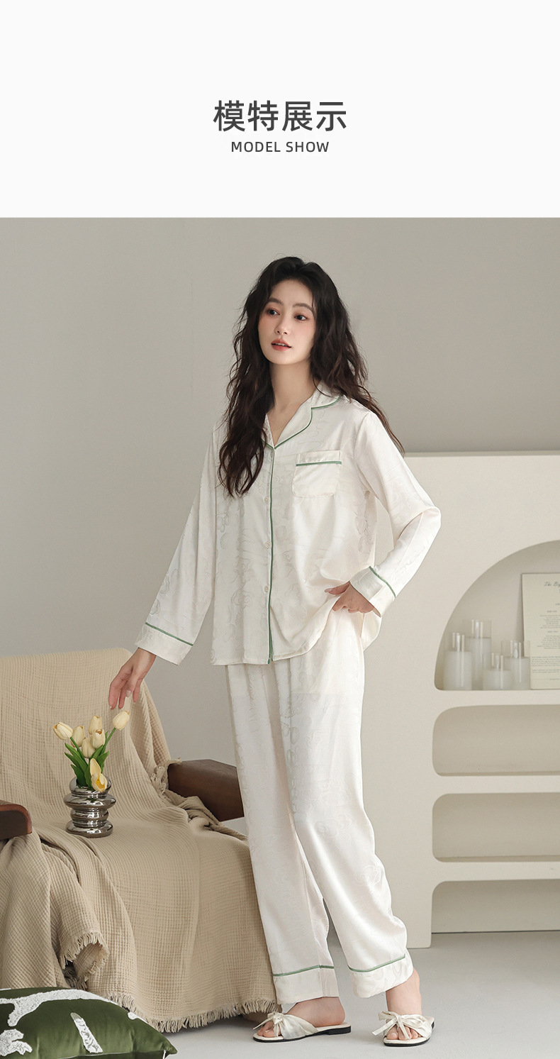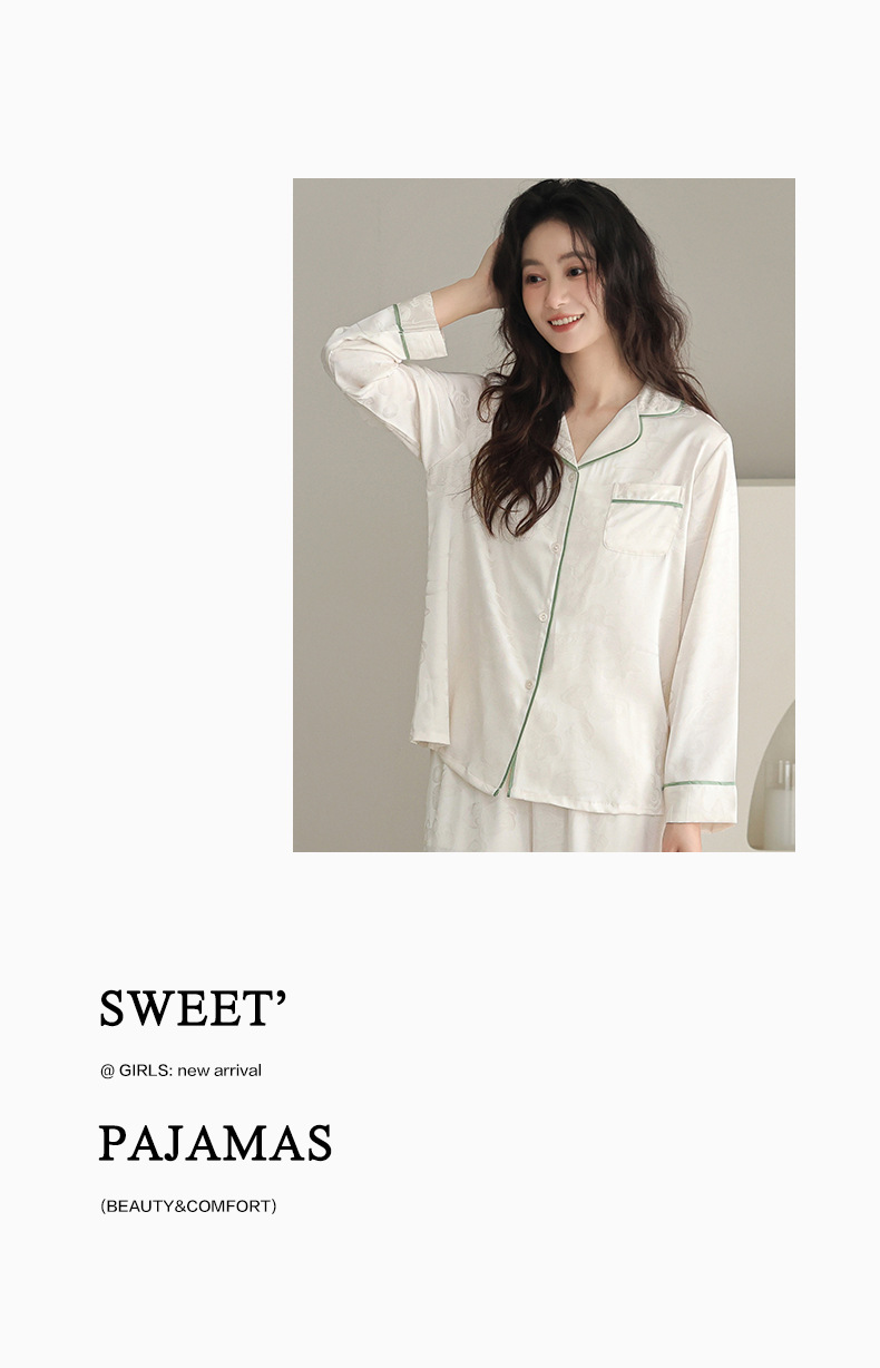 물롱 귀족 가족 아이스 실크 파자마 봄과 여름 하이 엔드 센스 홈 의류 2025 아이스 실크 긴팔 여름 실크 같은 홈 의류스토어 가기