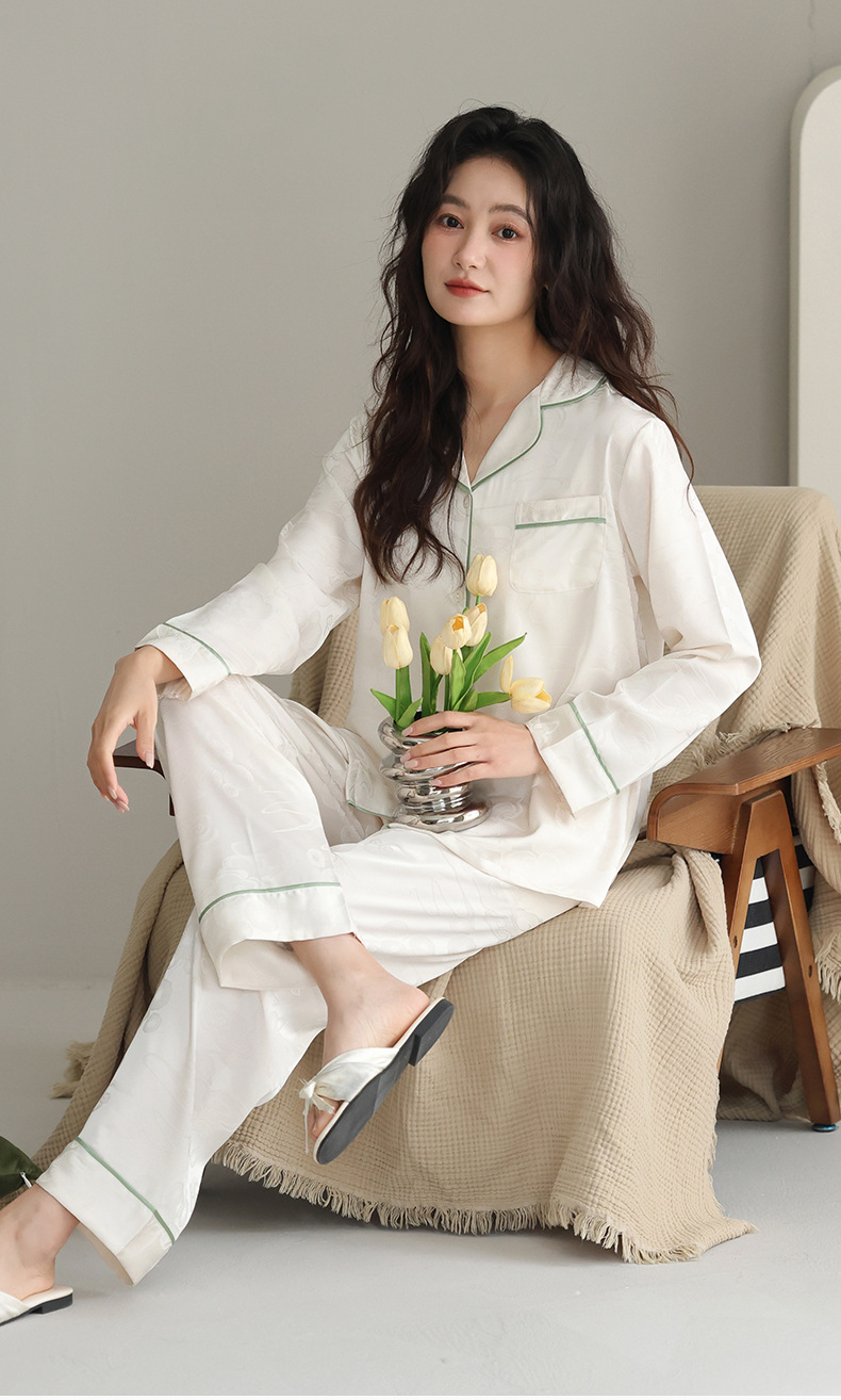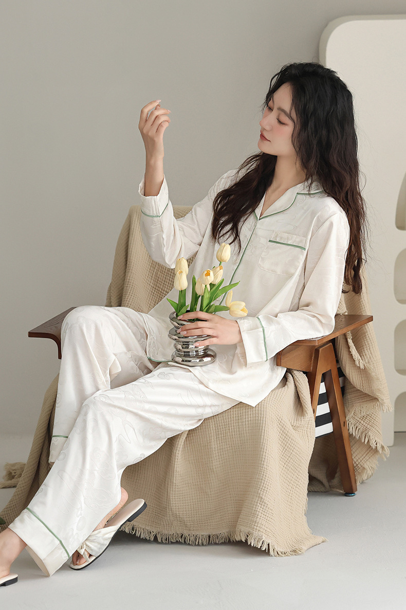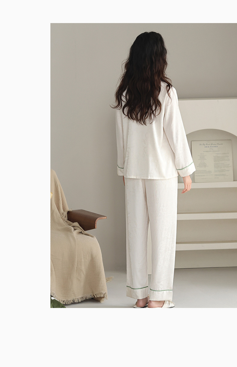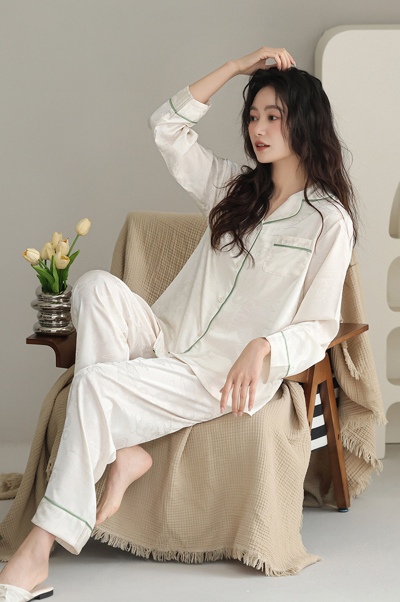 물롱 귀족 가족 아이스 실크 파자마 봄과 여름 하이 엔드 센스 홈 의류 2025 아이스 실크 긴팔 여름 실크 같은 홈 의류스토어 가기