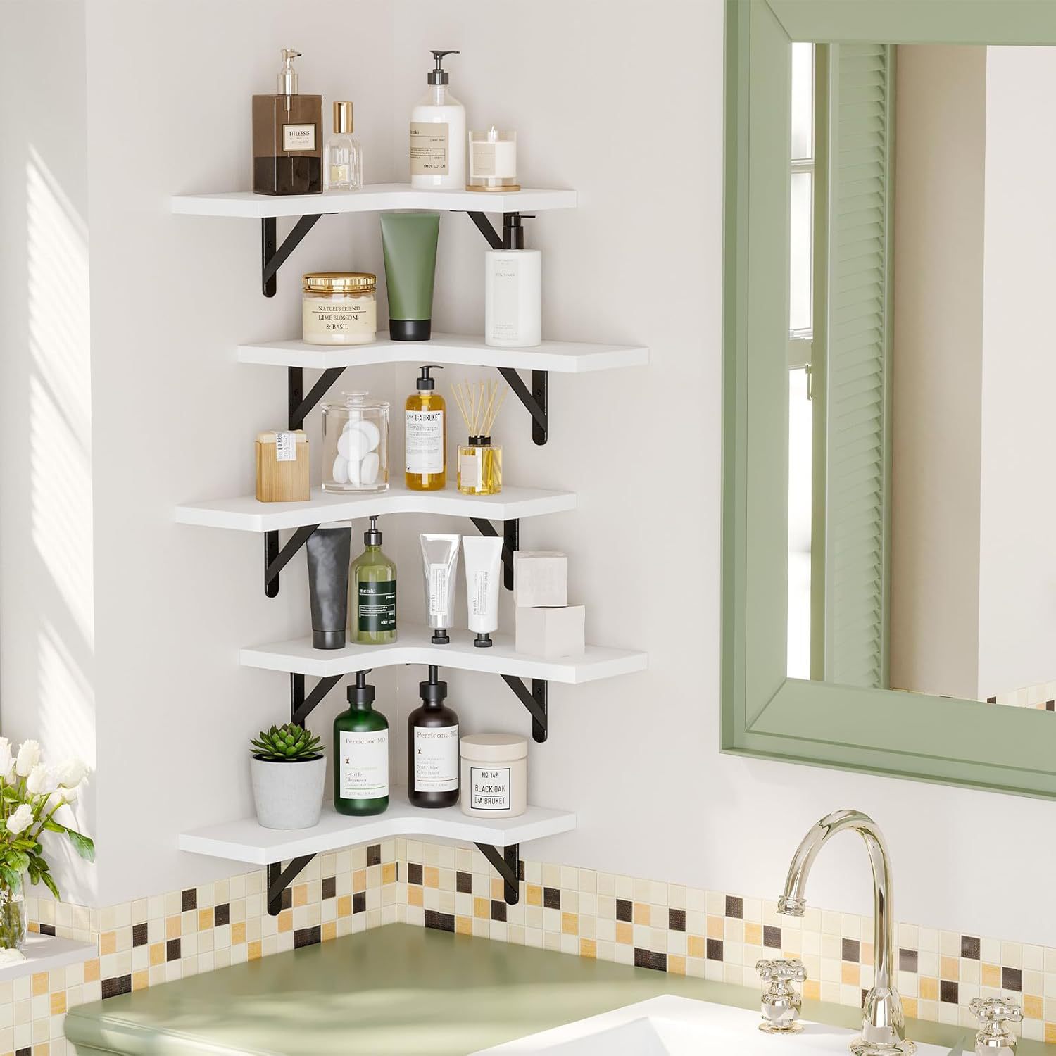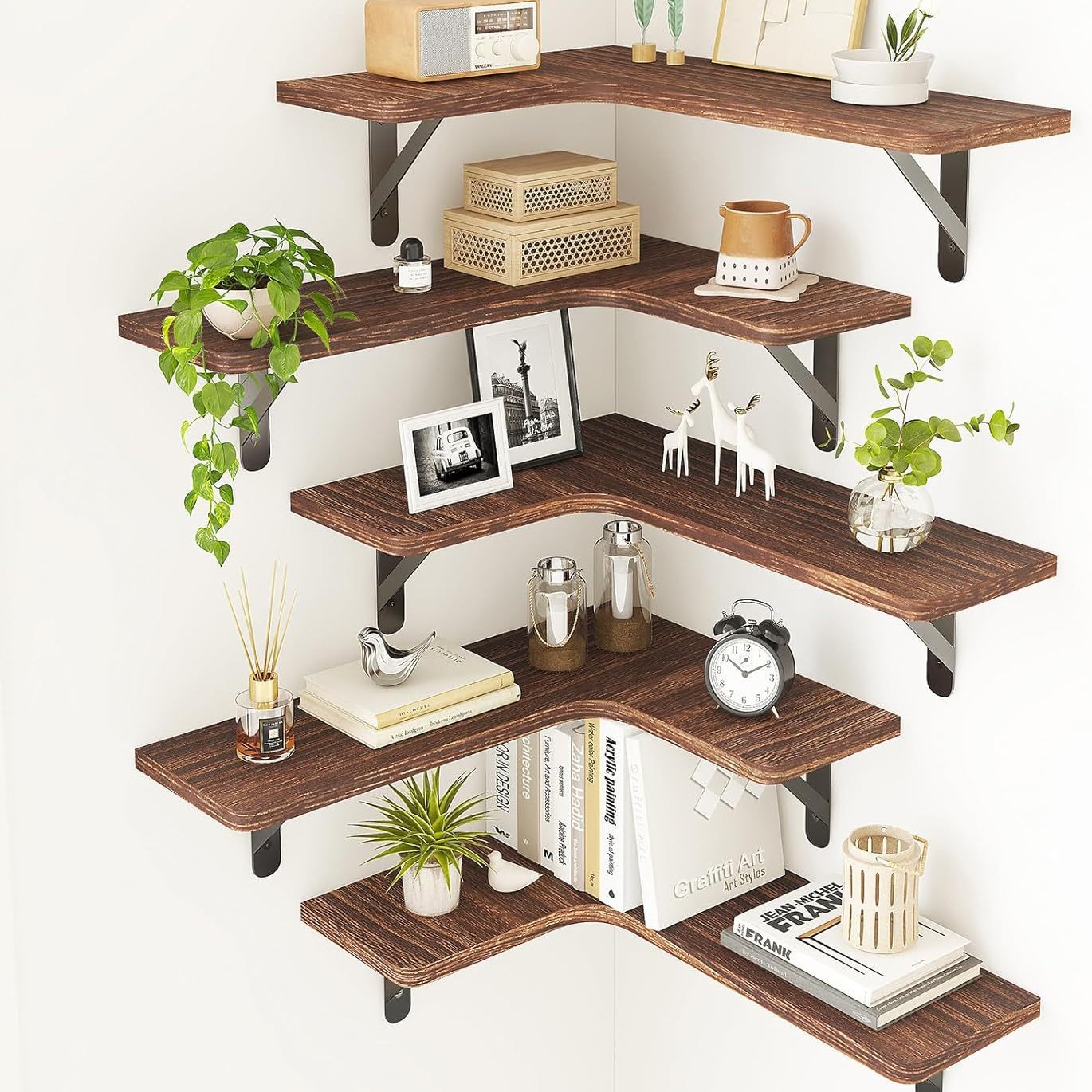 나무 벽 저장 랙 거실 코너 저장 랙 다층 벽 걸이 일시 중단 된 보드 저장 랙 다기능스토어 가기