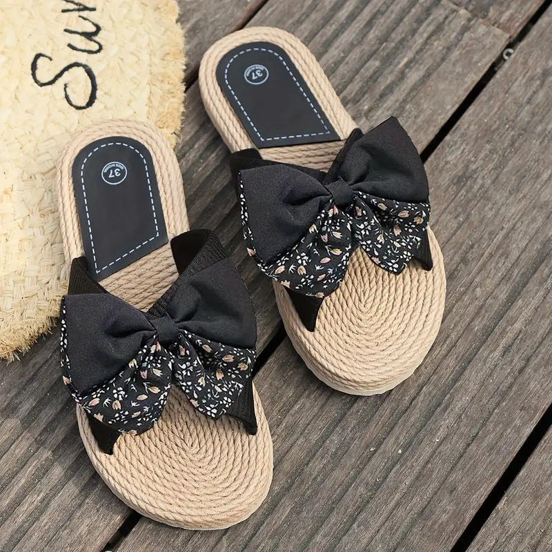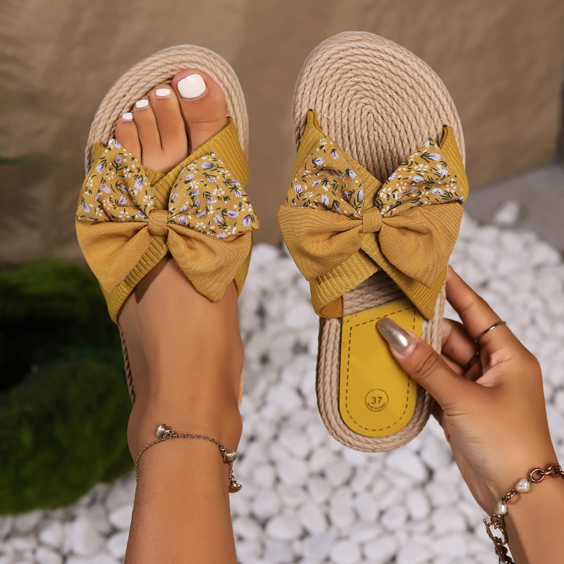 새로운 여름 쌀 꽃 여성 슬리퍼 대마 로프 바닥 단색 패션 트렌드 실내 야외 베이지 꽃 활 슬리퍼