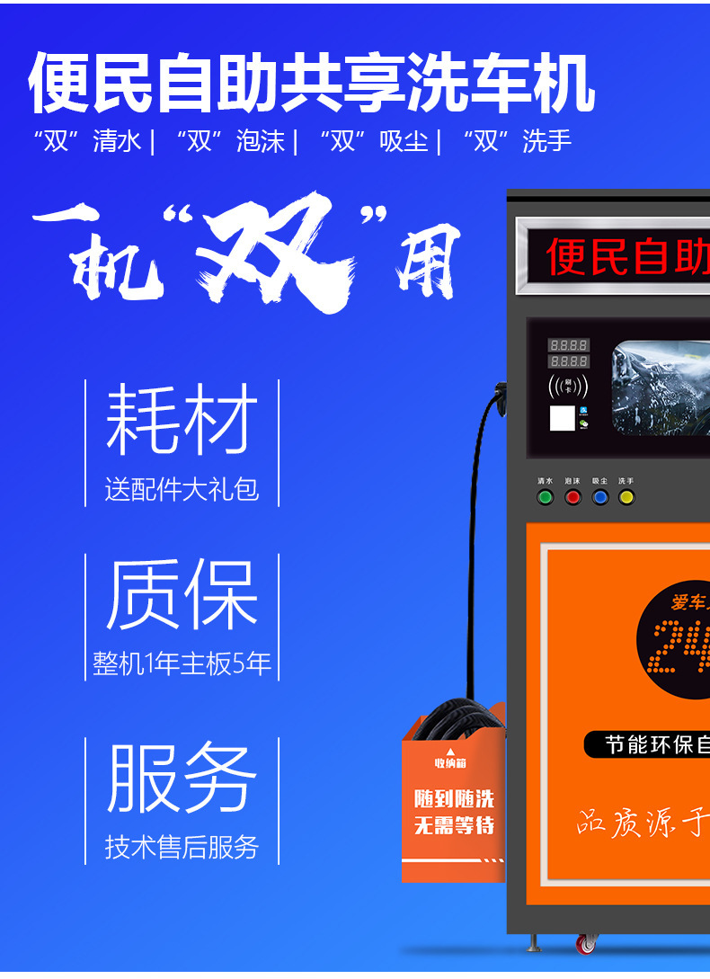 셀프 서비스 자동차 세탁기 상업용 24 시간 공유 스캐닝 코드 카드 스 와이프 더블 카 세척 가능 초고압 폼 자동차 세탁기 동시에