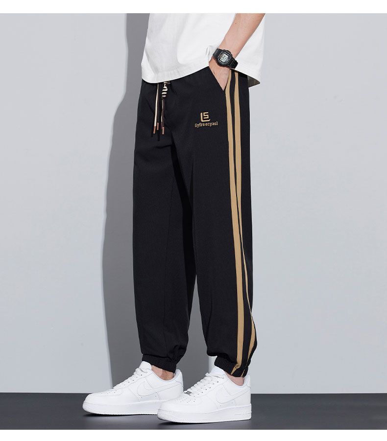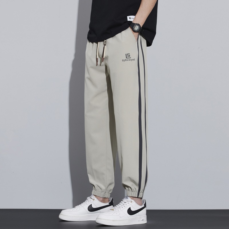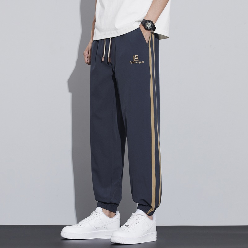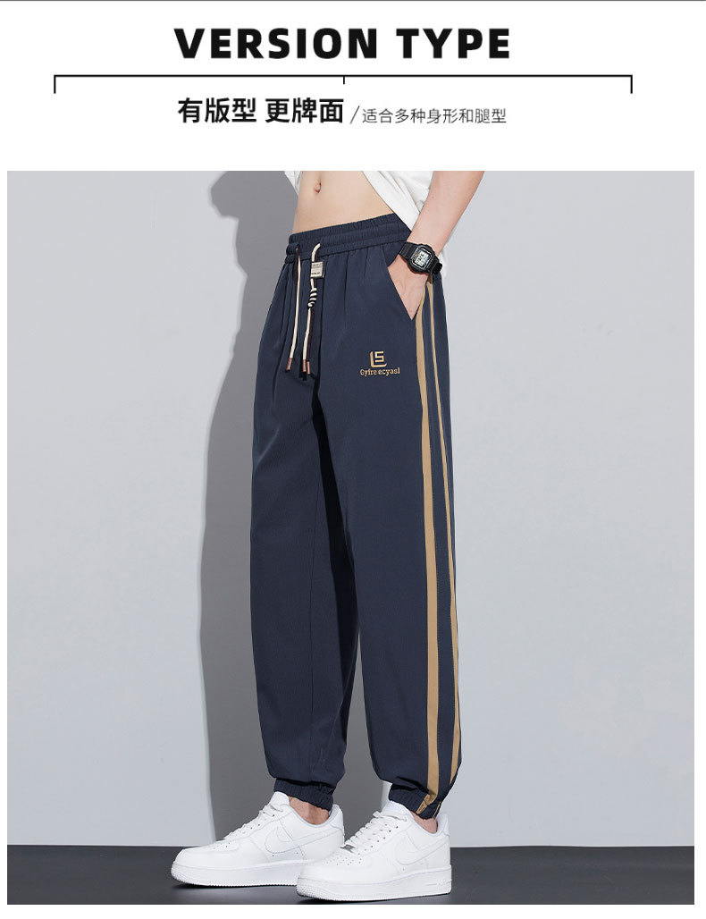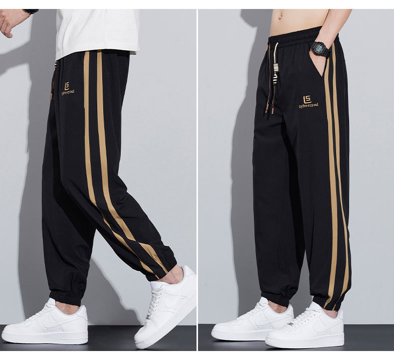 새로운 아이스 실크 캐주얼 바지 남성용 여름 얇은 느슨한 9 점 스포츠 바지 줄무늬 바지 바지 운전 바지 도매스토어 가기