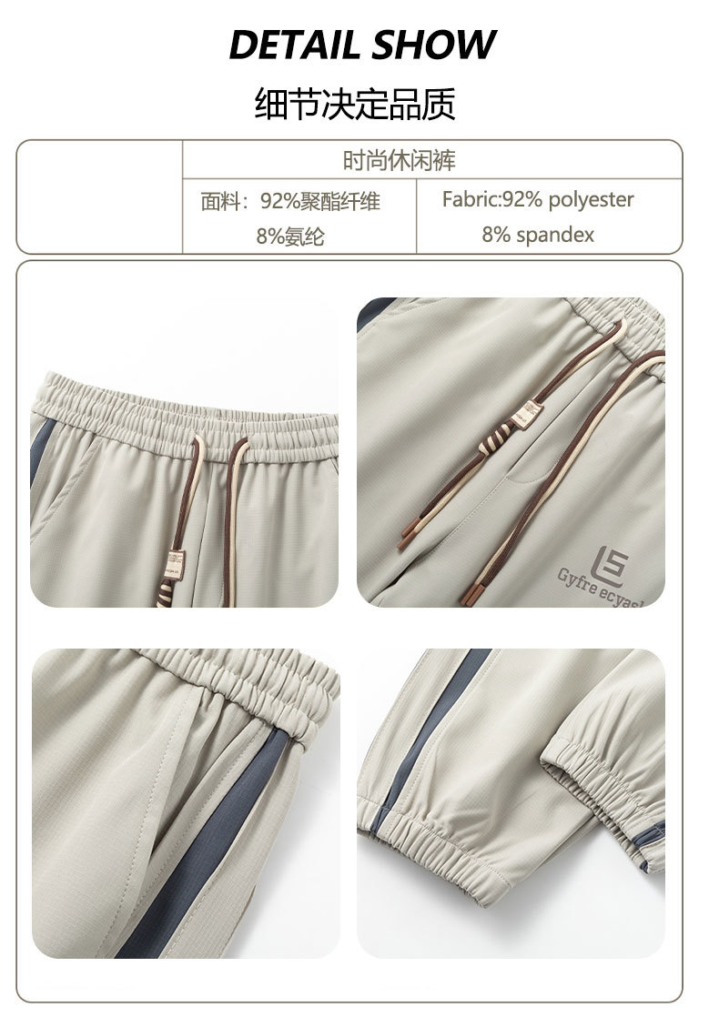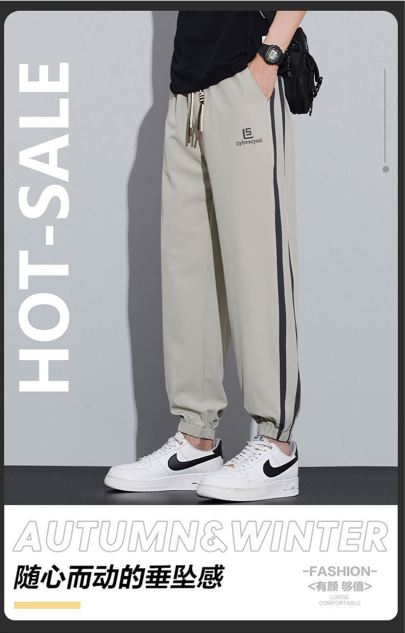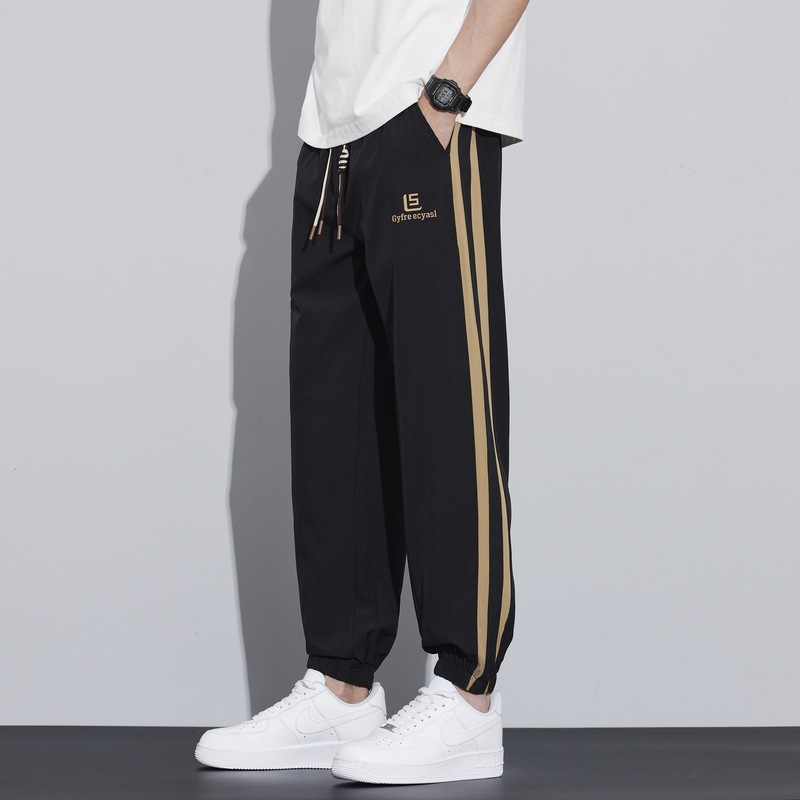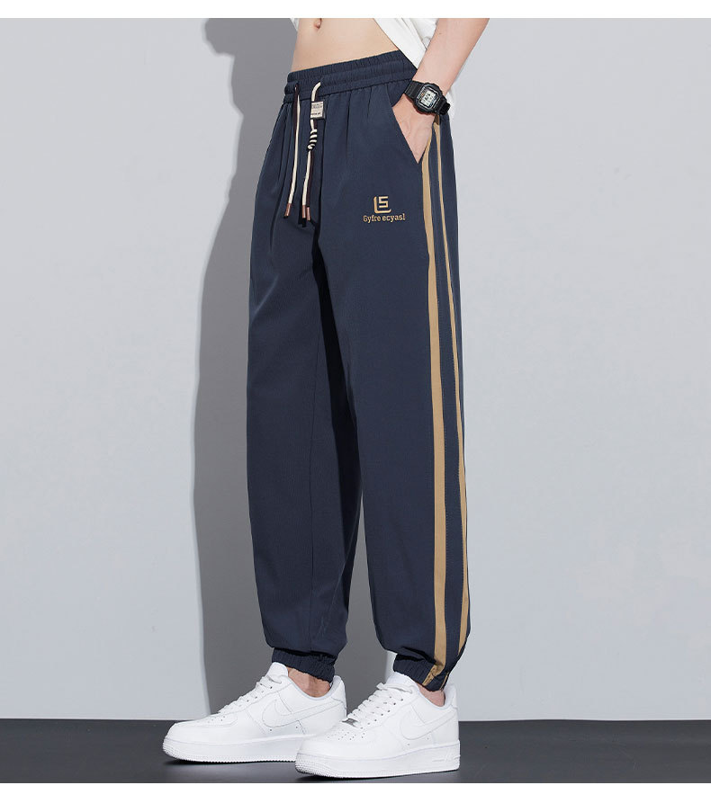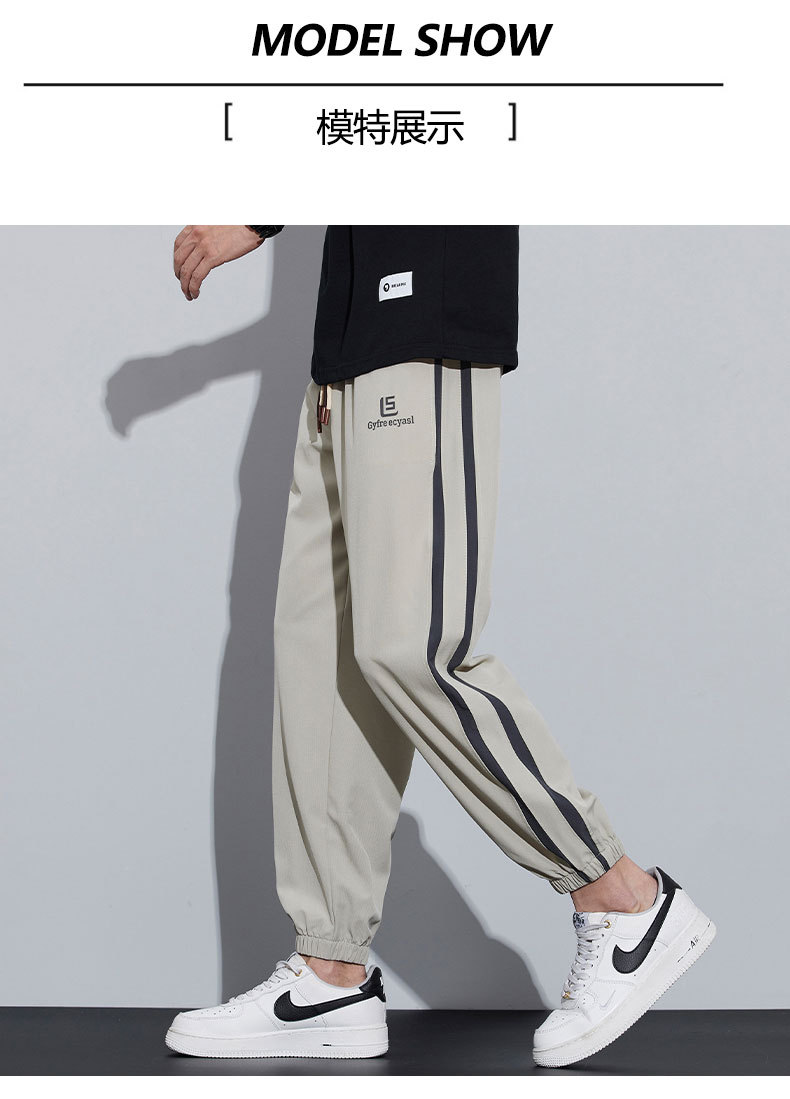 새로운 아이스 실크 캐주얼 바지 남성용 여름 얇은 느슨한 9 점 스포츠 바지 줄무늬 바지 바지 운전 바지 도매스토어 가기