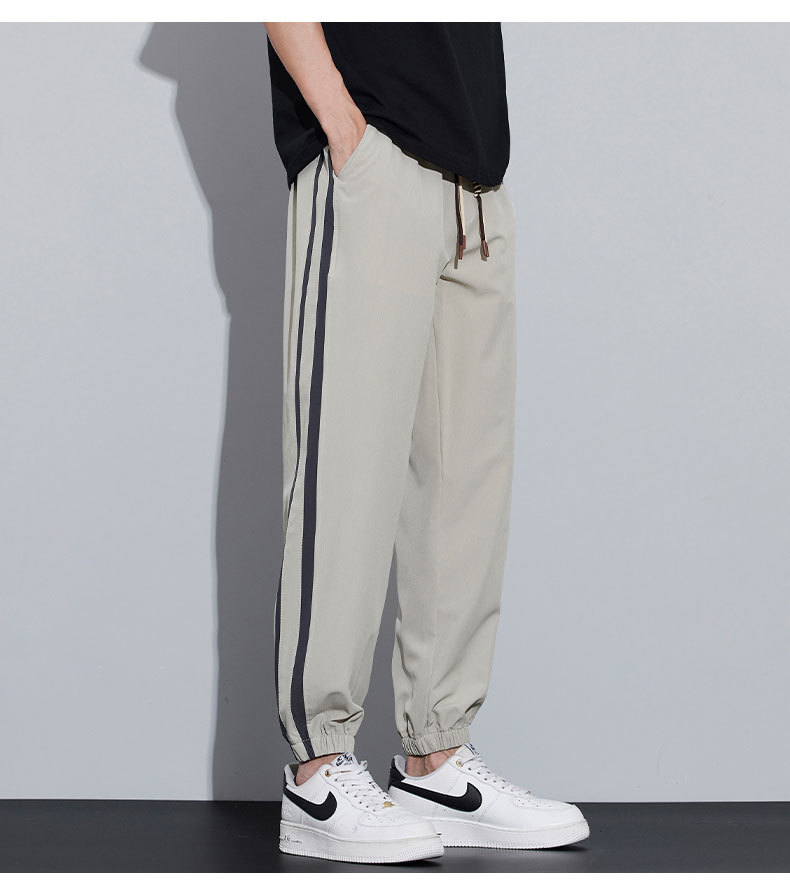 새로운 아이스 실크 캐주얼 바지 남성용 여름 얇은 느슨한 9 점 스포츠 바지 줄무늬 바지 바지 운전 바지 도매