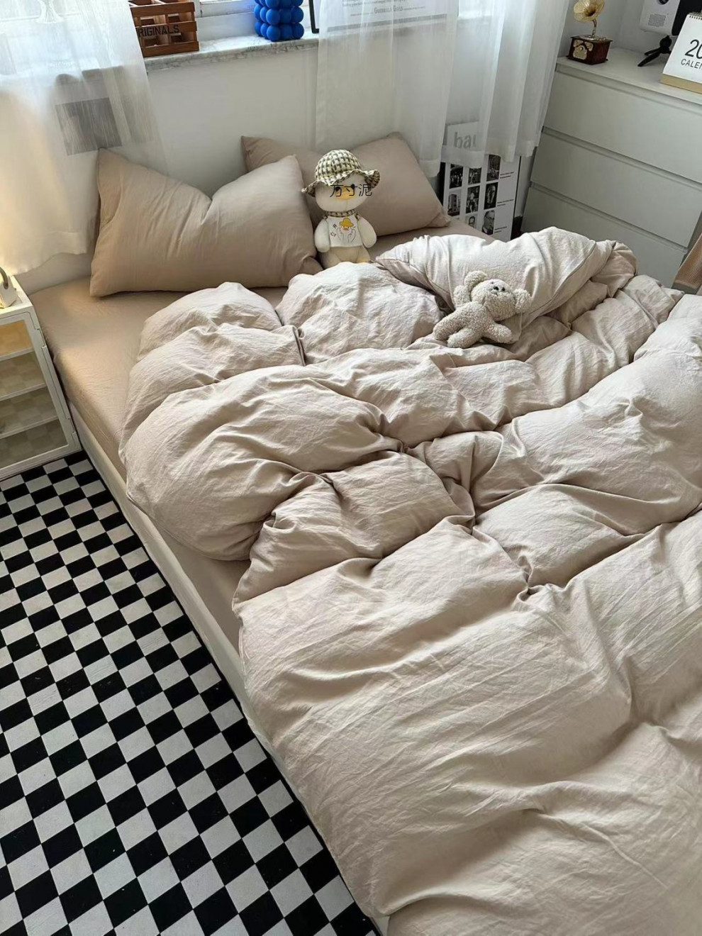 Ins 밀크 티 컬러 소프트 왁스, 레트로 워시 코튼 4 피스 세트 컬러 감각 학생 기숙사 3 피스 공장 도매스토어 가기
