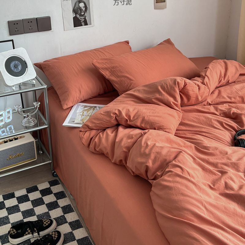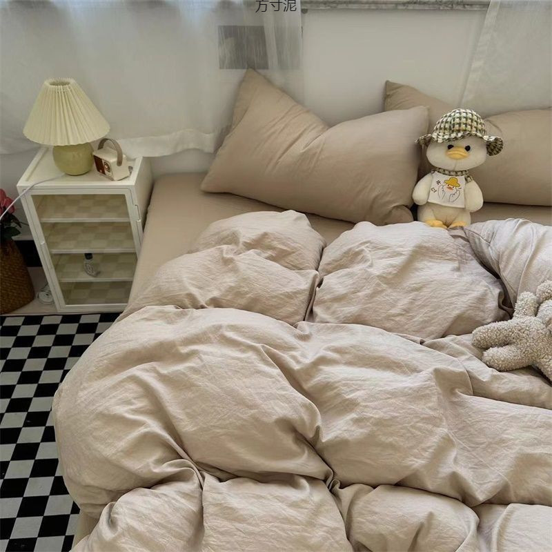 Ins 밀크 티 컬러 소프트 왁스, 레트로 워시 코튼 4 피스 세트 컬러 감각 학생 기숙사 3 피스 공장 도매