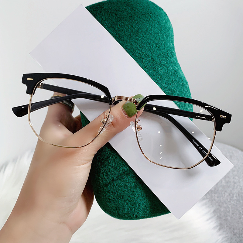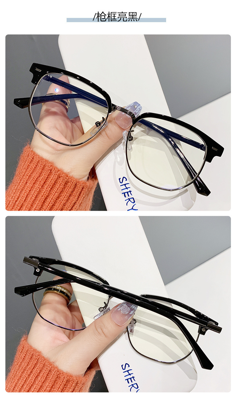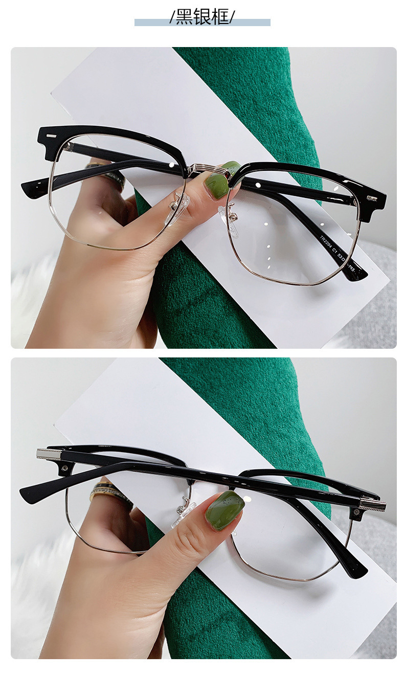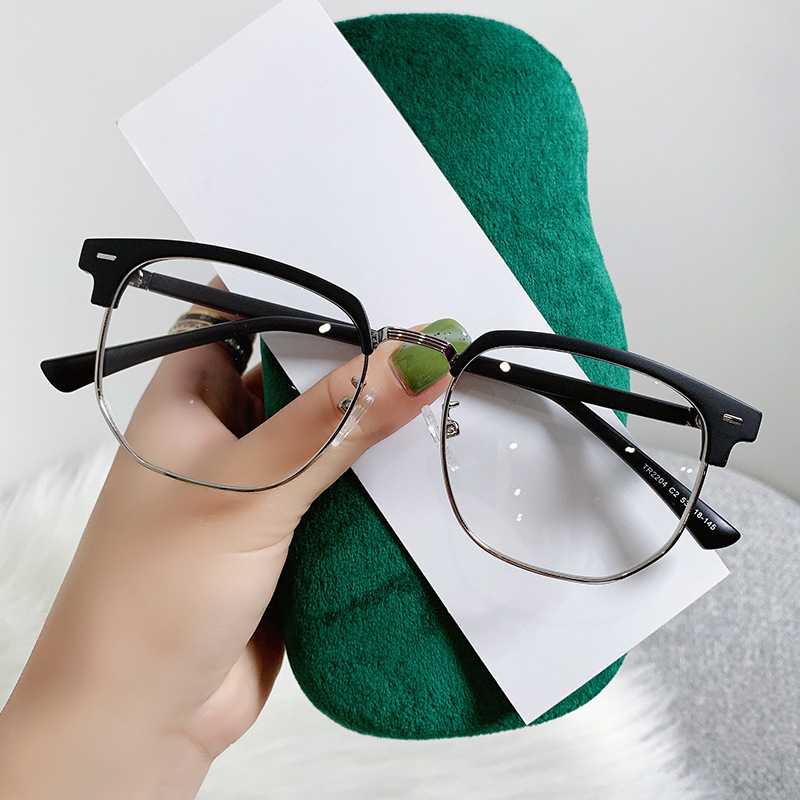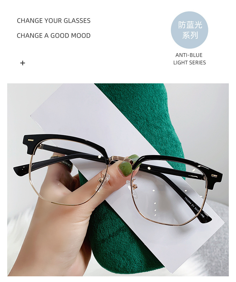 새로운 복고풍 안티 블루 라이트 안경 프레임 남성용 TR90 코어 금속 하프 프레임 평면 거울 여성 프레임스토어 가기