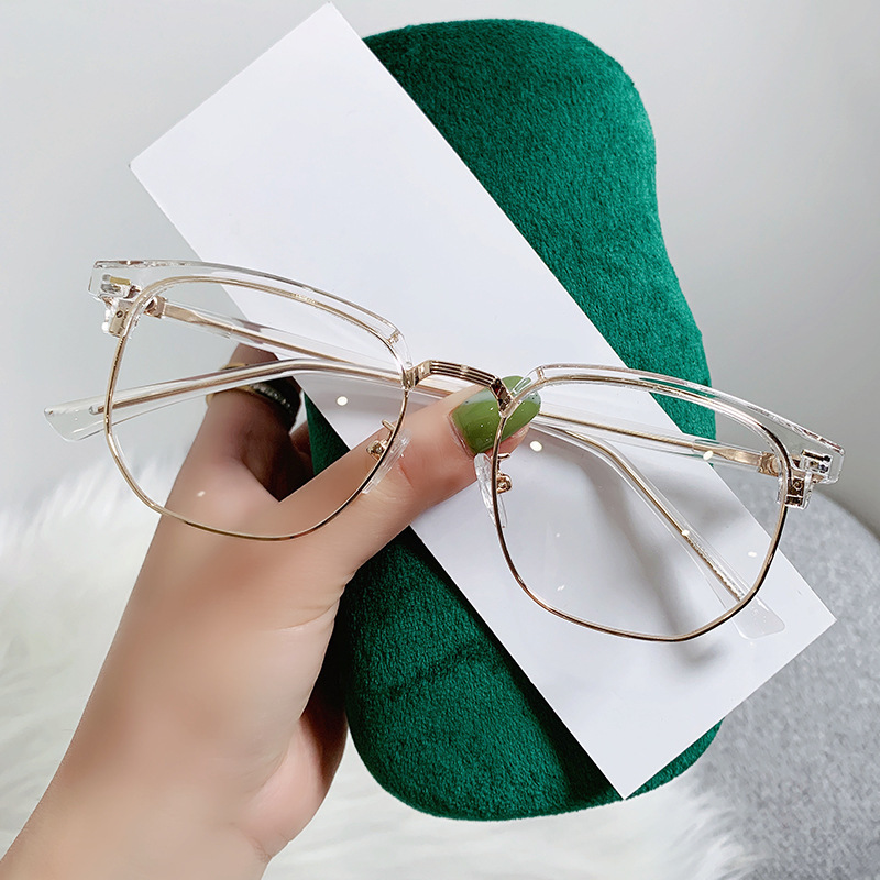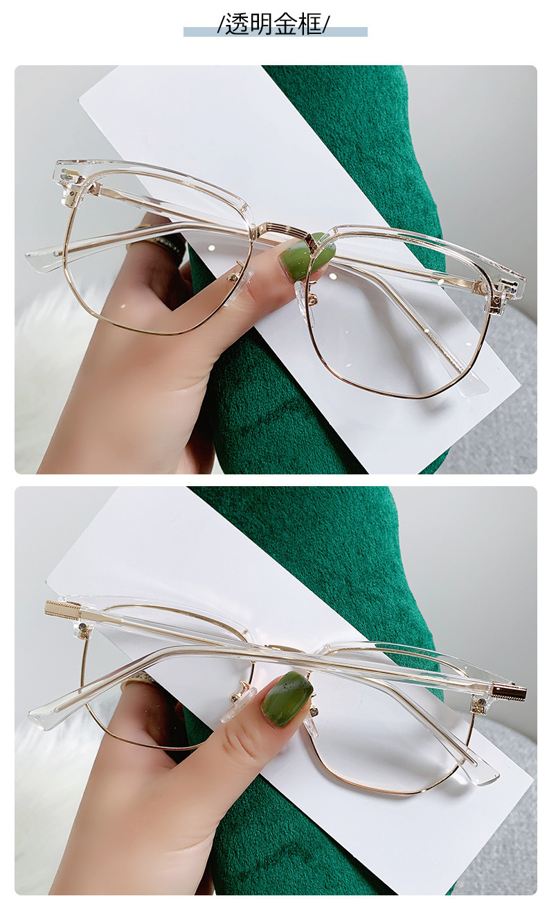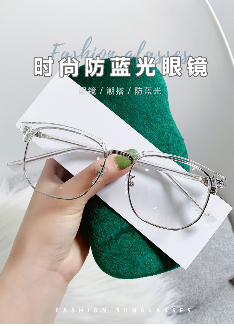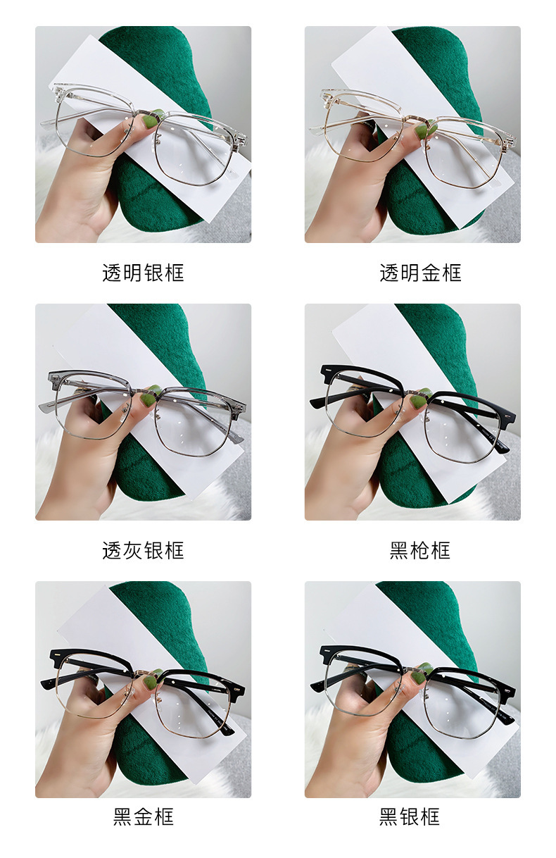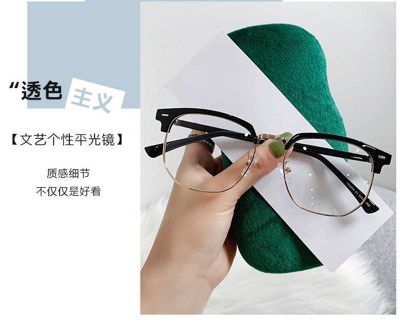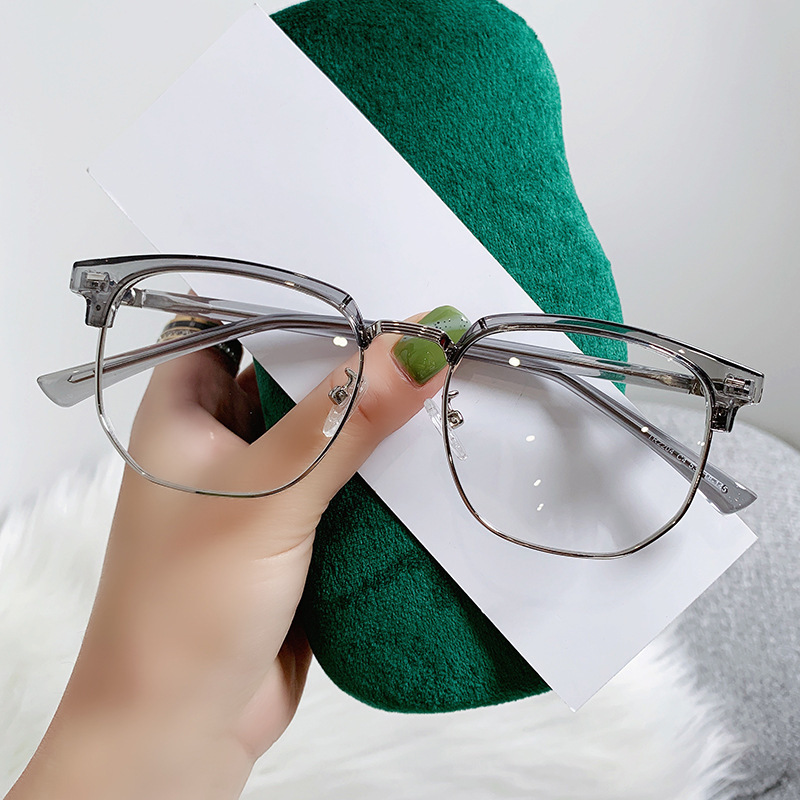 새로운 복고풍 안티 블루 라이트 안경 프레임 남성용 TR90 코어 금속 하프 프레임 평면 거울 여성 프레임스토어 가기
