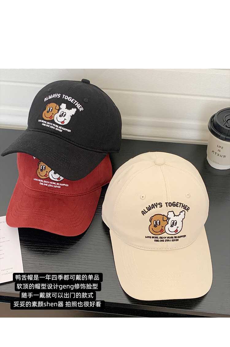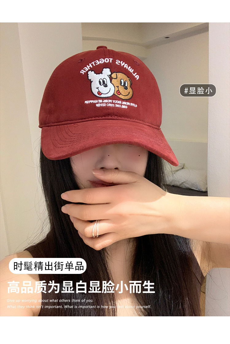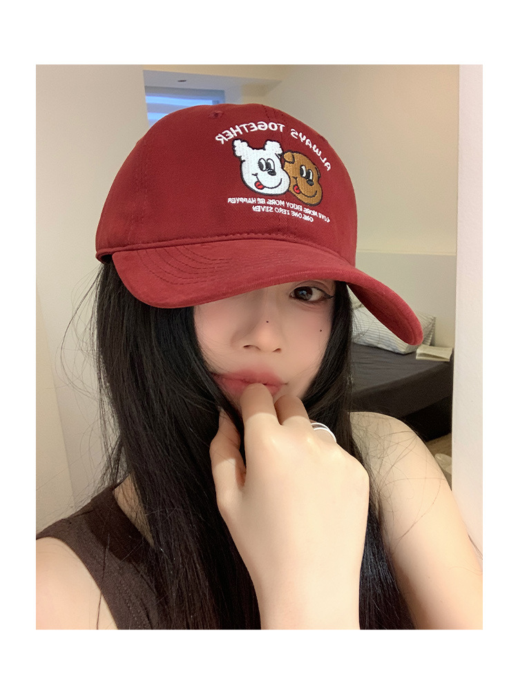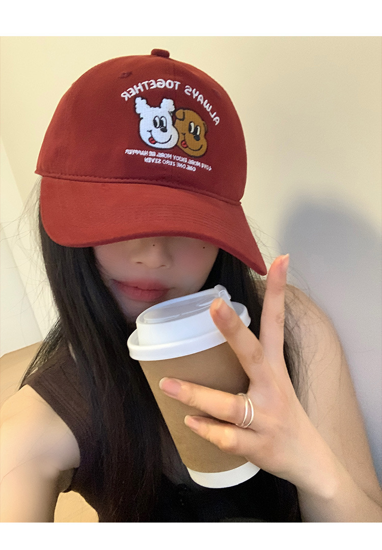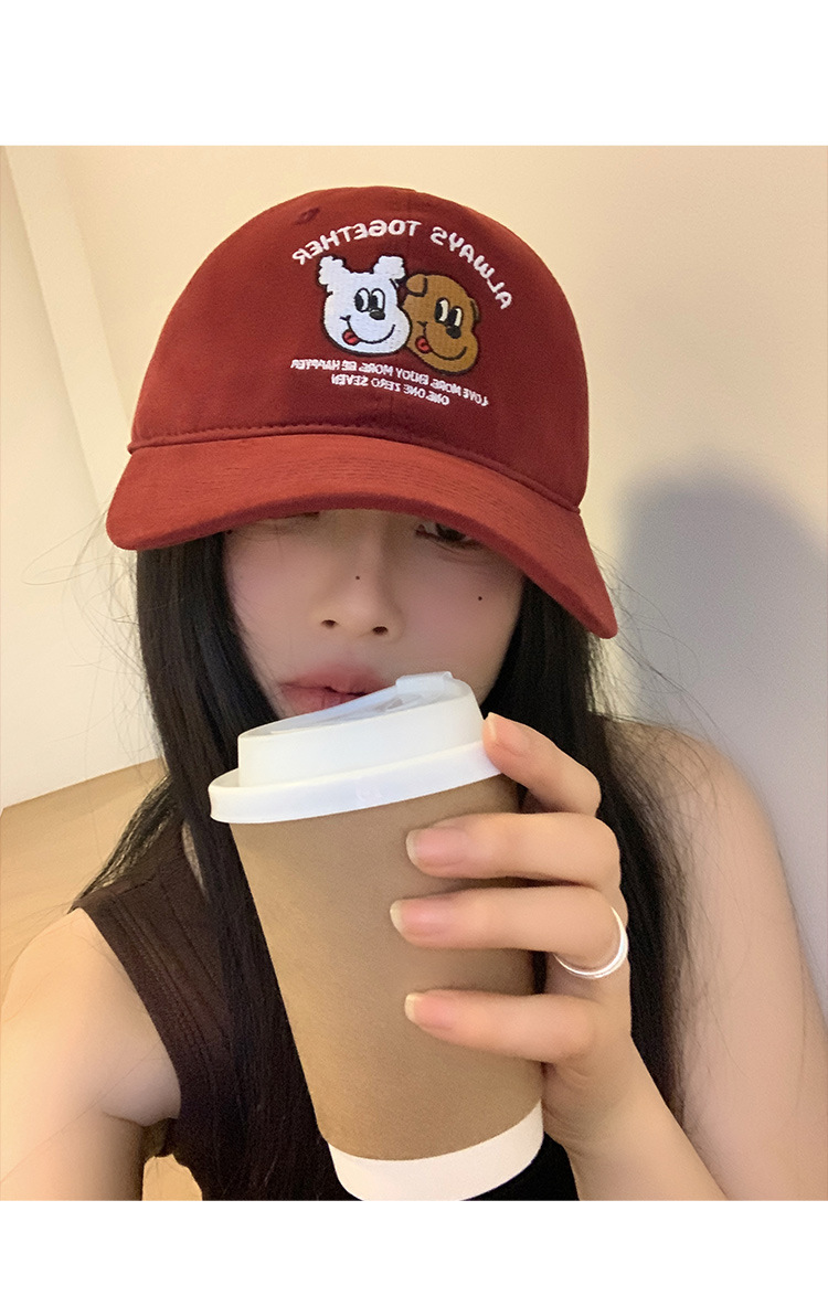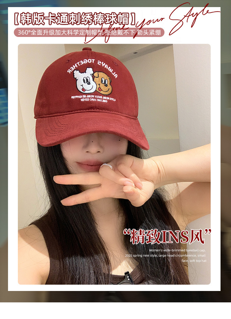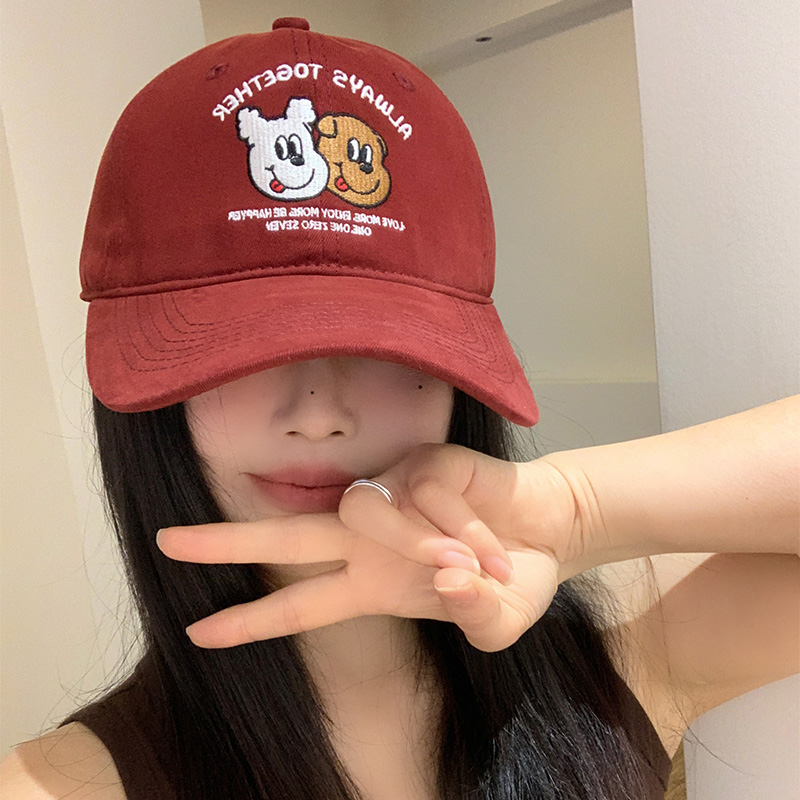 만화 귀여운 강아지 자수 빨간 야구 모자 소녀 2025 새로운 한국 스타일 올 매치 빅 페이스 소프트 탑 캡스토어 가기