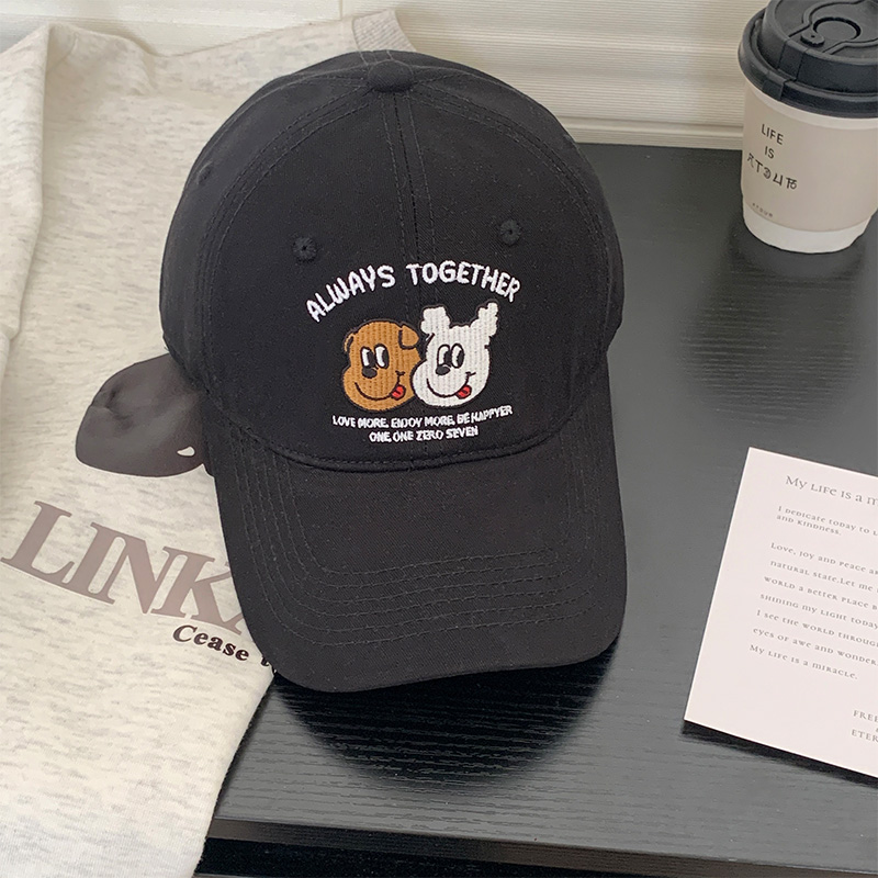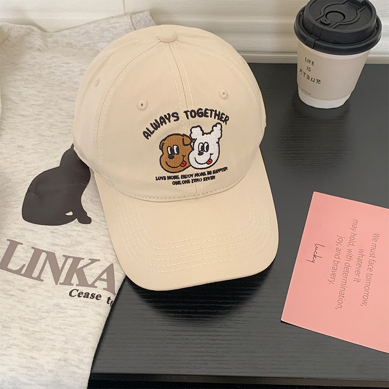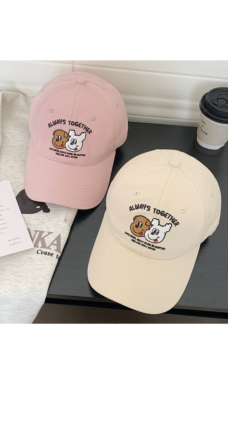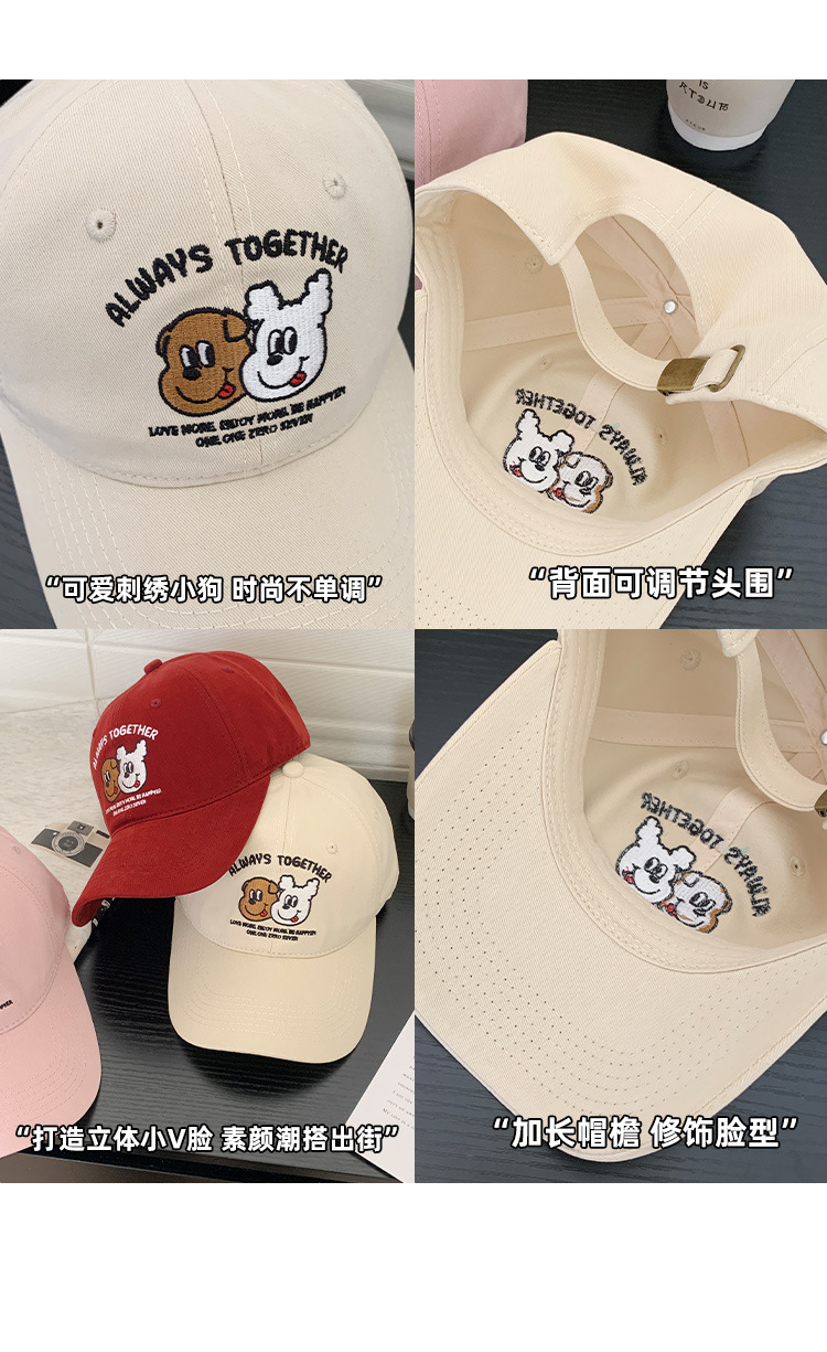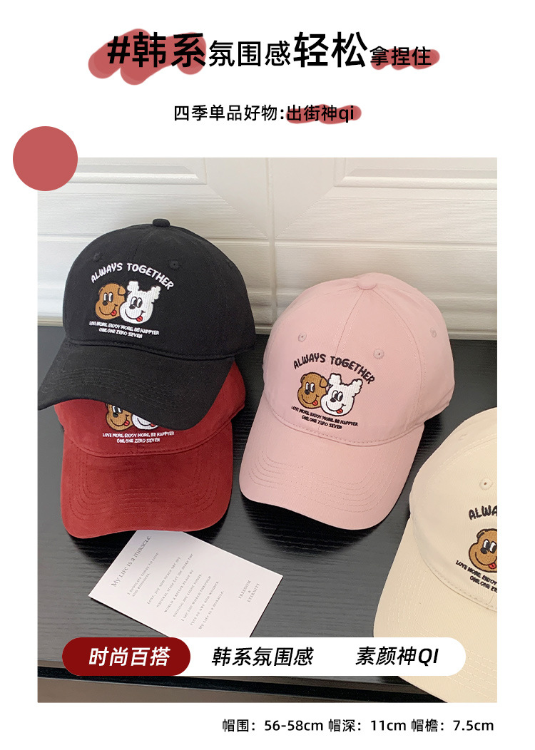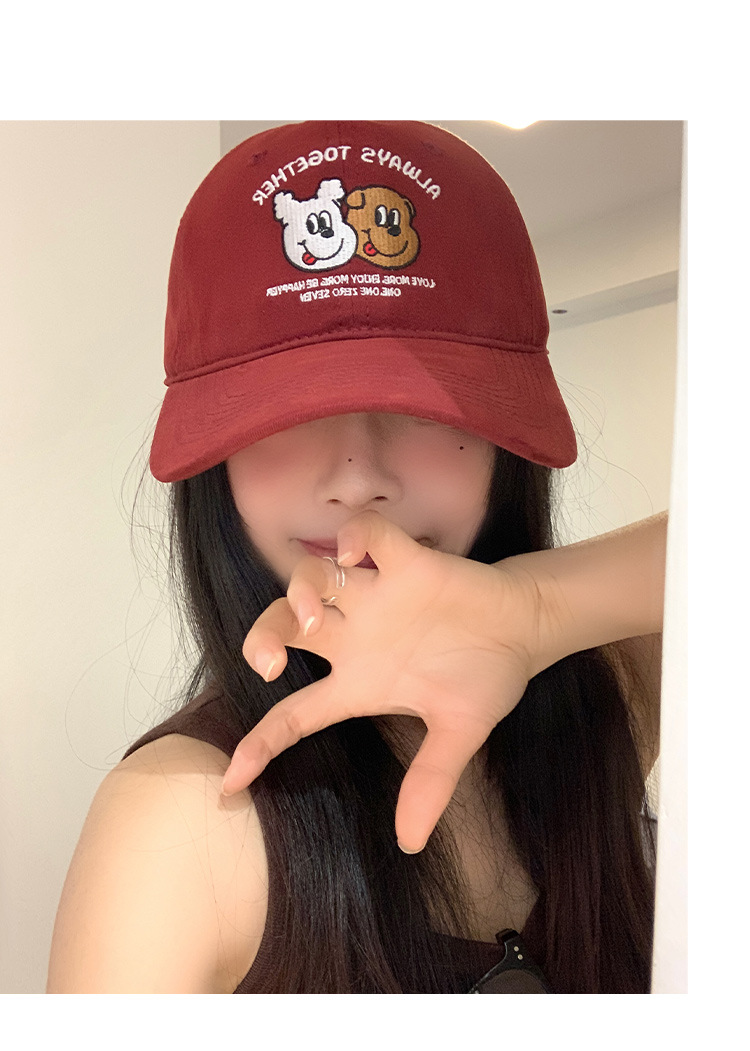 만화 귀여운 강아지 자수 빨간 야구 모자 소녀 2025 새로운 한국 스타일 올 매치 빅 페이스 소프트 탑 캡스토어 가기