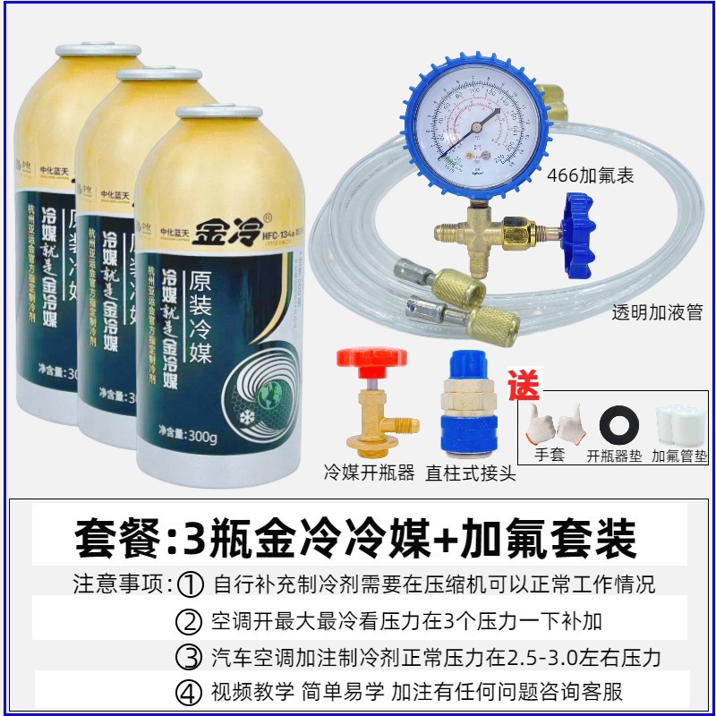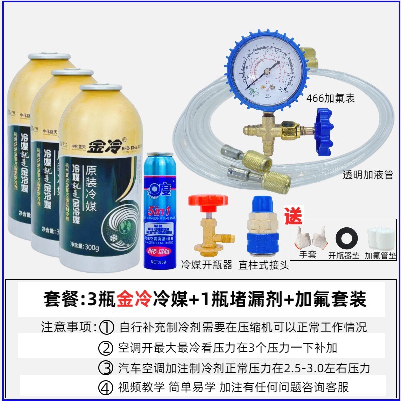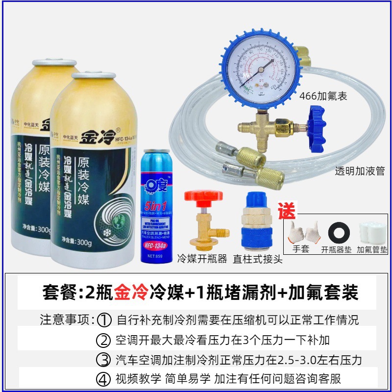 골든 콜드 134 냉매 자동차 에어컨 황금 냉매 링 주화 스노우 프레온 불소 도구 세트스토어 가기