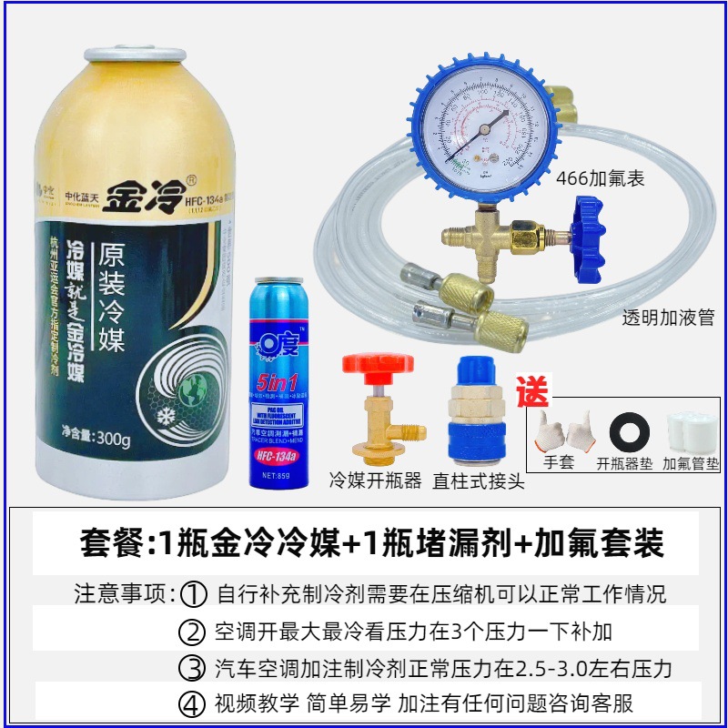 • Jinleng 냉매 1병 + 불소 도구 세트