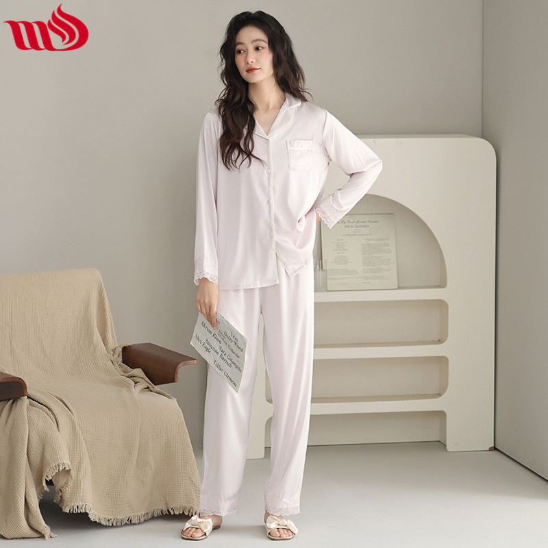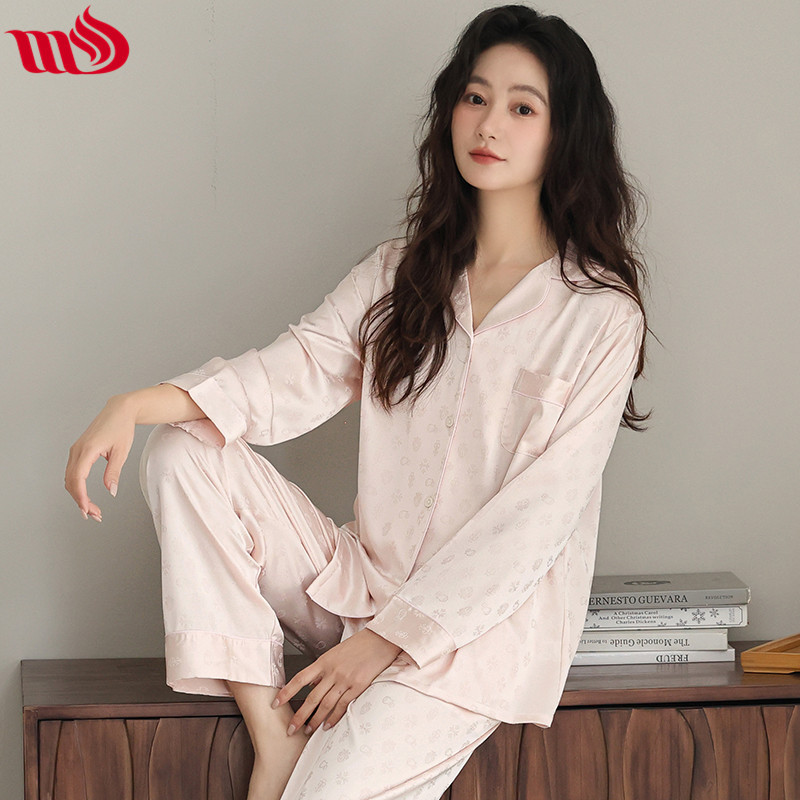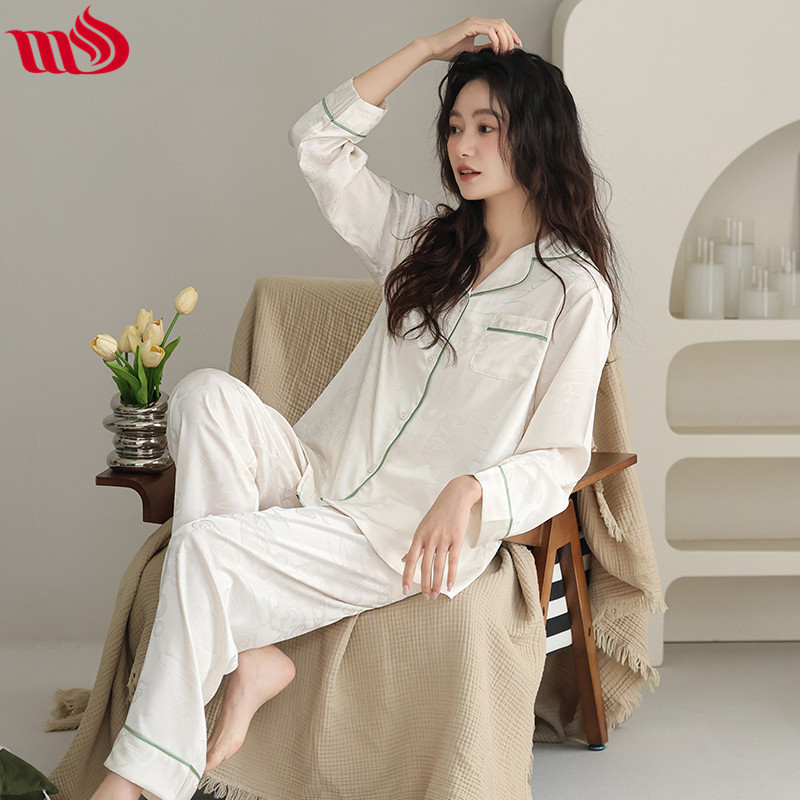물롱 귀족 가족 아이스 실크 파자마 봄과 여름 하이 엔드 센스 홈 의류 2025 아이스 실크 긴팔 여름 실크 같은 홈 의류