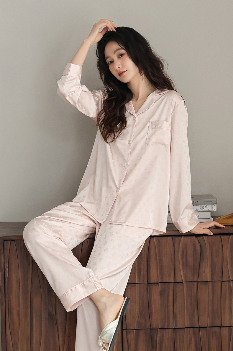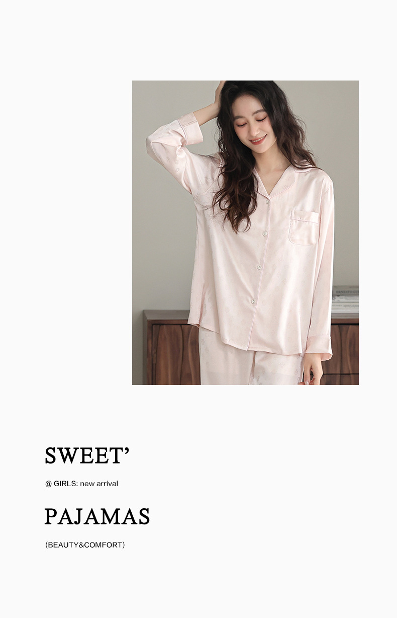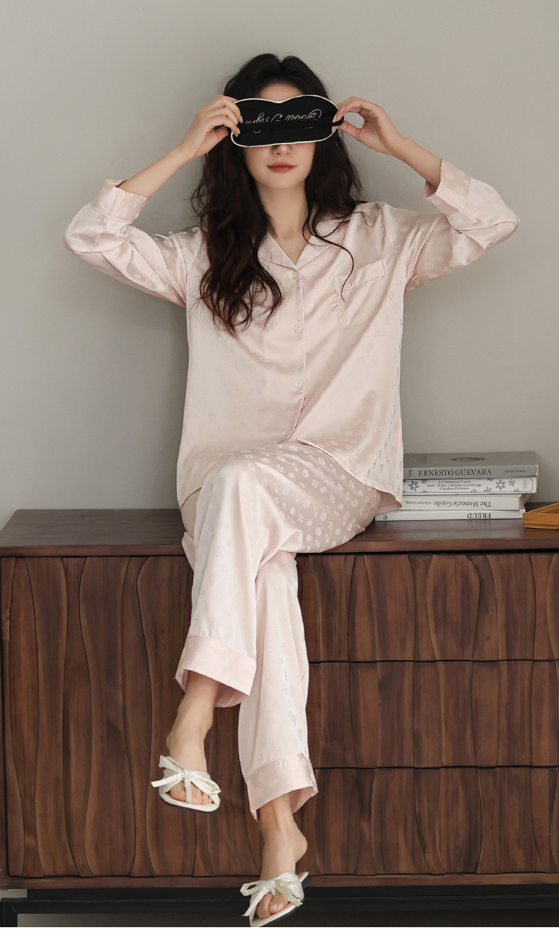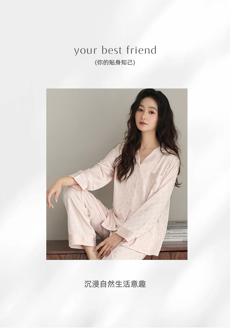 물롱 귀족 가족 아이스 실크 파자마 봄과 여름 하이 엔드 센스 홈 의류 2025 아이스 실크 긴팔 여름 실크 같은 홈 의류스토어 가기