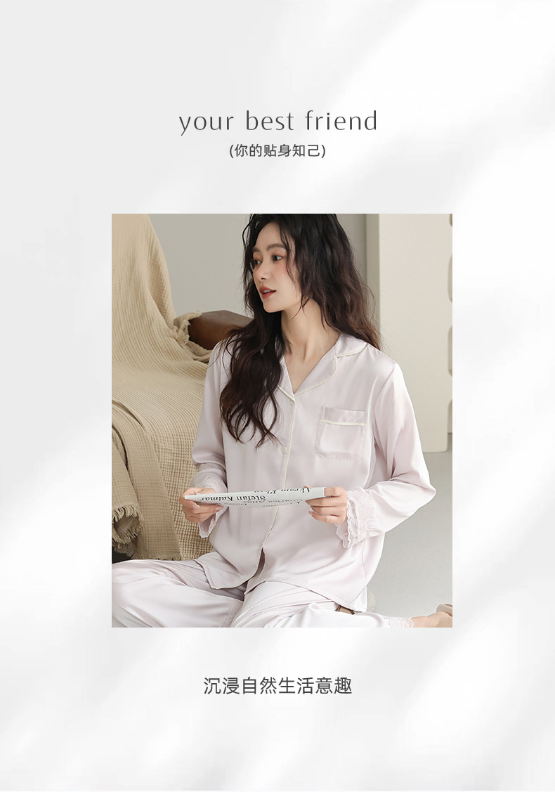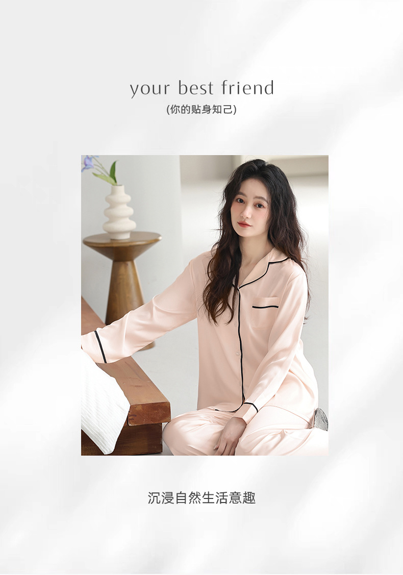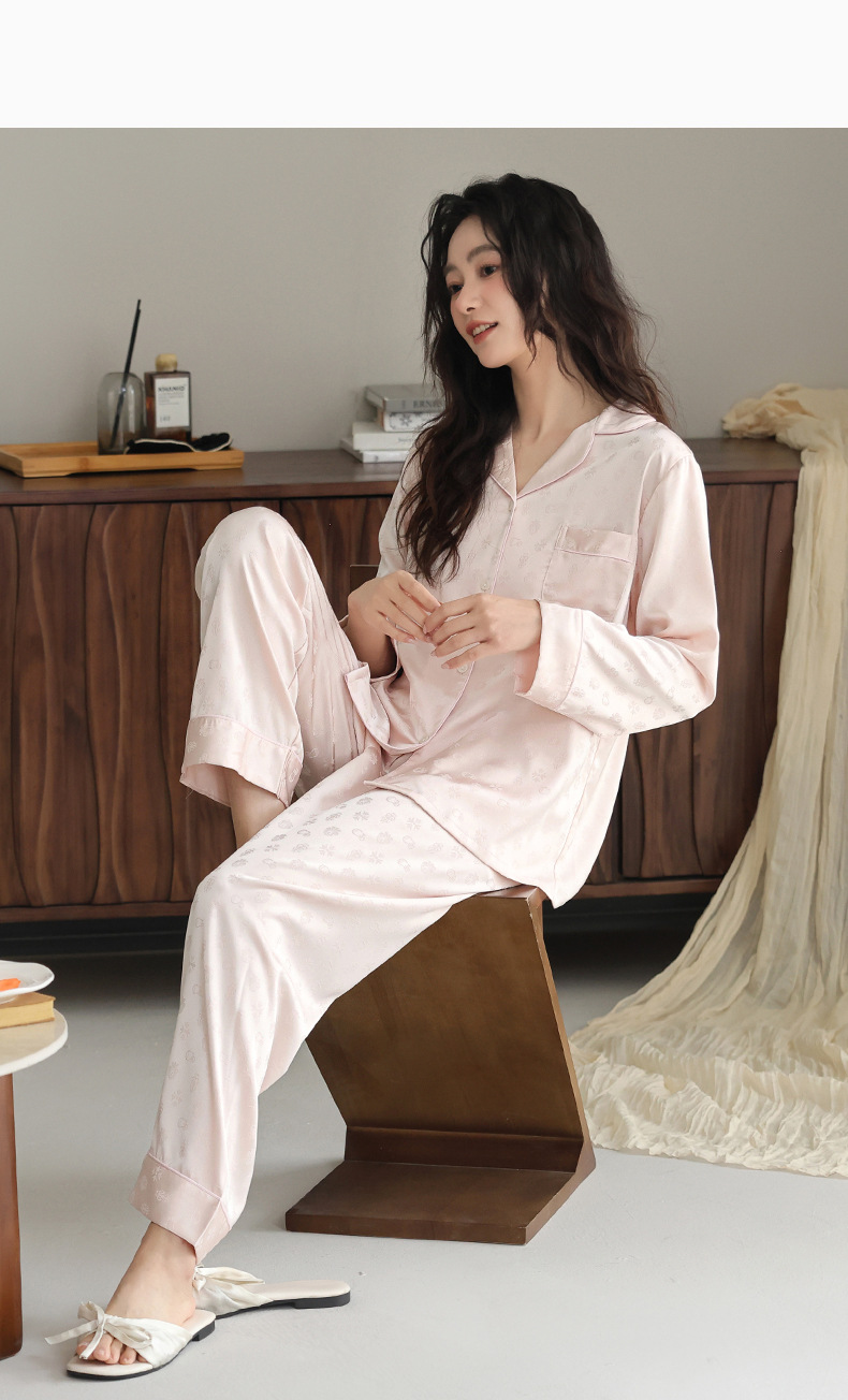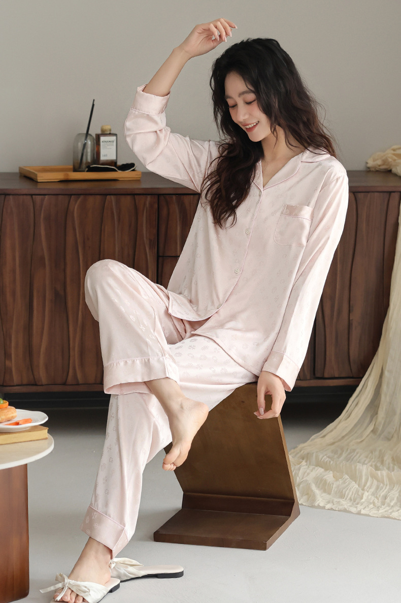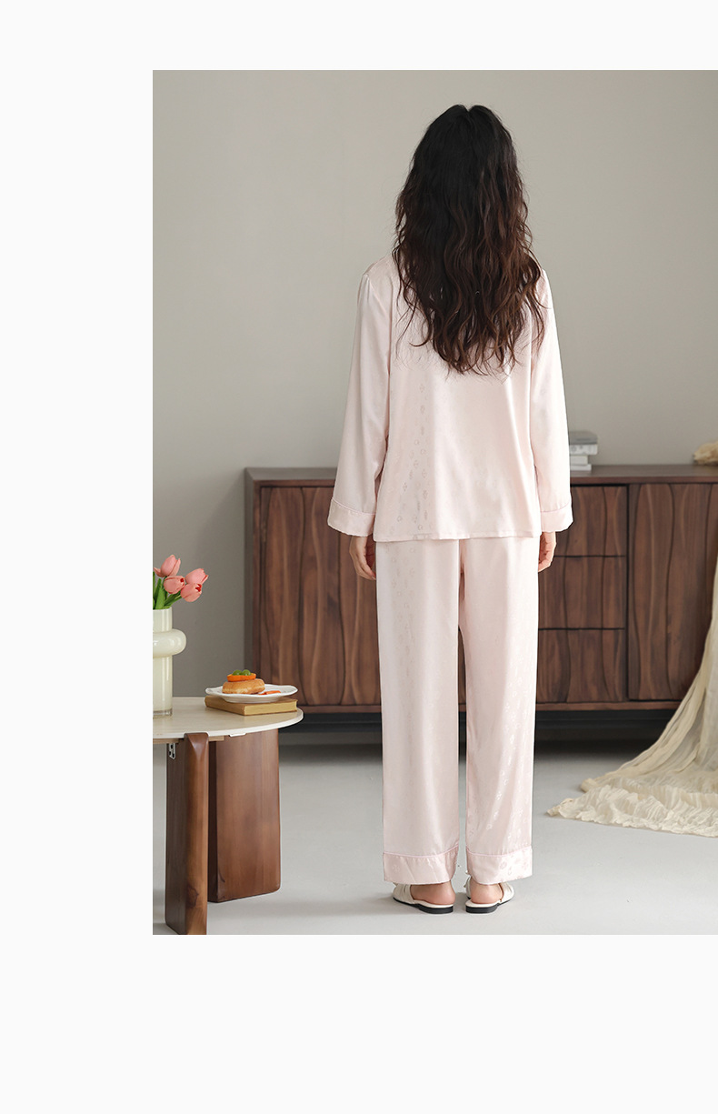 물롱 귀족 가족 아이스 실크 파자마 봄과 여름 하이 엔드 센스 홈 의류 2025 아이스 실크 긴팔 여름 실크 같은 홈 의류스토어 가기