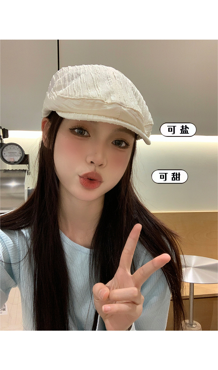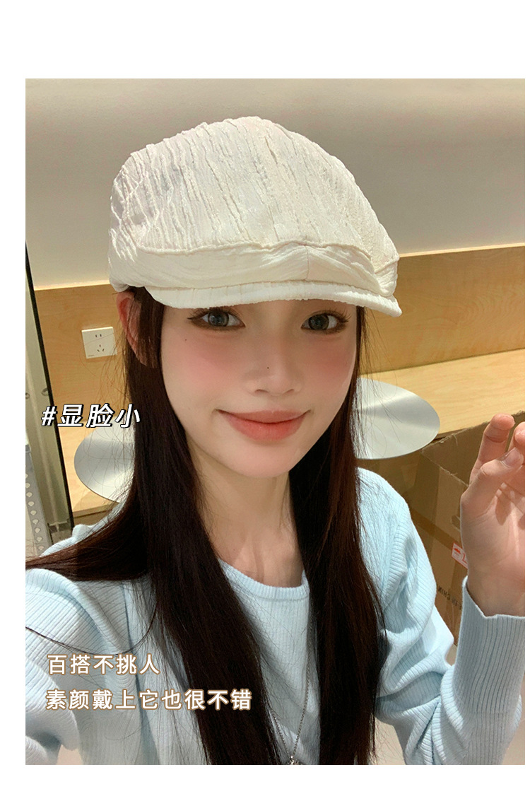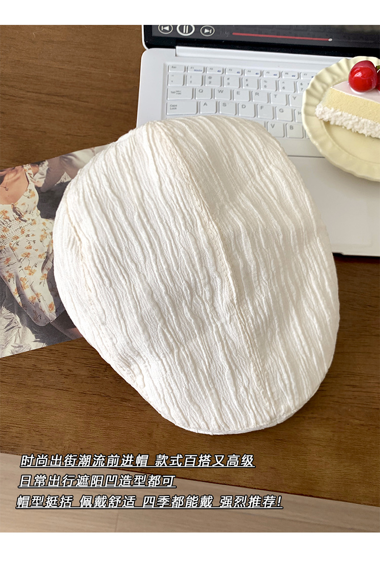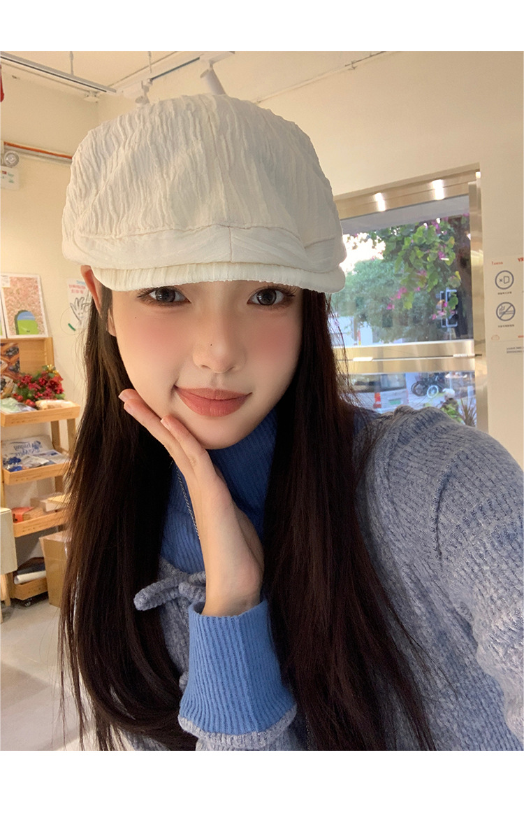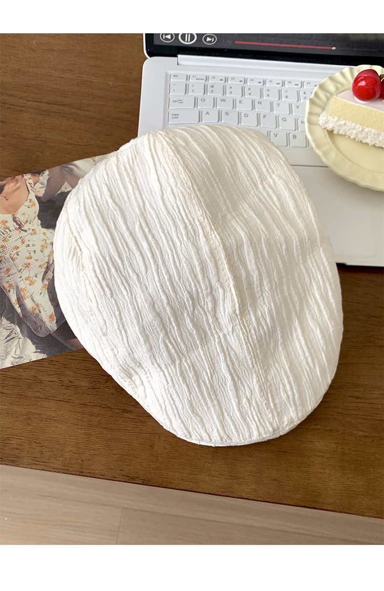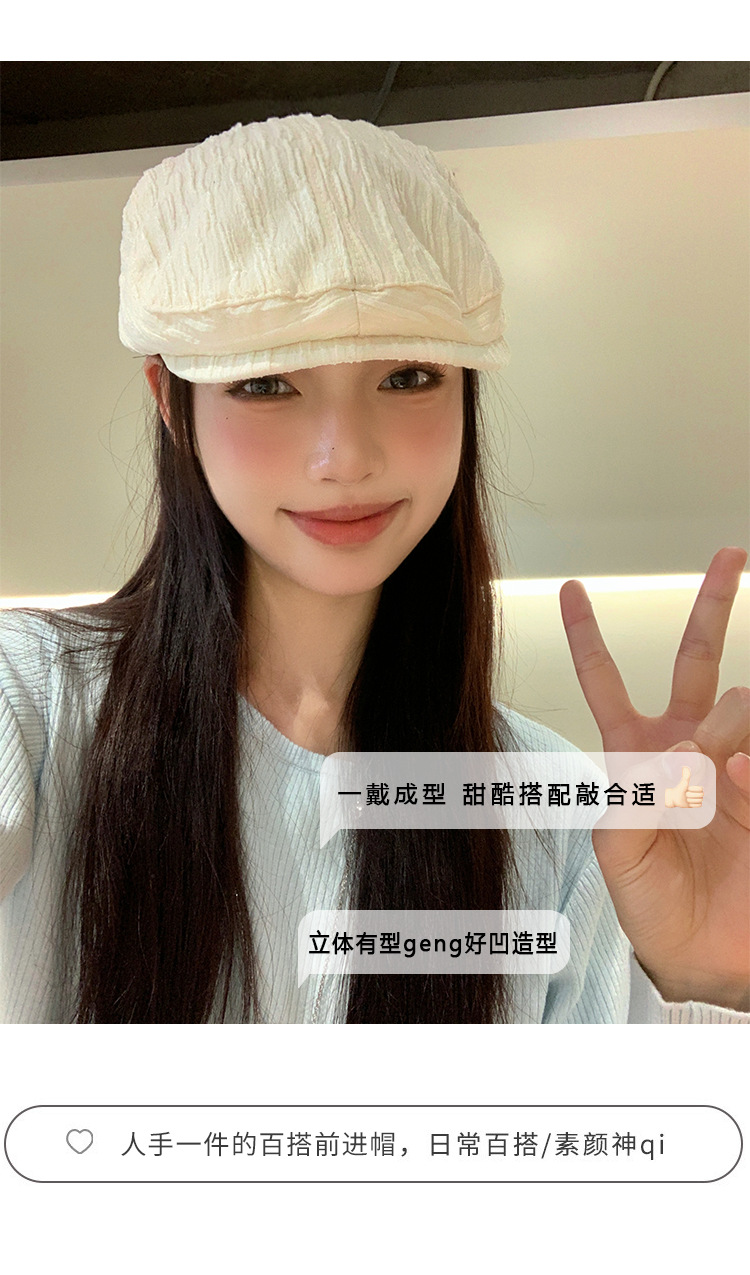 일본식 레트로 화이트 Pleated Forward Hat 여성의 봄과 여름 새로운 작은 베레 올 매치 신문 보이 모자스토어 가기