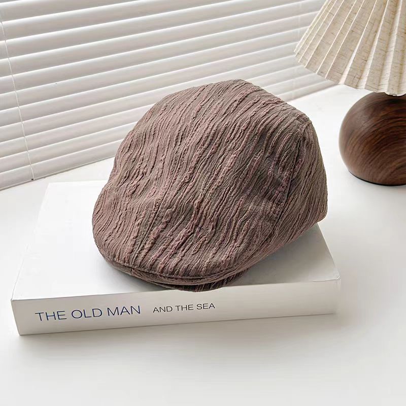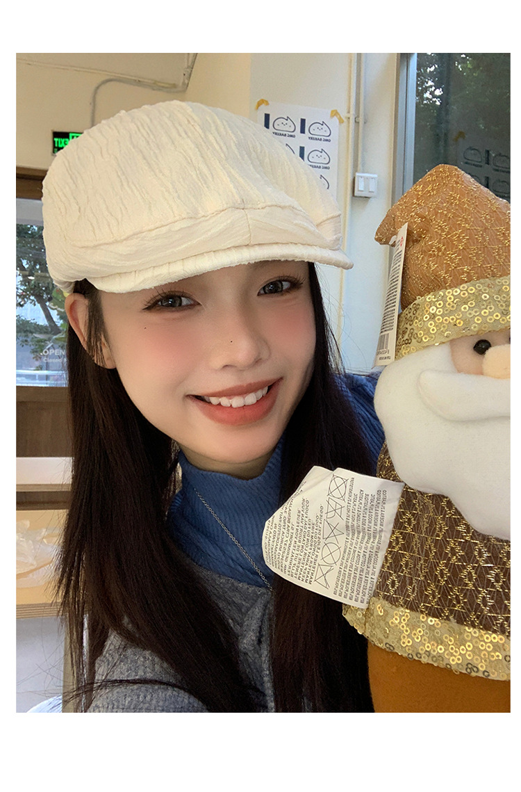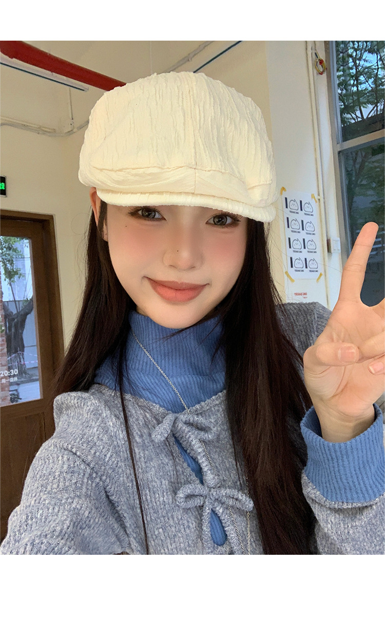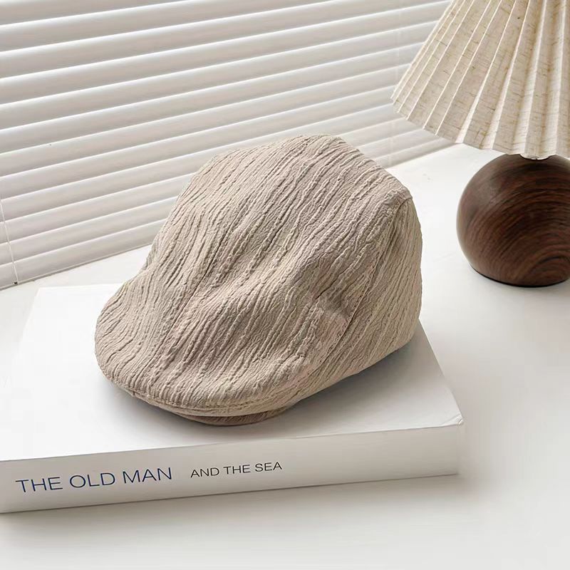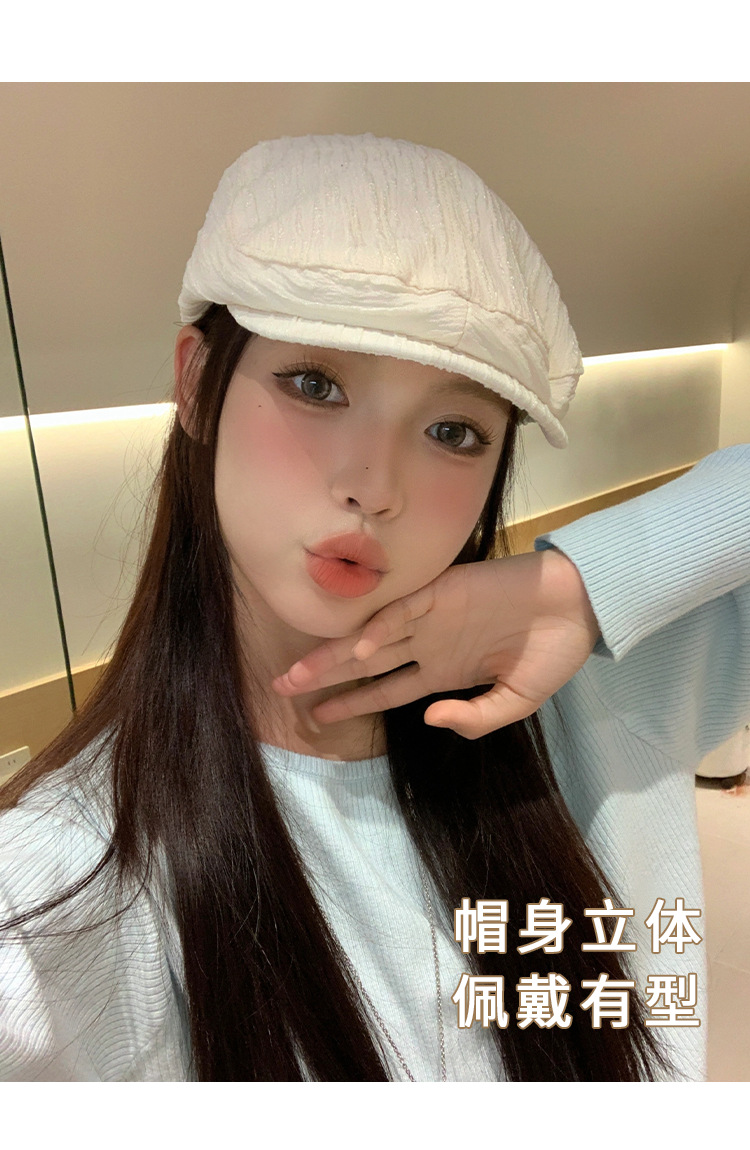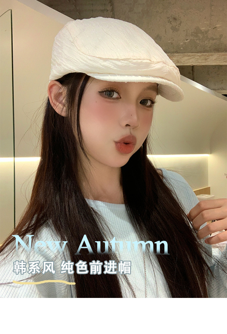 일본식 레트로 화이트 Pleated Forward Hat 여성의 봄과 여름 새로운 작은 베레 올 매치 신문 보이 모자스토어 가기