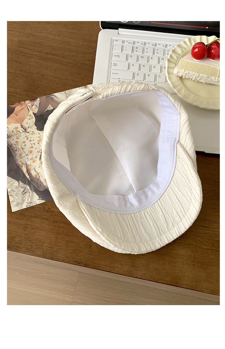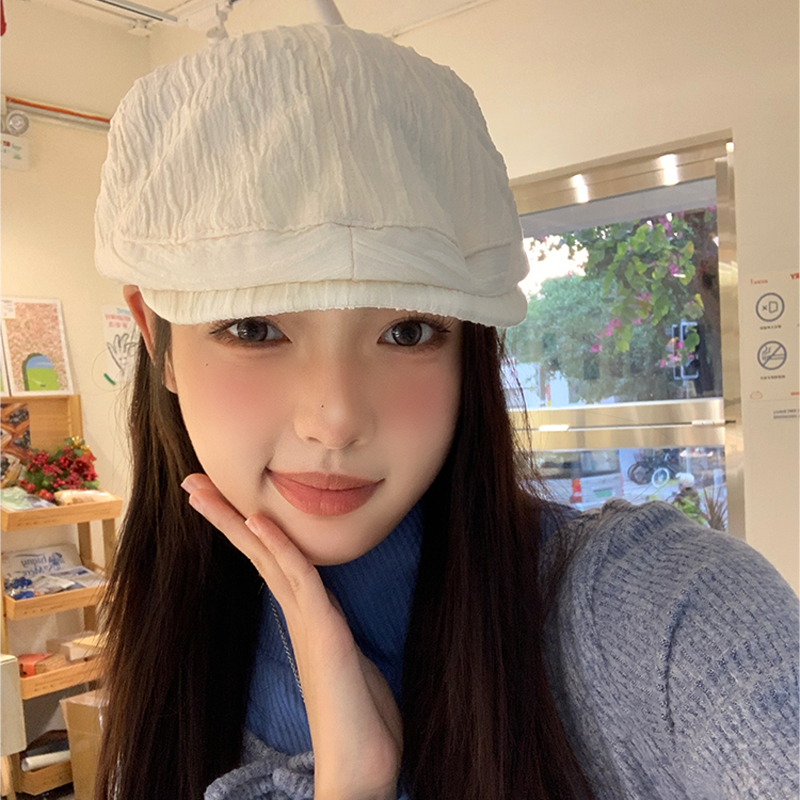 일본식 레트로 화이트 Pleated Forward Hat 여성의 봄과 여름 새로운 작은 베레 올 매치 신문 보이 모자