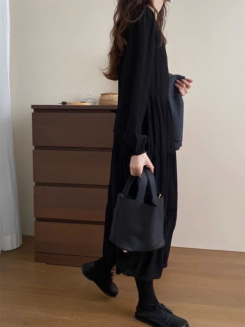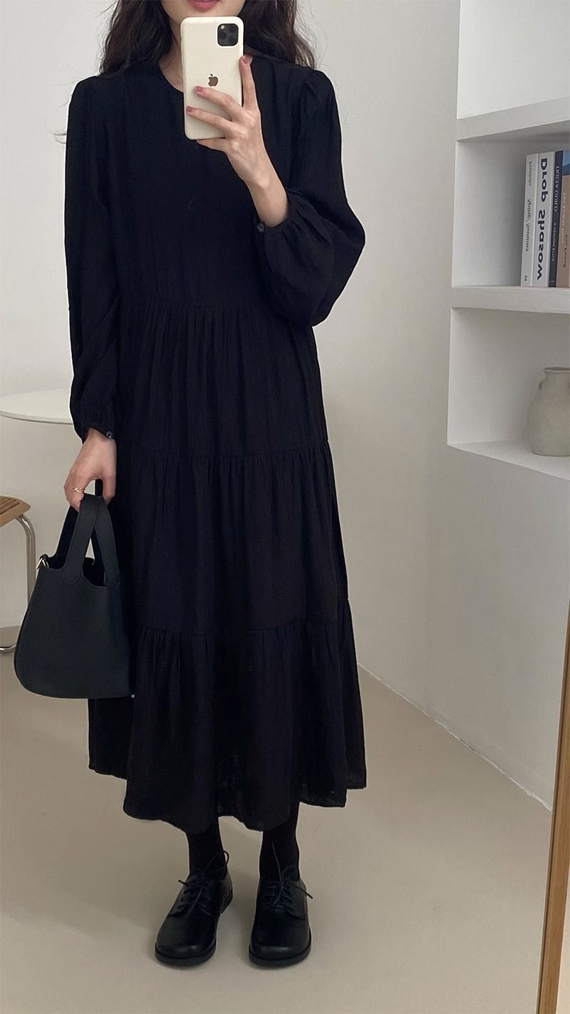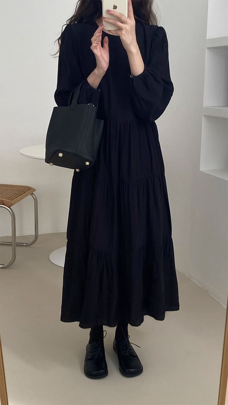 약간 뚱뚱한 mm 이른 가을 긴 소매 A 자형 원피스 여성 플러스 사이즈 300kg 느슨한 슬림 기질 스티칭 무릎 길이 스커트스토어 가기