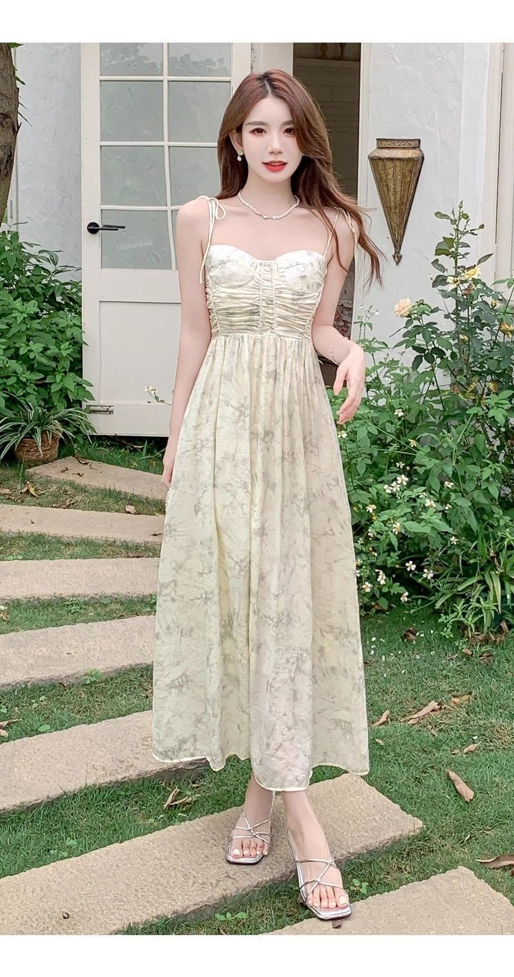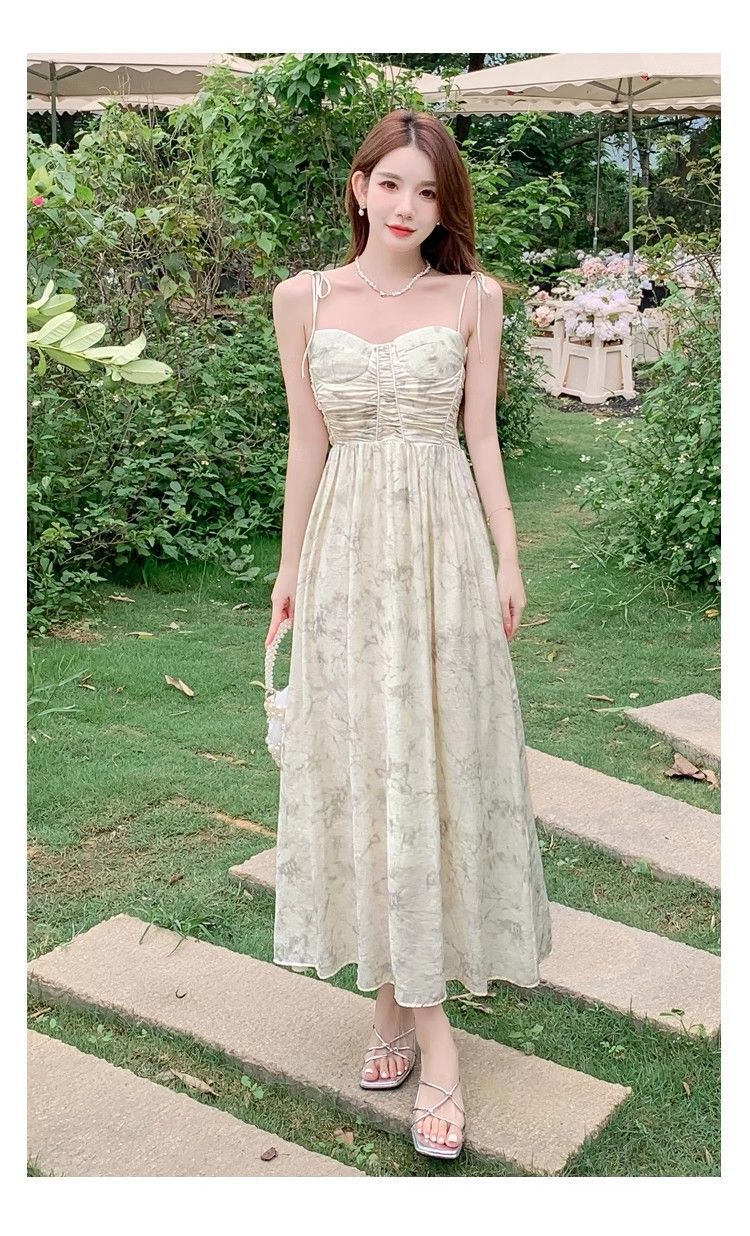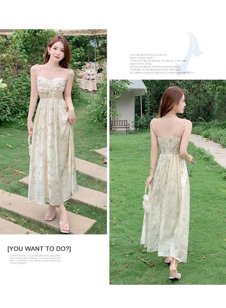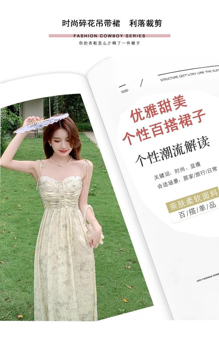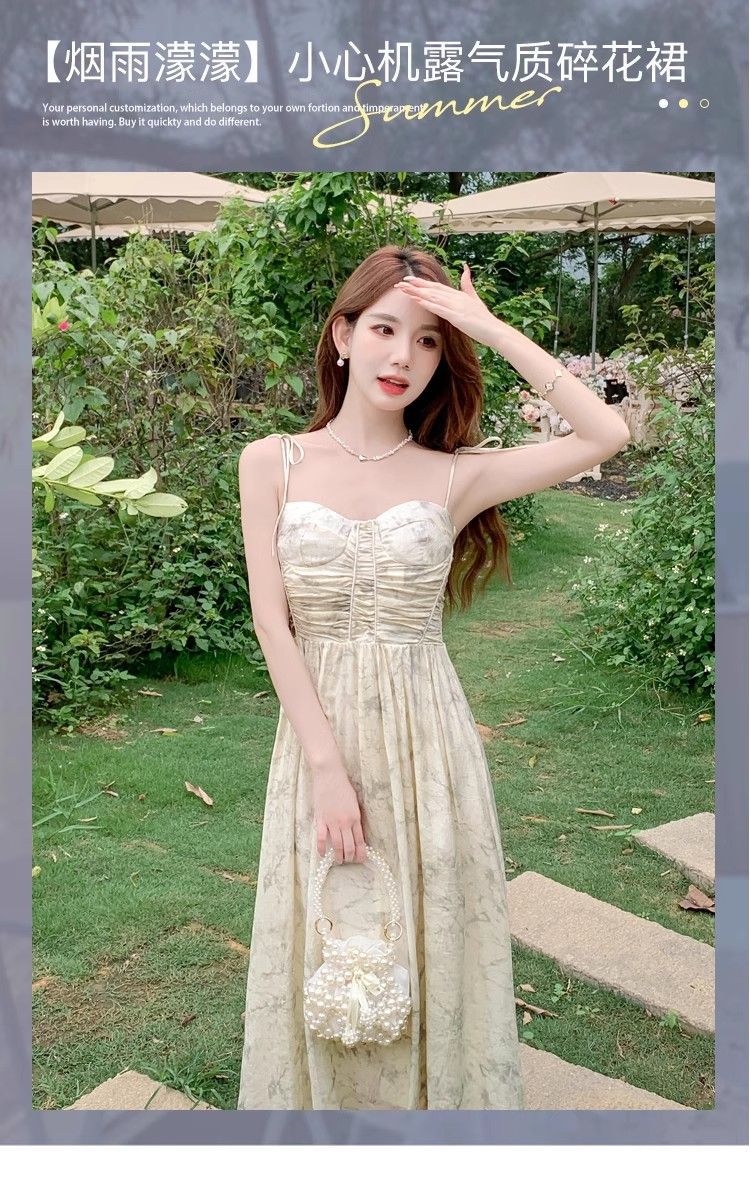 프랑스 스타일 캐리 머신 꽃 스커트 여성 여름 신선한 웨이스트 슬리밍 원피스 부드러운 달콤한 페어리 스커트