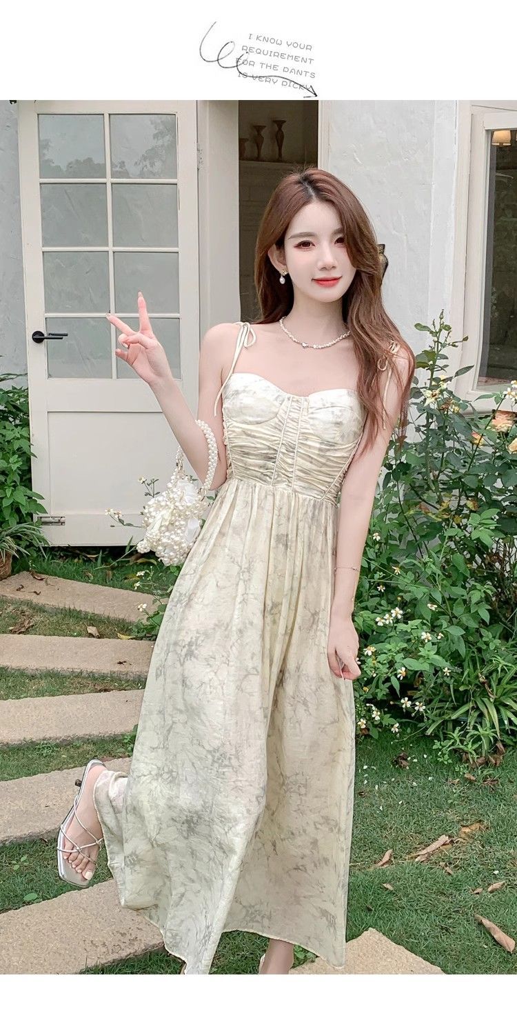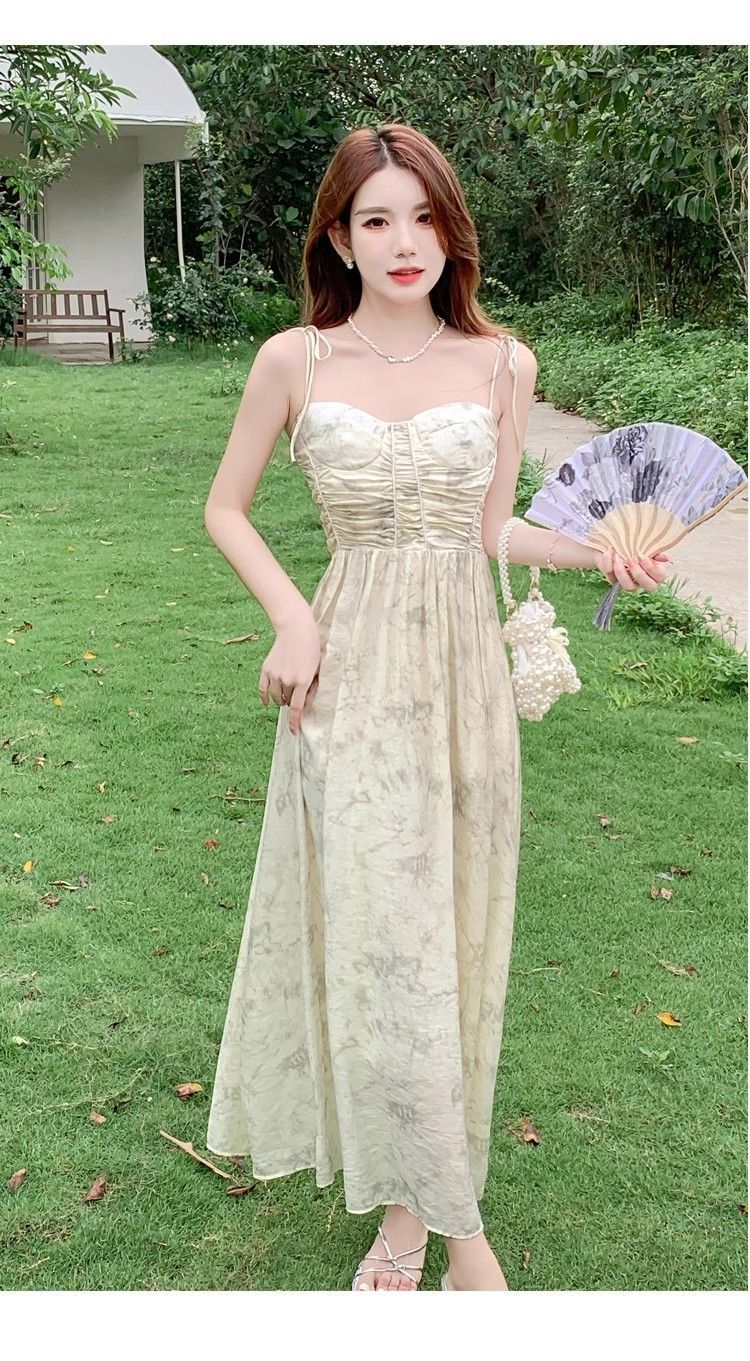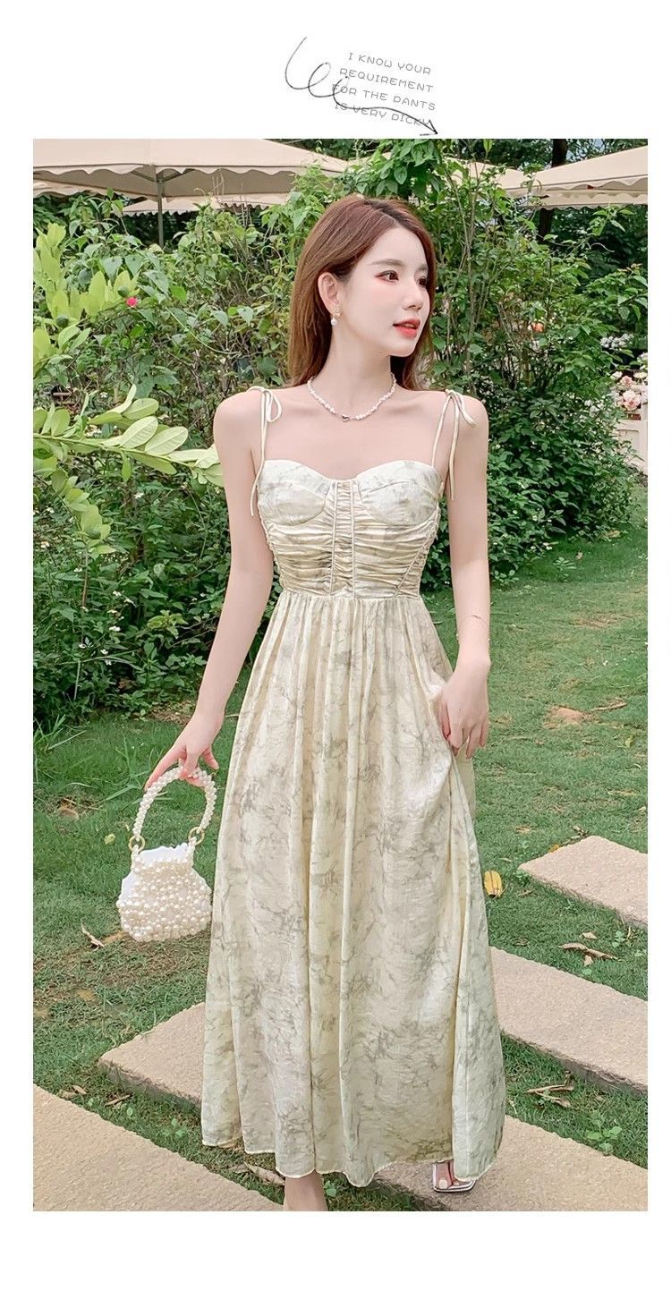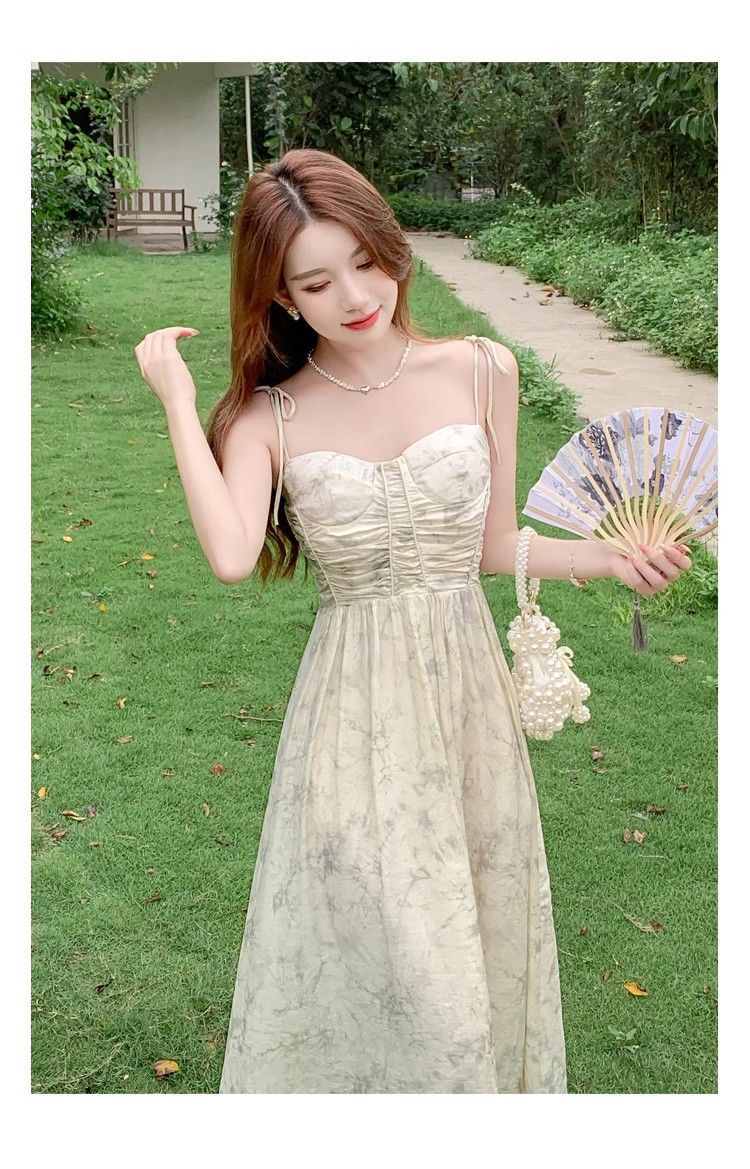 프랑스 스타일 캐리 머신 꽃 스커트 여성 여름 신선한 웨이스트 슬리밍 원피스 부드러운 달콤한 페어리 스커트