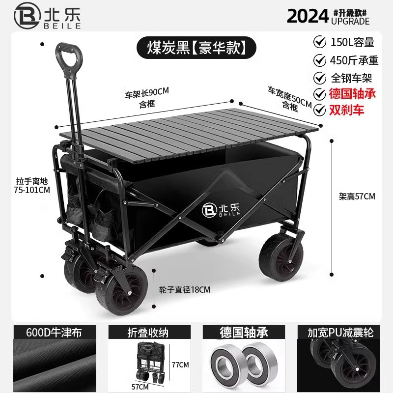 ✅야외 캠핑카 풀 메탈 캠프 트레일러 접이식 스톨 카트 경량 여행 캠핑