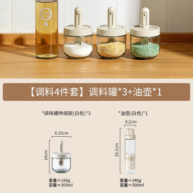 • [조미료 4종 세트] 텔레스코픽 조미료 용기*3+기름 냄비*1