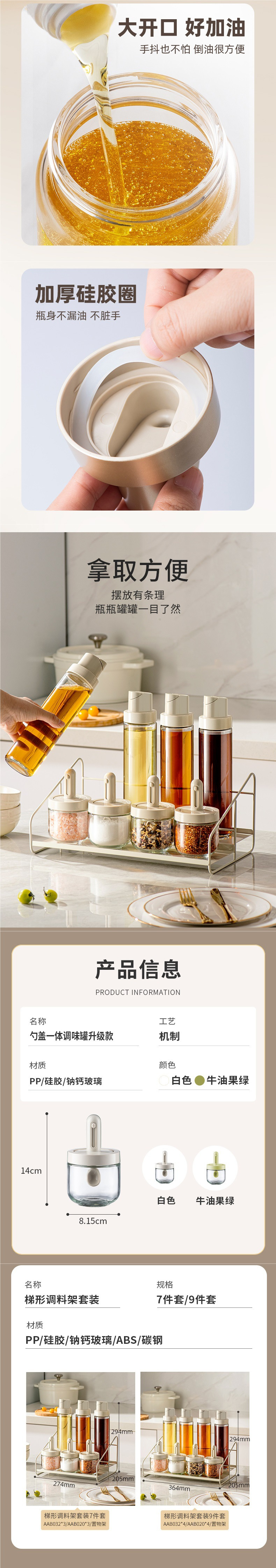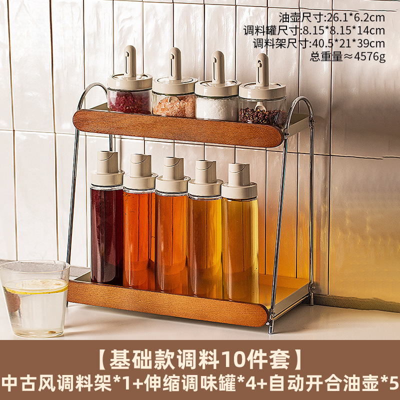 • [기본 조미료 10종 세트] 중세 스타일 양념통*1+접이식 양념통*4+자동 개폐 오일병*5