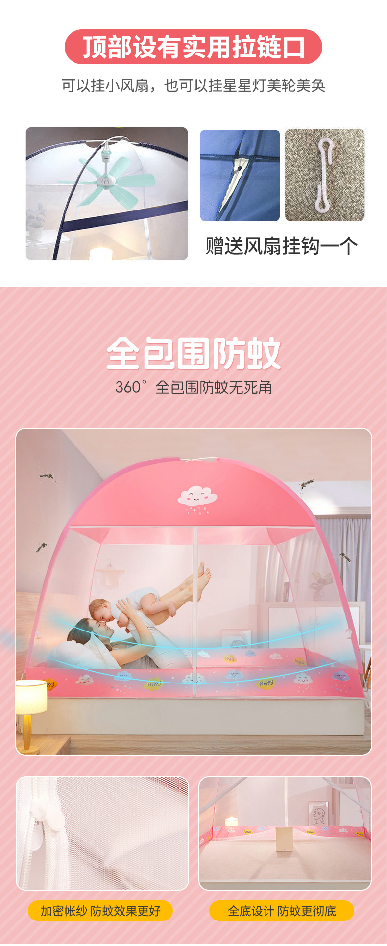 새로운 모기장 설치-브래킷 가정용 침실 1 미터 8 모기장 전체 바닥 낙하 방지 어린이 유르트 모기장