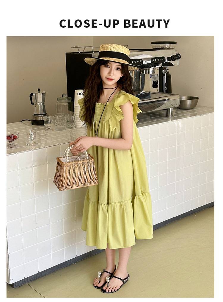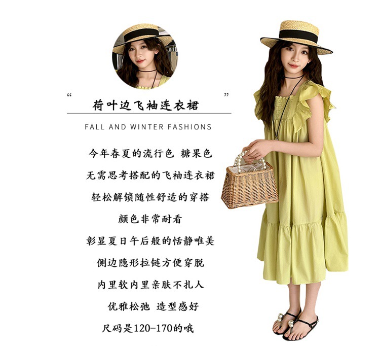 소녀 코튼 스커트 여름 도매 새로운 한국 스타일 작은 플라이 슬리브 공주 스커트 큰 어린이 얇은 원피스 조수