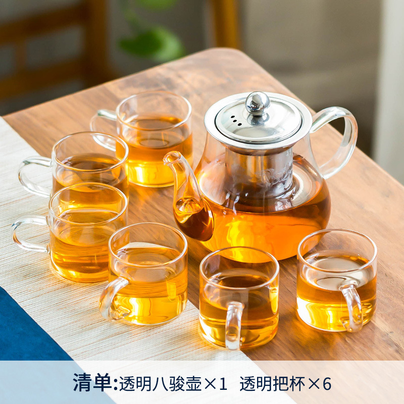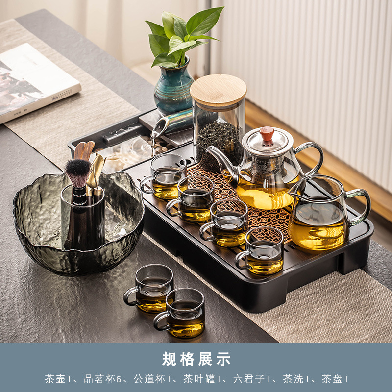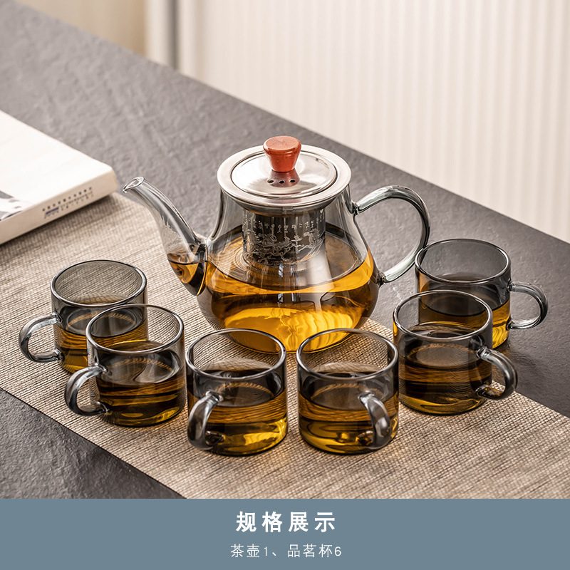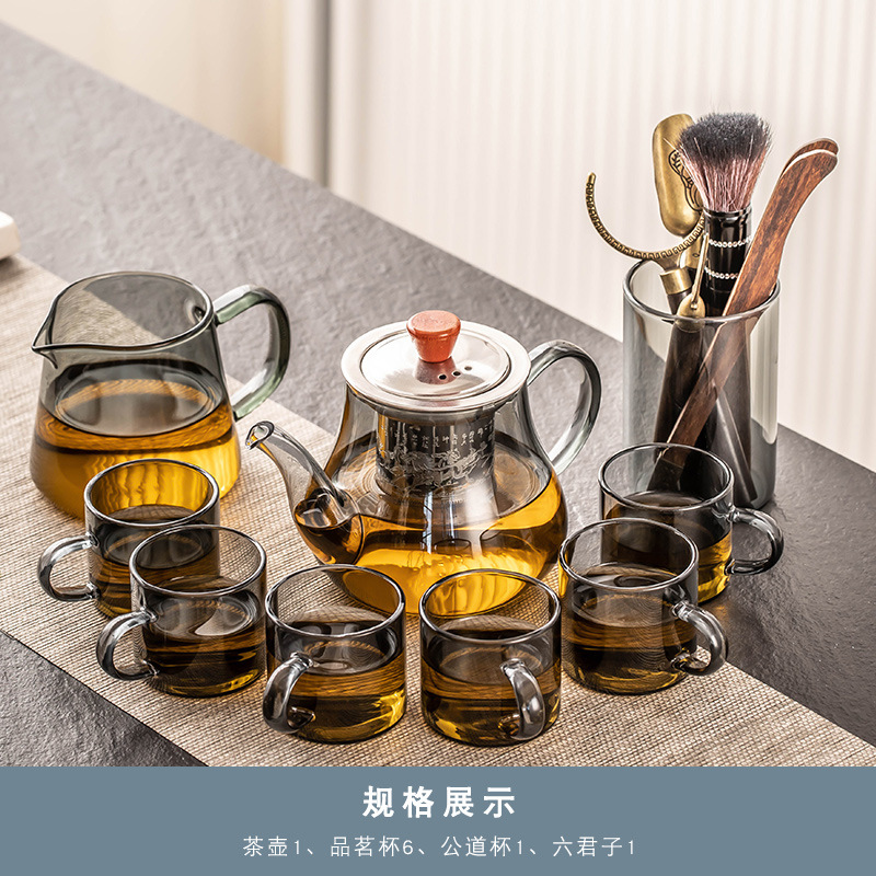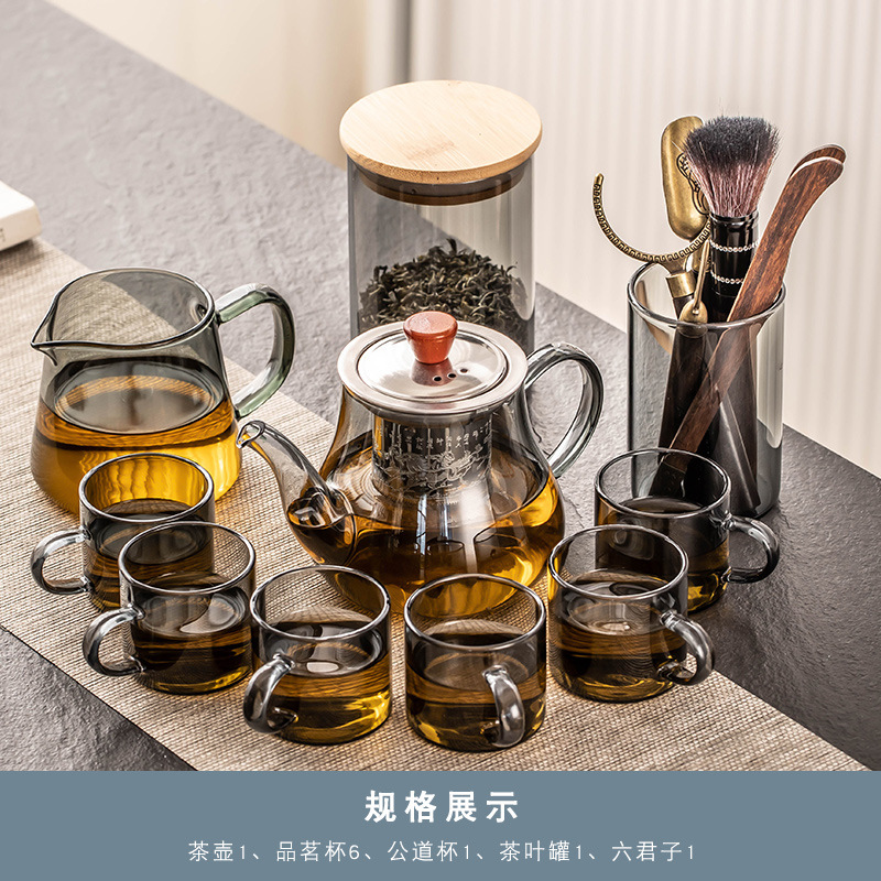 유리 차 세트 세트 2025 새로운 가정용 쿵푸 티 컵 고온 저항하는 주전자 간단한 필터 작은 주전자스토어 가기