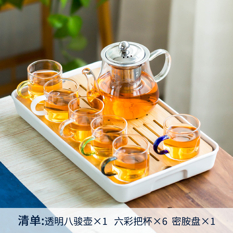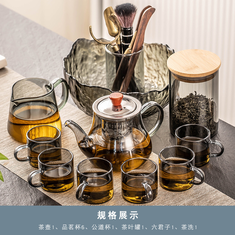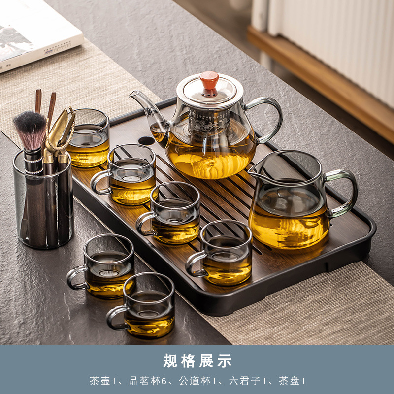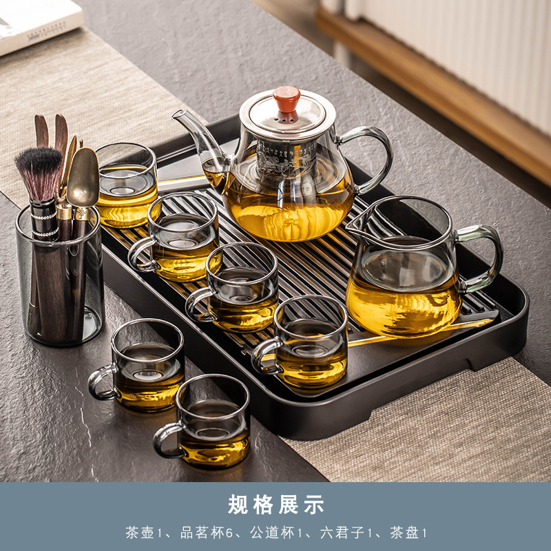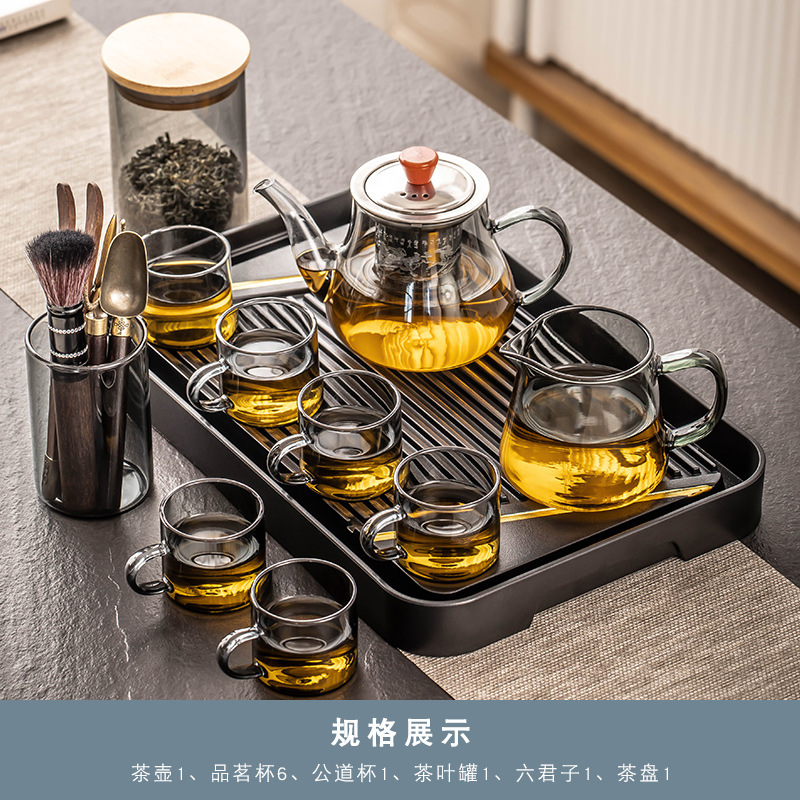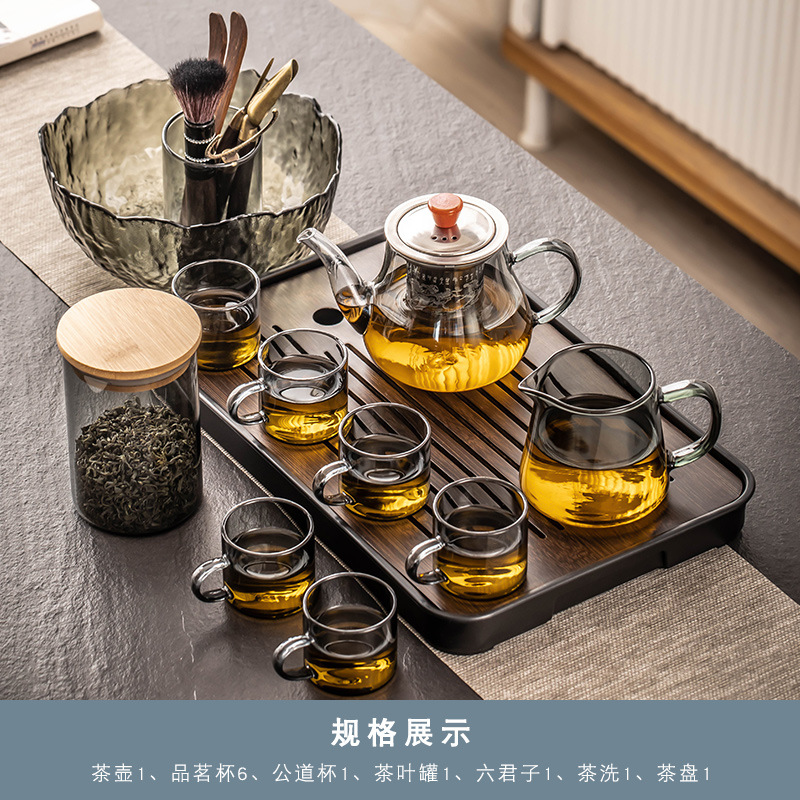 유리 차 세트 세트 2025 새로운 가정용 쿵푸 티 컵 고온 저항하는 주전자 간단한 필터 작은 주전자스토어 가기